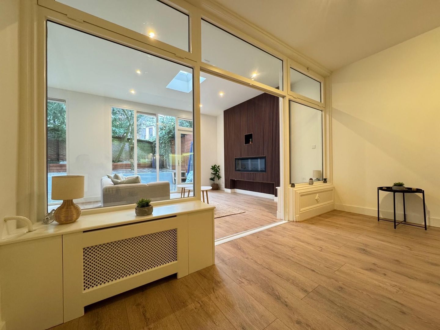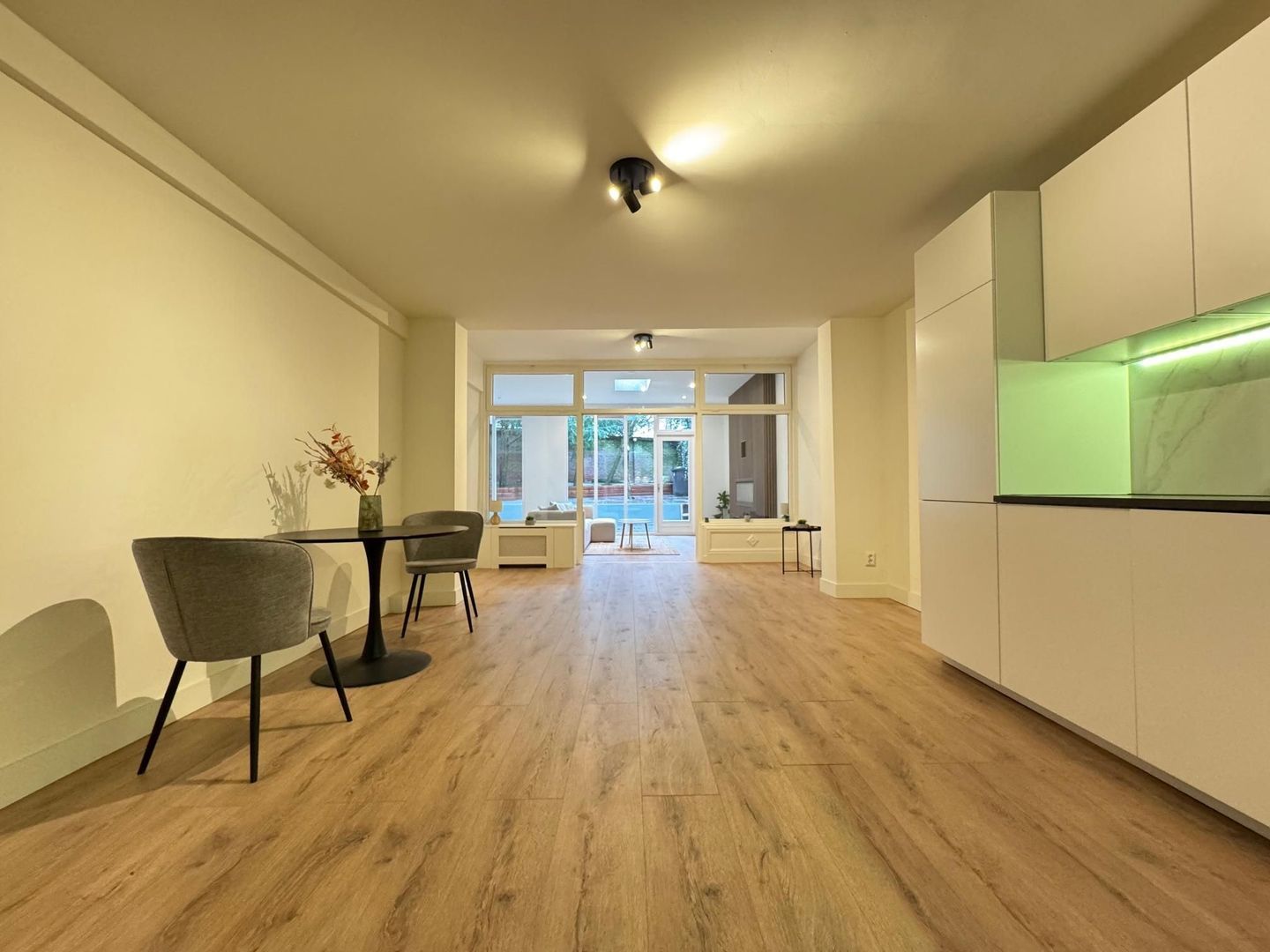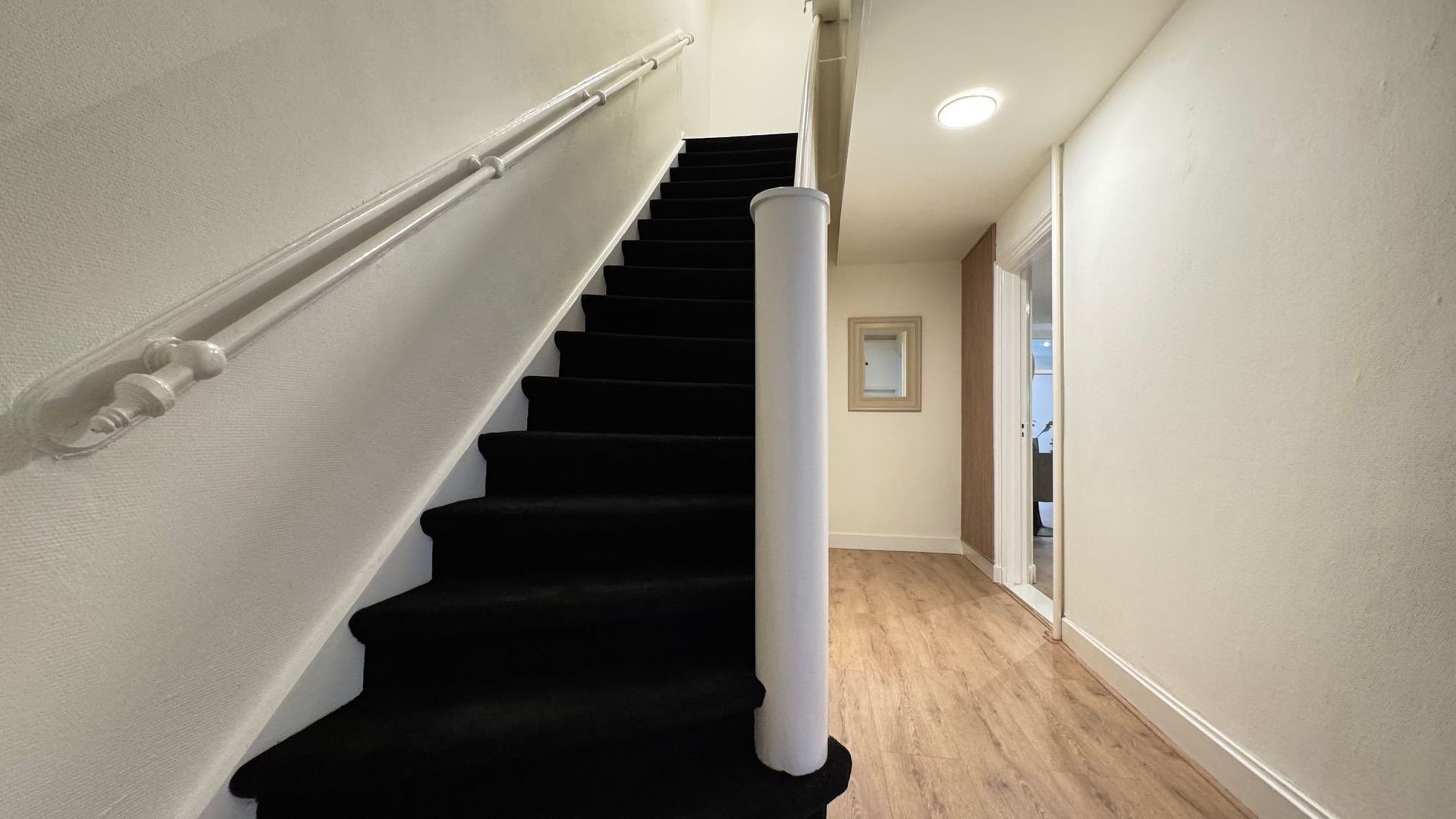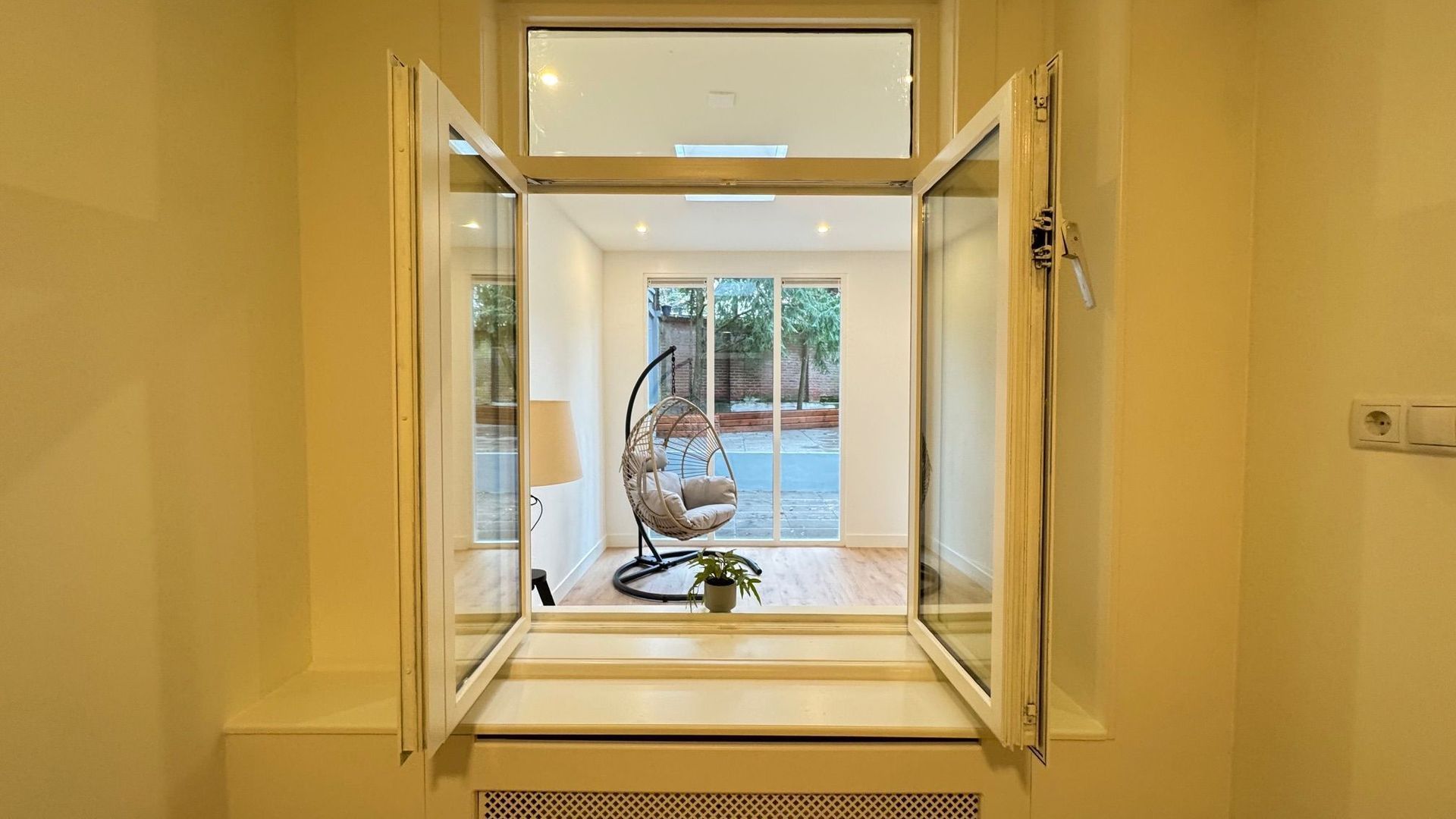 Fraaie centrale entree; via de binnenhal loop je naar het trappenhuis aan de linkerzijde. Hier bevindt zich de toegang naar de souterrainwoning. Entree: Trap naar beneden. gang/hal met garderoberimte en trapkast; zeer royale tuingerichte woonkamer met open keuken met ingebouwde oven, inductie kookplaat, afzuigkap, onderbouw koelkast en vaatwasser; via woonkamer toegang tot serre met grote raampartijen en cinewall; eveneens via de woonkamer toegang tot de achterslaapkamer, de zij(slaap)kamer. Deze zijkamer heeft daglicht vanuit de fraaie en lichte serre; Via de hal toegang tot de grote hoofdslaapkamer aan de voorzijde; eveneens via de hal de toegang tot de badkamer met inloopdouche, wastafelmeubel en toilet. Aan de serre grenst de beschutte achtertuin die op het westen is georiënteerd en met veel groen.