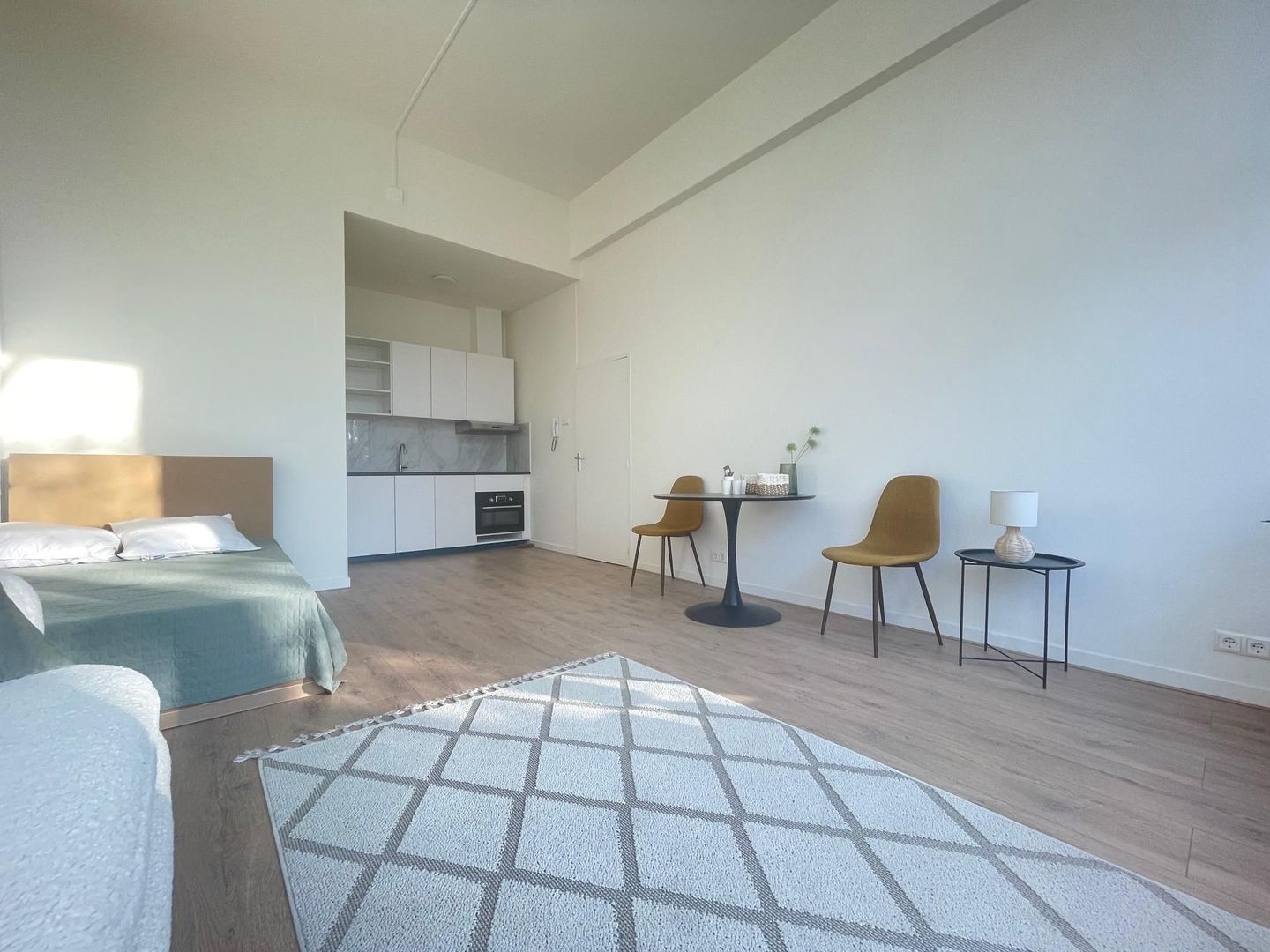 Fraaie centrale entree; via de binnenhal en gang naar het appartement welke aan de achterzijde van het complex is gesitueerd. Entree; woonkamer met open keuken met inbouw oven, inductie kookplaat, recirculatie afzuigkap, vaatwasser en onderbouw koelkast; in de woonkamer kan eventueel tegen meerprijs een luchtige afgescheiden slaapruimte gecreëerd worden; moderne badkamer met douche, toilet, wastafelmeubel en opstelplaats Boiler. Geen privé buitenruimte maar genoeg gezellige buitenruimten in de buurt.
