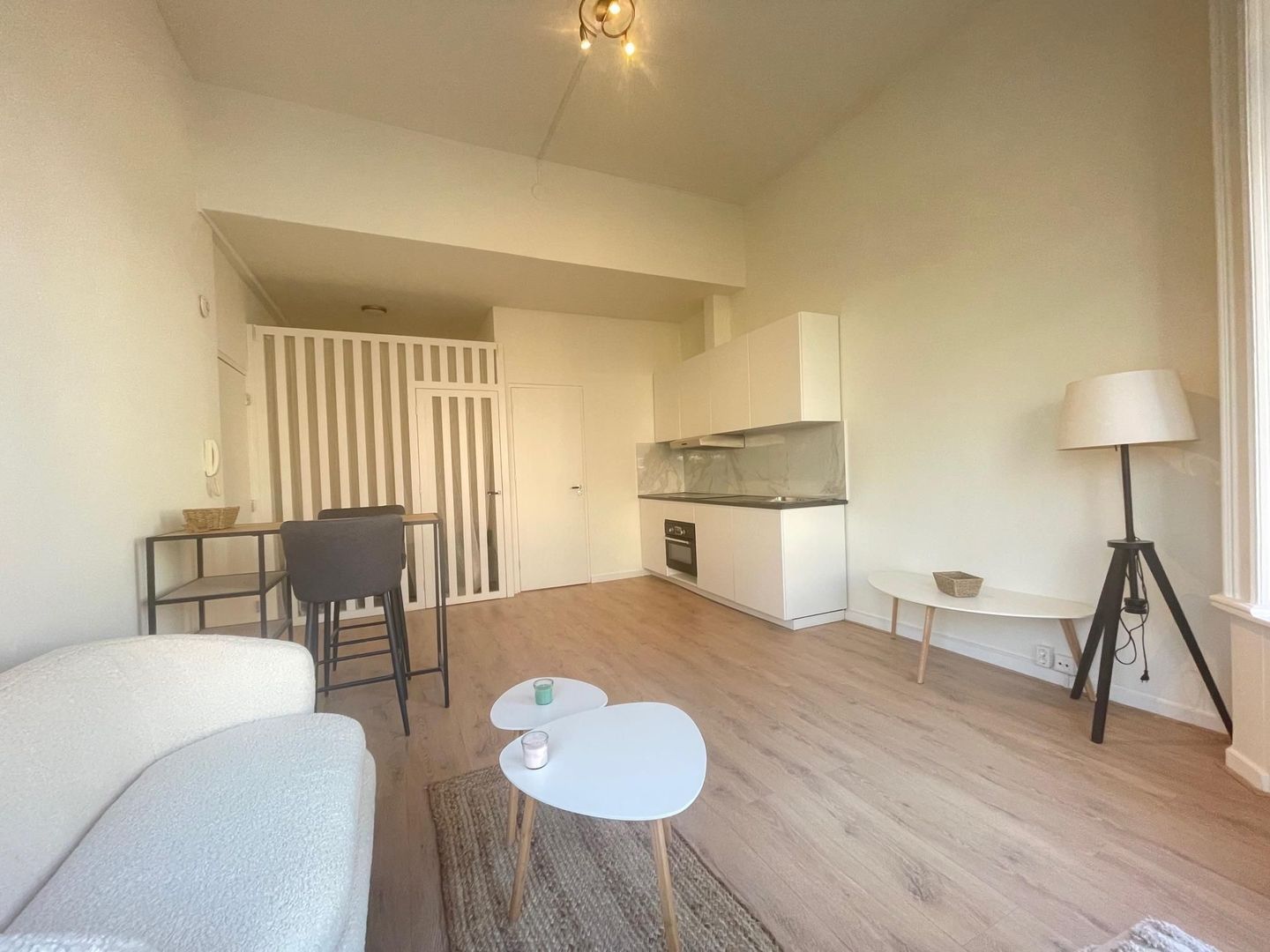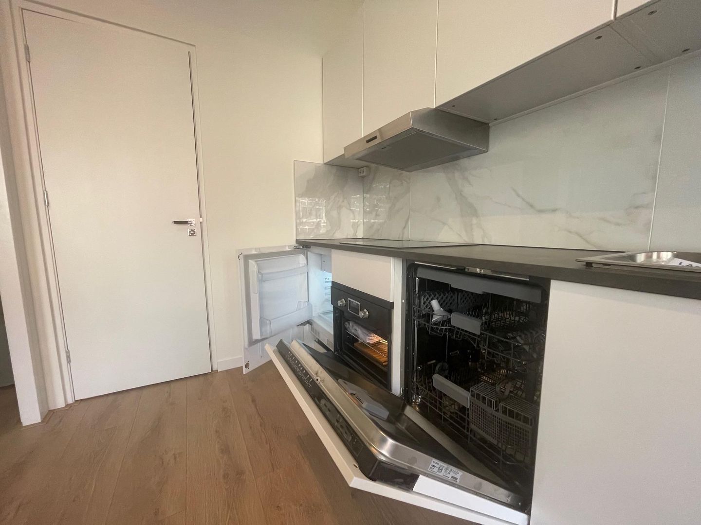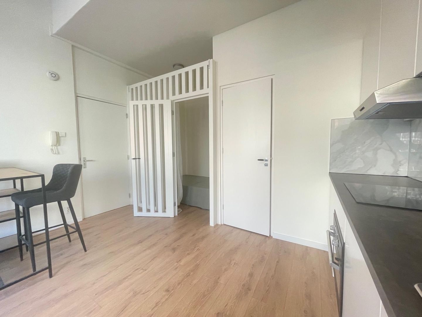 Fraaie centrale entree; via de binnenhal entree tot de studio; woonkamer met fraai erkerkozijn aan de voorzijde en met open keuken met inbouw oven, inductie kookplaat, recirculatie afzuigkap, vaatwasser en koelkast; via woonkamer toegang tot de inpandige slaapruimte, afgescheiden van het woongedeelte door een luchtig open houten frame met deur; moderne badkamer met douche, toilet, wastafelmeubel en opstelplaats Boiler. Geen privé buitenruimte maar genoeg gezellige buitenruimten in de buurt. Het complex heeft een centrale wasruimte maar het is ook mogelijk om de vaatwasser te vervangen door een wasmachine.