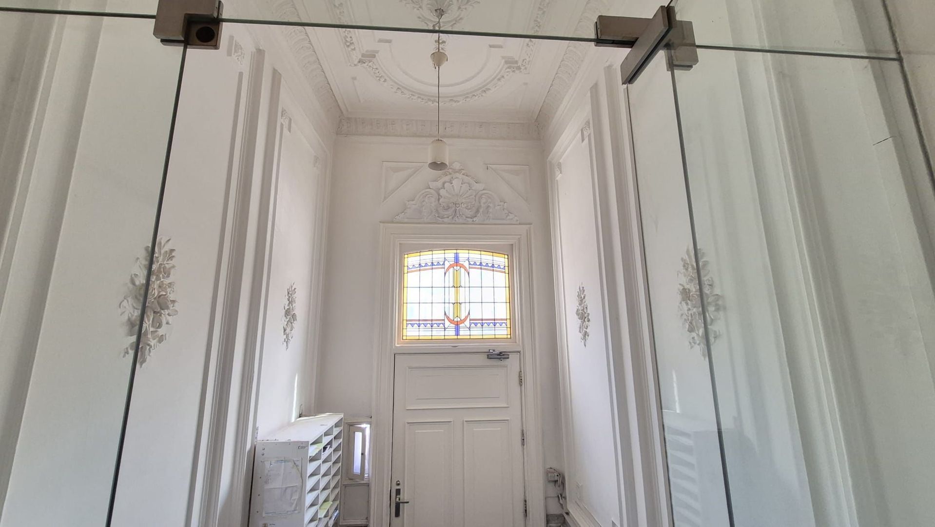 Fraaie centrale entree; via de binnenhal entree toegang tot trapopgang naar woonverdieping; appartement aan de voorzijde van het complex.
