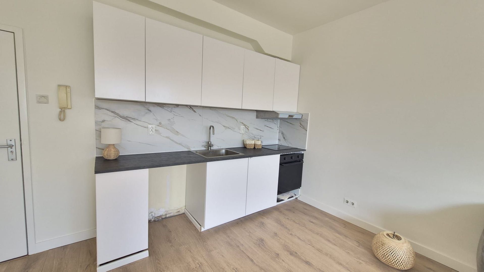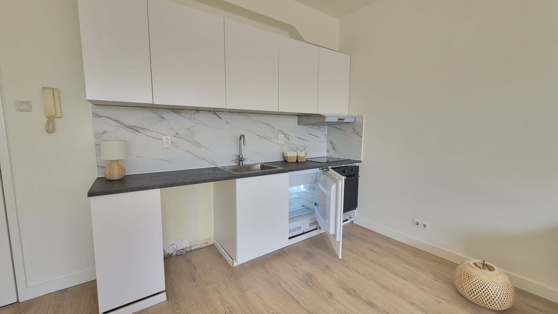Entree woning; woonkamer met erkerkozijn aan de voorzijde en met open keuken met inbouw oven, inductie kookplaat en koelkast; via woonkamer toegang tot de slaapruimte; via de woonkamer en via de slaapkamer is de moderne badkamer toegankelijk met douche, toilet, wastafelmeubel.