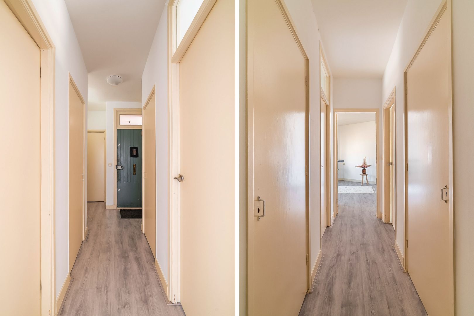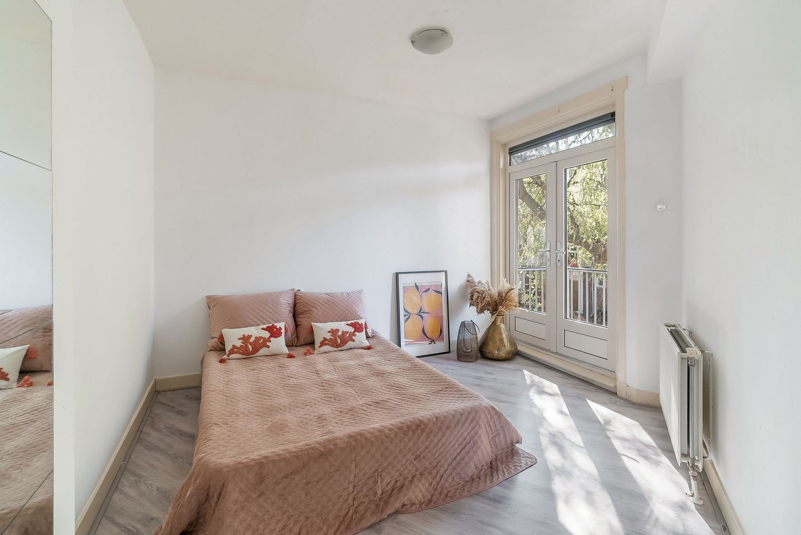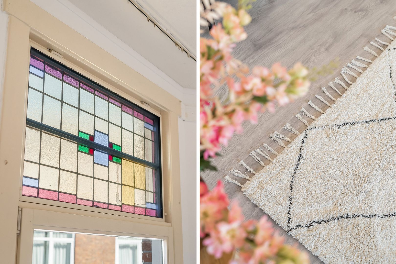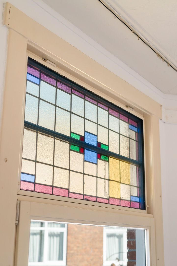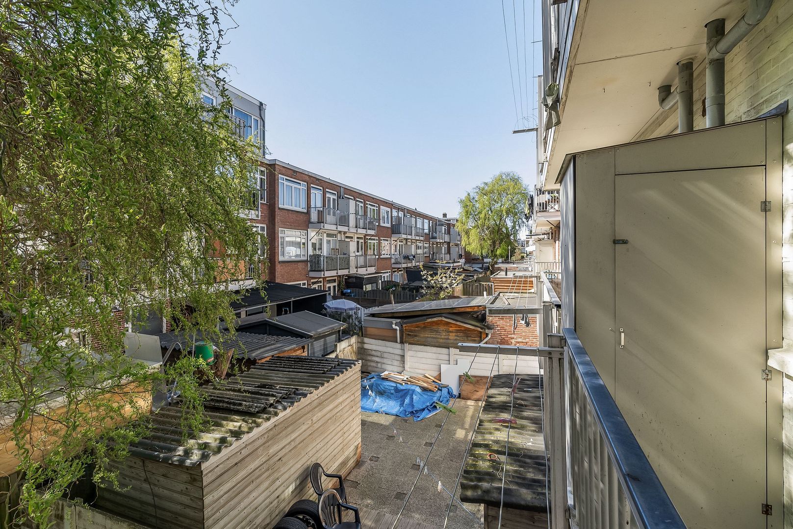 Woningentree op de 1e etage via open portiek; gang met meterkast, bergkast en kast met de cv-opstelling; ruime met sfeervol glas in lood en een moderne open keuken in hoekopstelling voorzien van een gaskookplaat, afzuigkap, oven en vaatwasser; 1e slaapkamer aan de achterzijde met openslaande deuren naar het balkon; 2e slaapkamer aan de achterzijde met openslaande deuren naar het balkon; ruime badkamer met douche, wastafel en de wasmachine aansluiting; separaat toilet met fonteintje;