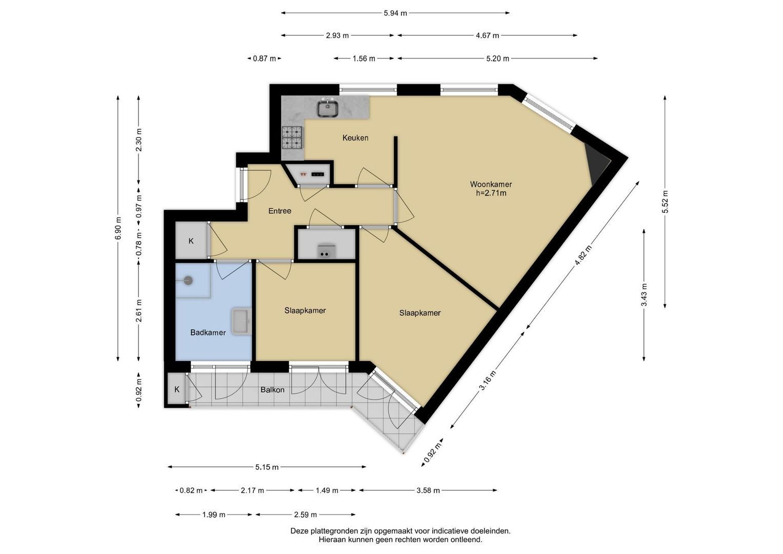 Deze informatie is door ons met de nodige zorgvuldigheid samengesteld. Onzerzijds wordt echter geen enkele aansprakelijkheid aanvaard voor enige onvolledigheid, onjuistheid of anderszins, dan wel de gevolgen daarvan. Alle opgegeven maten en oppervlakten zijn indicatief.