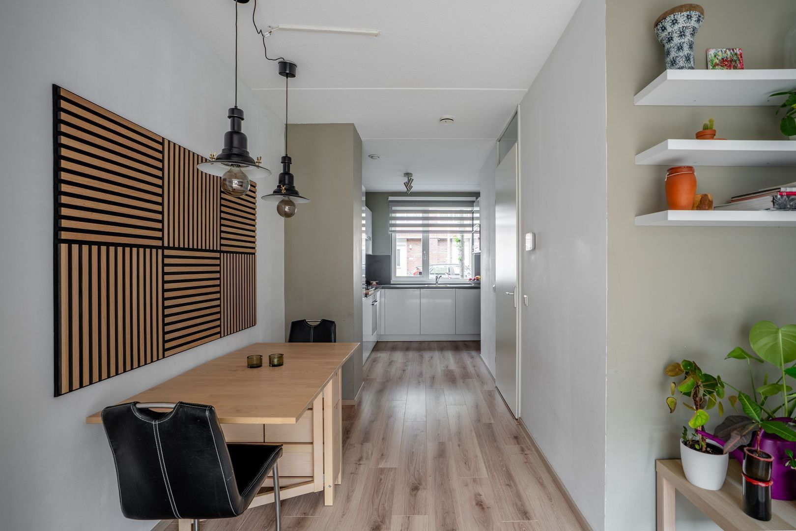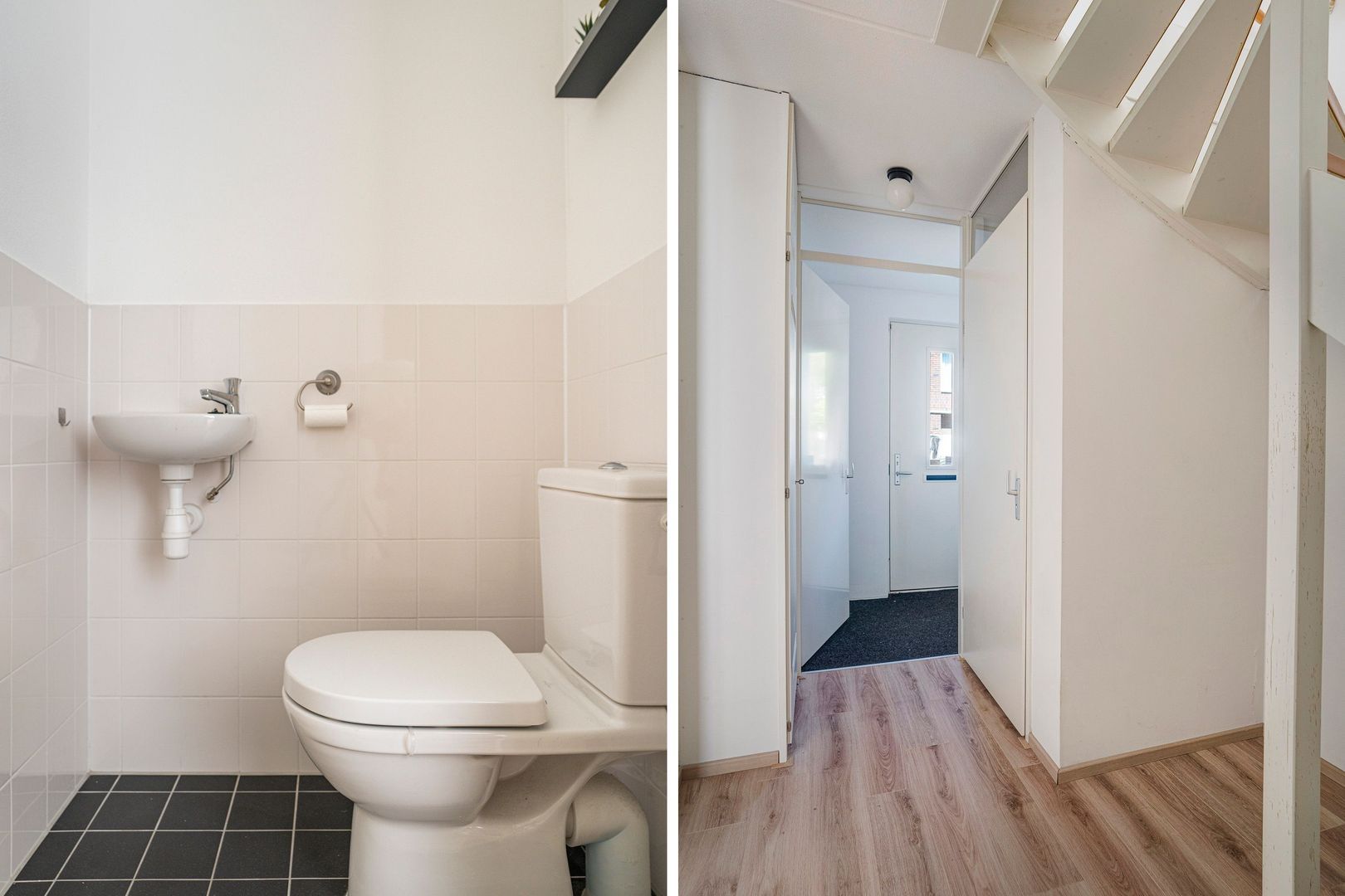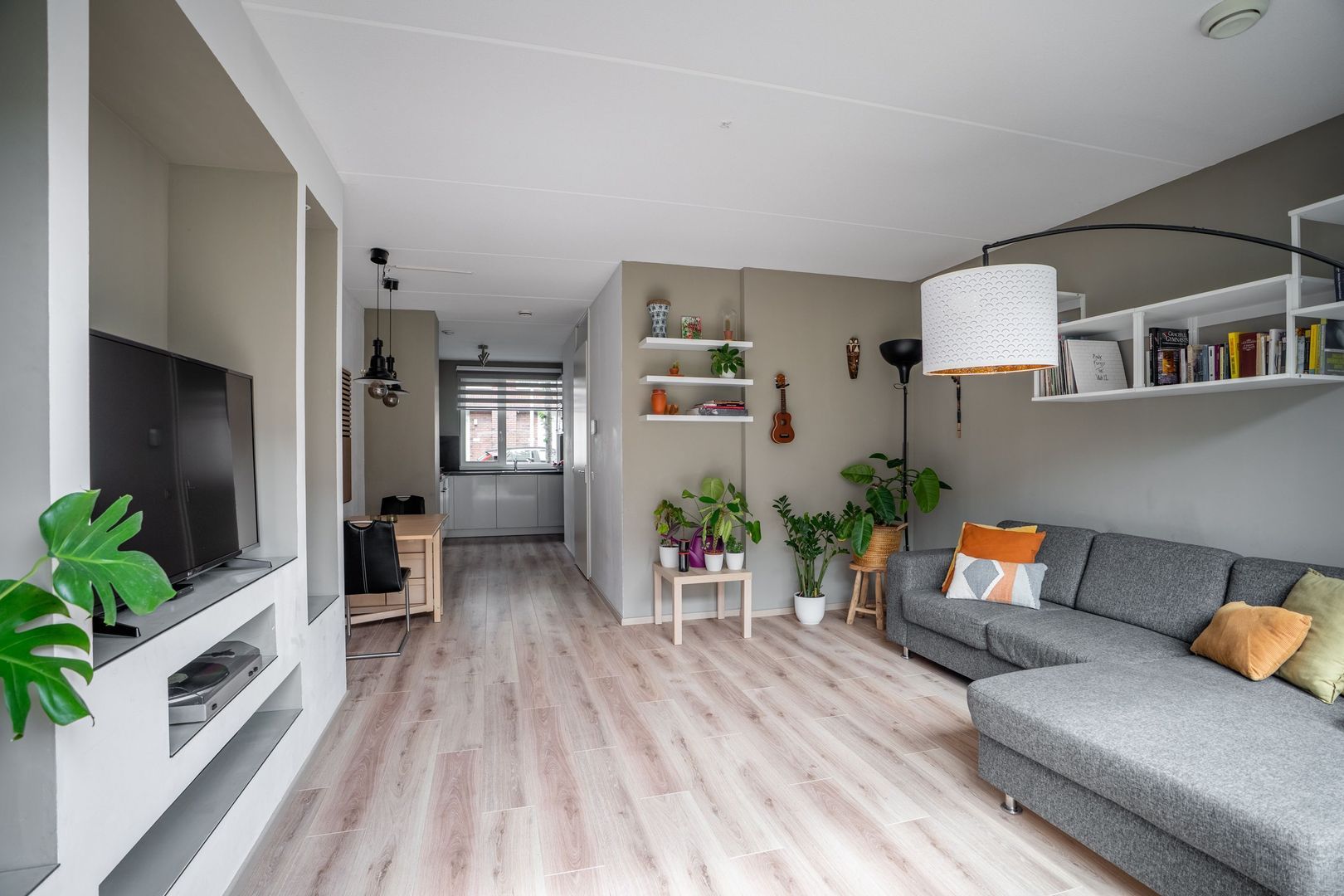 Woningentree; tochtportaal; hal met meterkast; keurig toilet met fonteintje; royale woonkamer met toegang tot de achtertuin; moderne open keuken in L-opstelling voorzien van een gaskookplaat, afzuigkap, vaatwasser, oven, magnetronen koelkast;