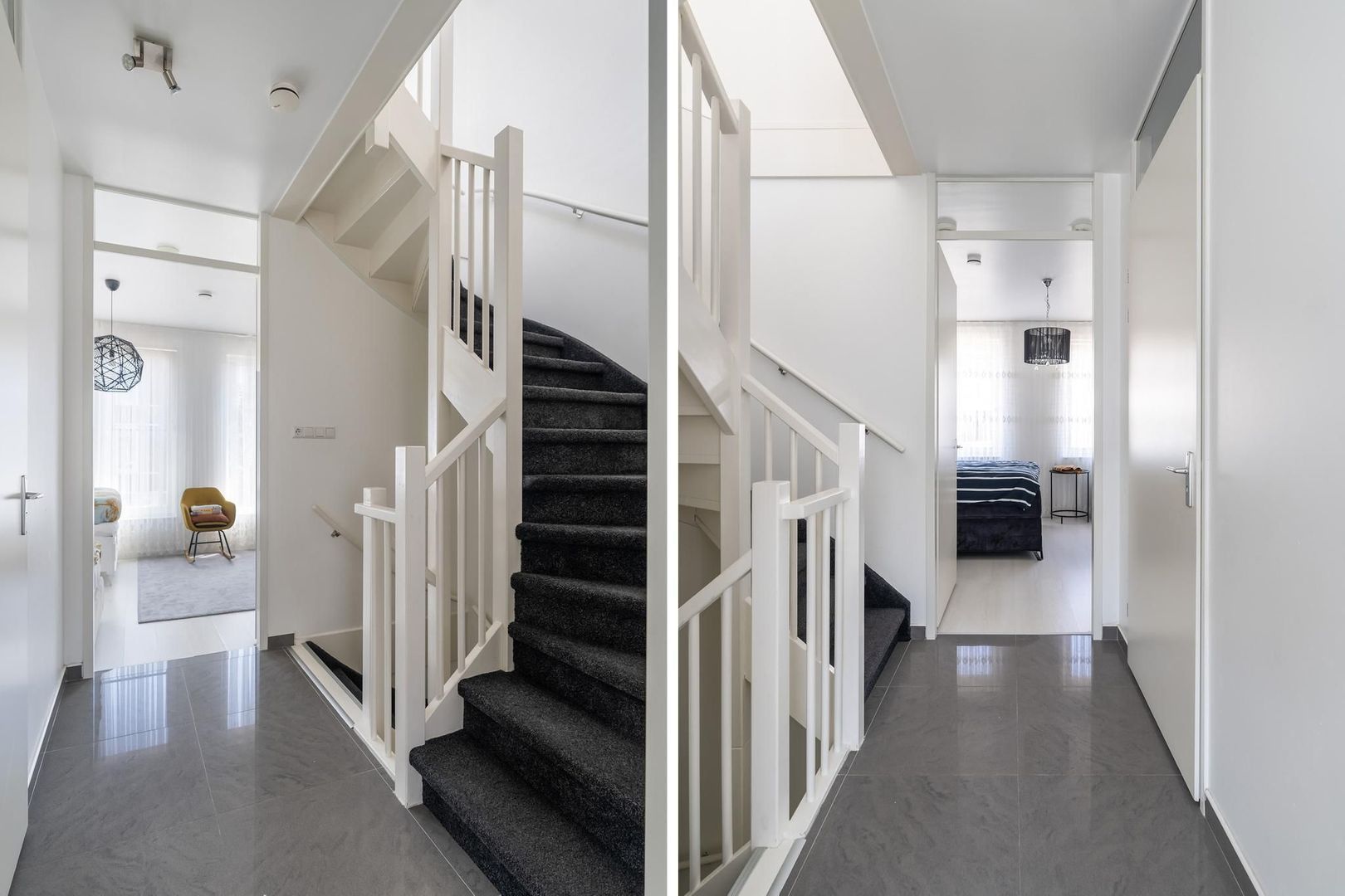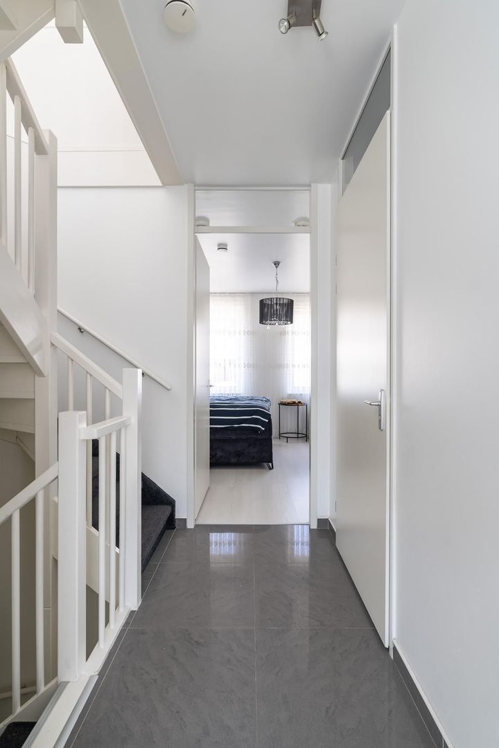 Eerste etage: overloop; royale 1e slaapkamer aan de voorzijde; royale 2e slaapkamer aan de achterzijde; Luxe moderne betegelde badkamer met inloopdouche, wastafelmeubel en 2e toilet;