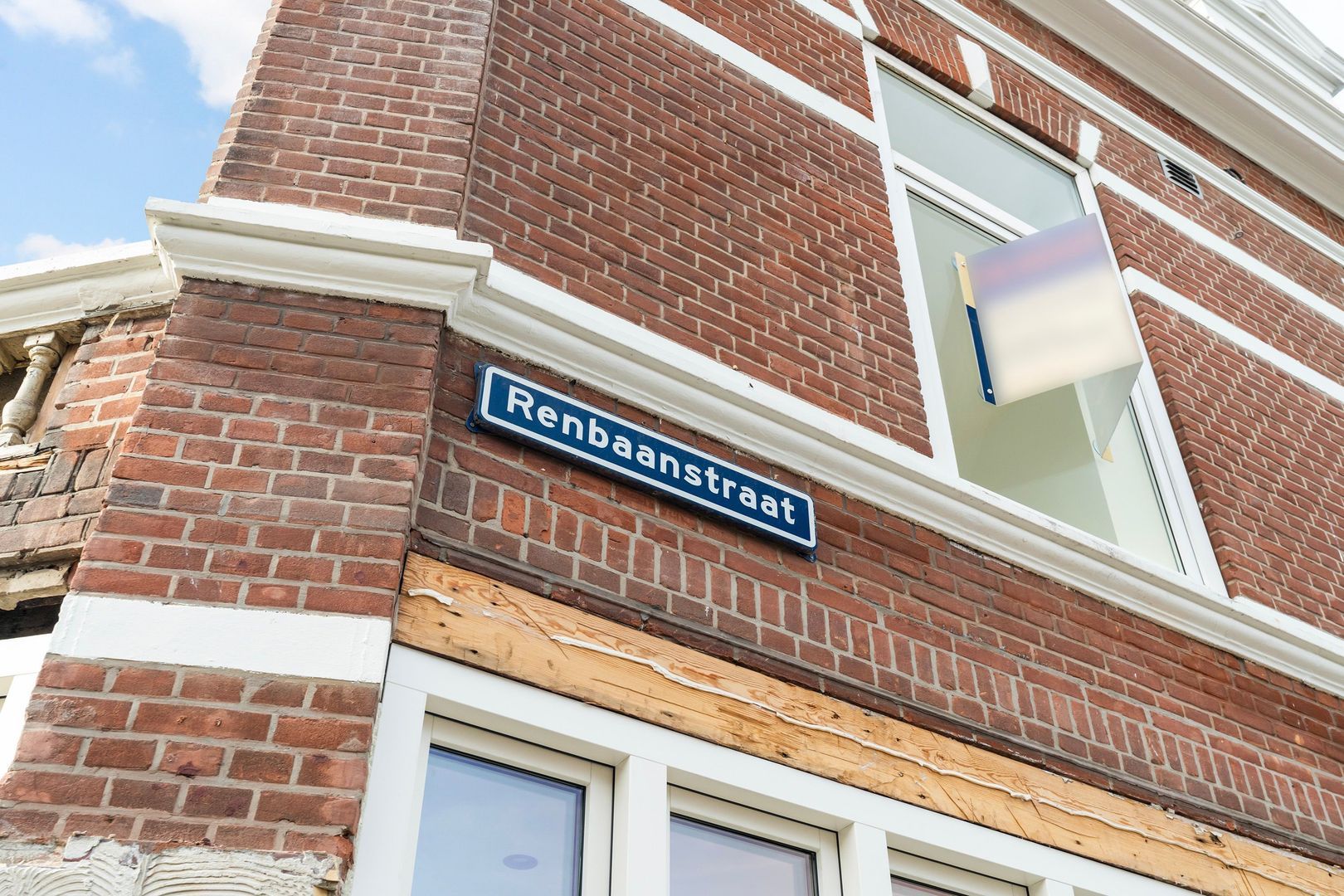 1e verdieping: overloop met toilet; royale woonkamer over de breedte met veel lichtinval en uitzicht door de brede Renbaanstraat. Vanuit de woonkamer toegang tot een slaapkamer. Aan de achterzijde een ruime keuken met deur naar het royale achterbalkon/terras.