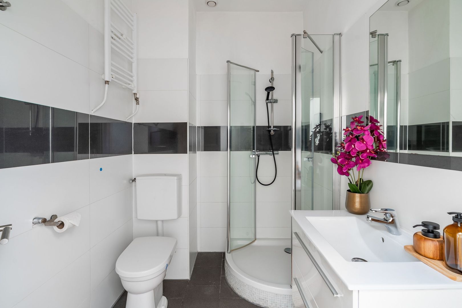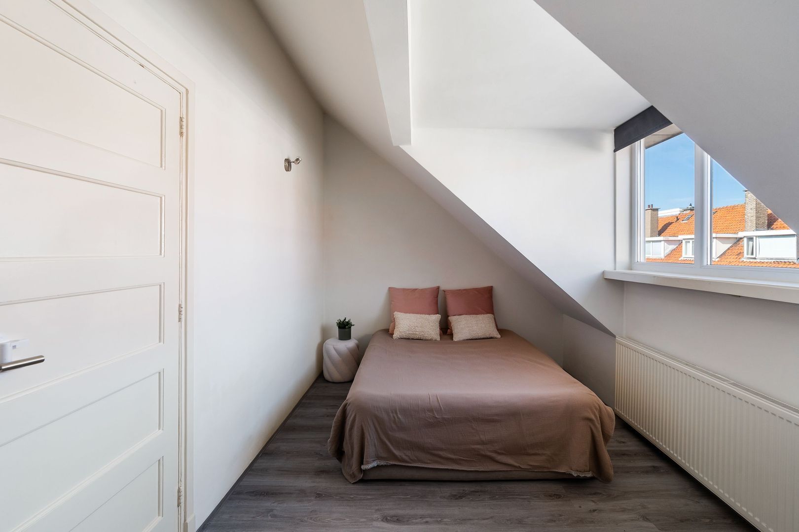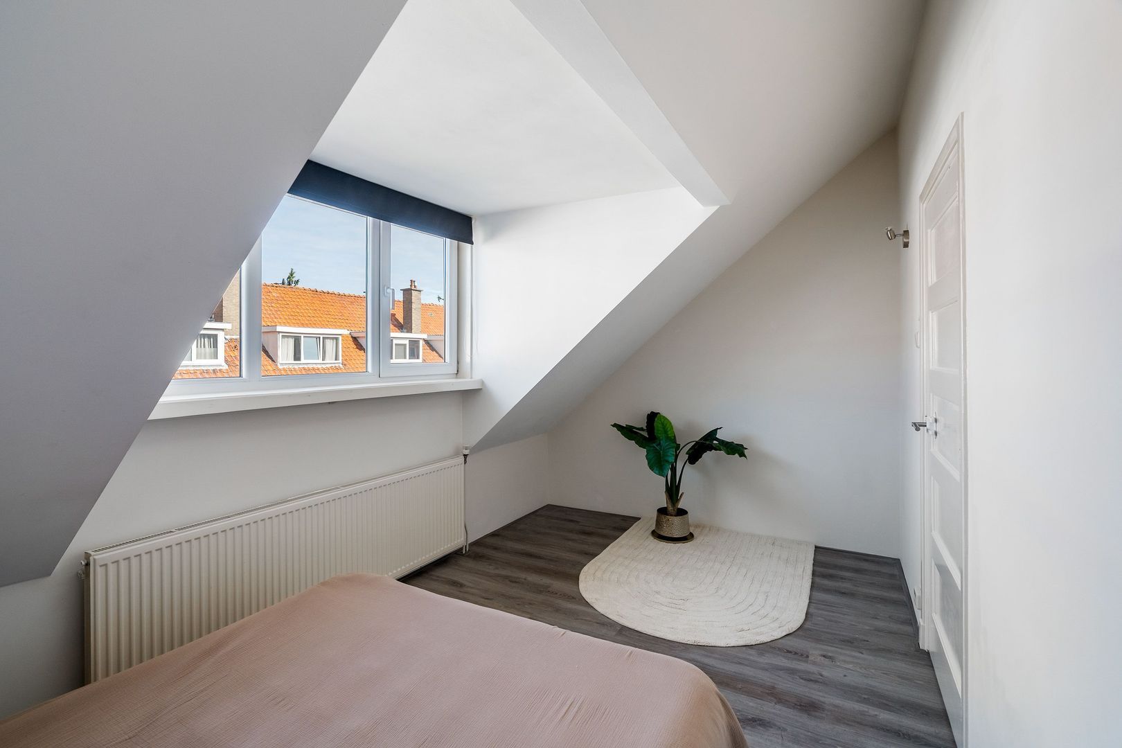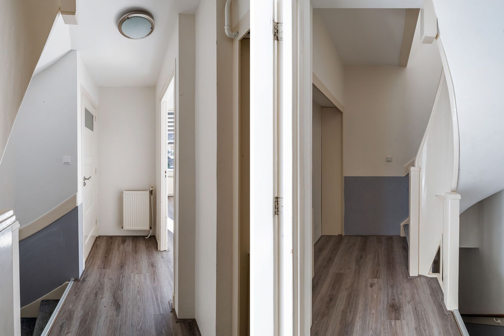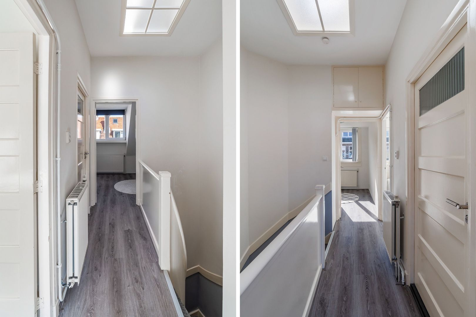 Trap vanaf de overloop naar de overloop op de 2e etage; 1e slaapkamer aan de voorzijde met dakkapel; 2e slaapkamer aan de achterzijde met dakkapel; 3e slaapkamer aan de achterzijde met vaste kast en een dakkapel; moderne badkamer met douche, wastafelmeubel en toilet.