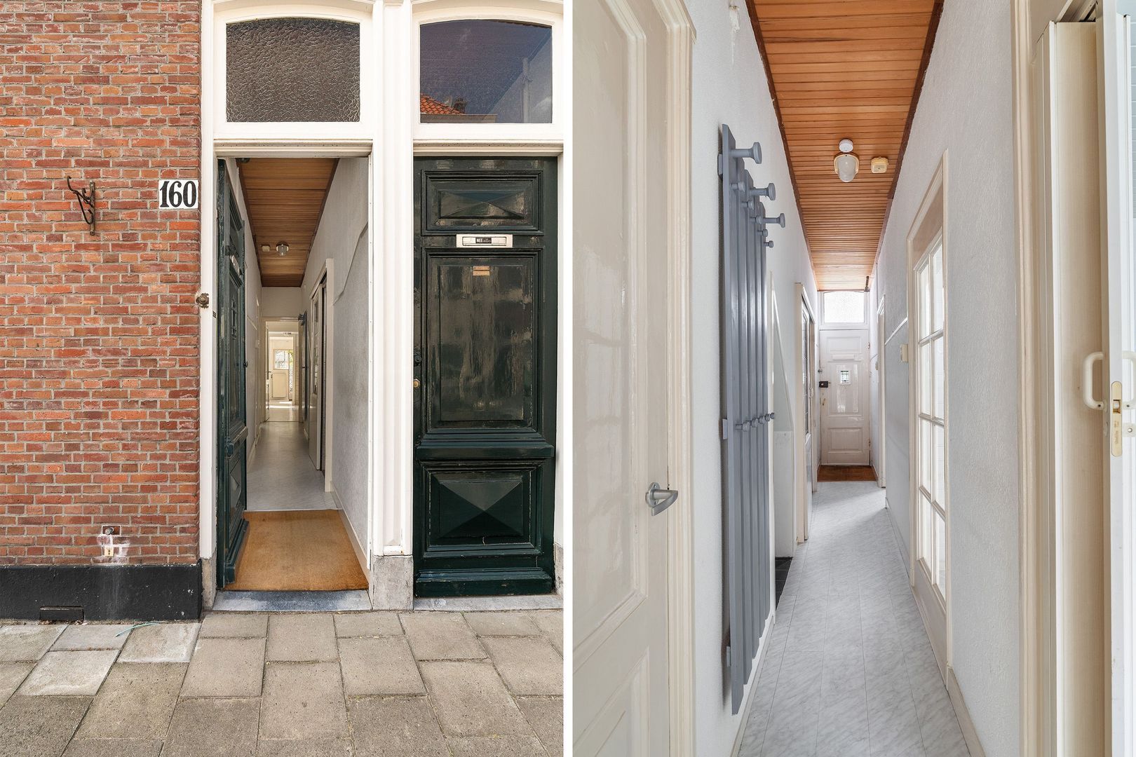 Entree straatzijde en via de begane grond; Binnentrap naar 1e etage.