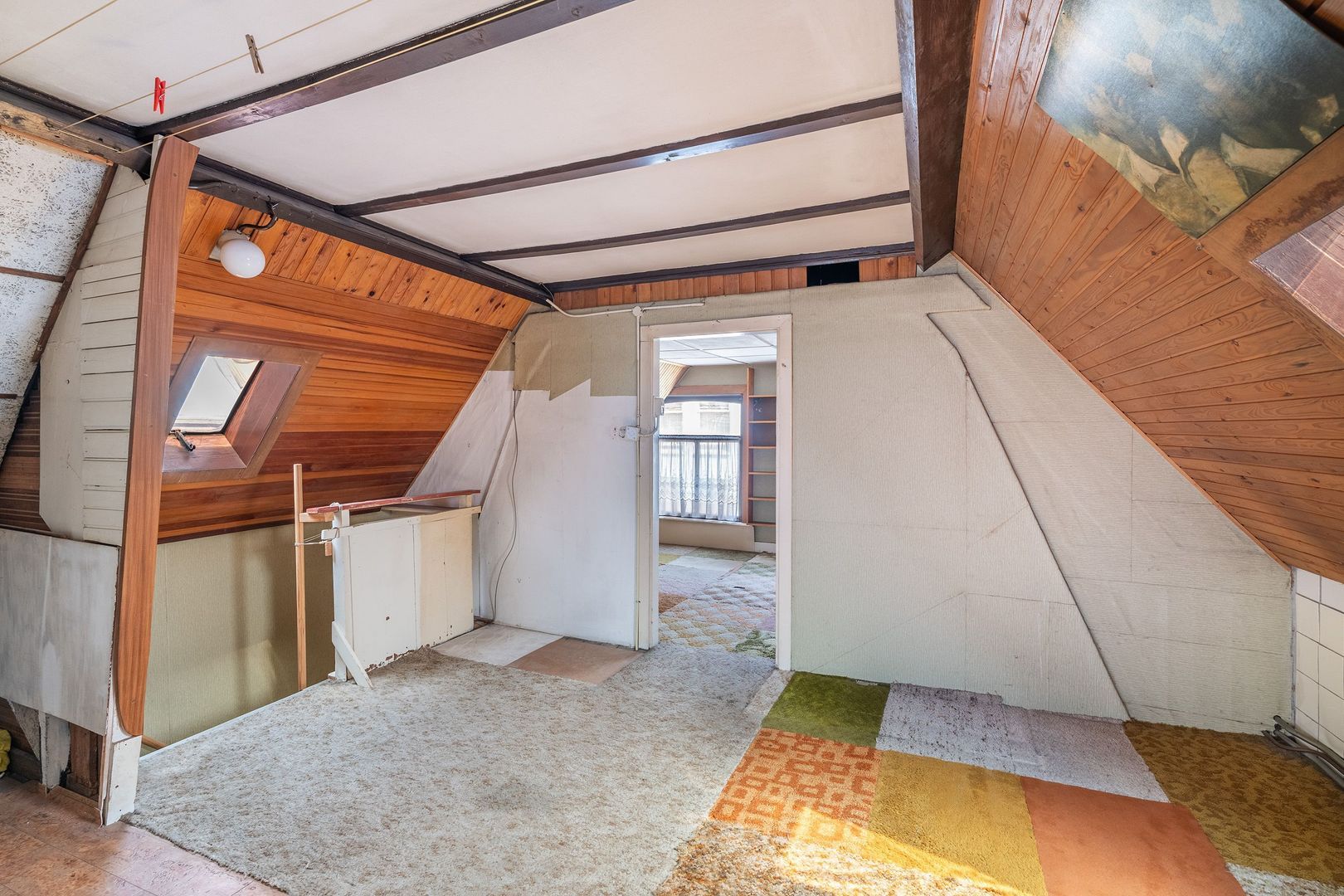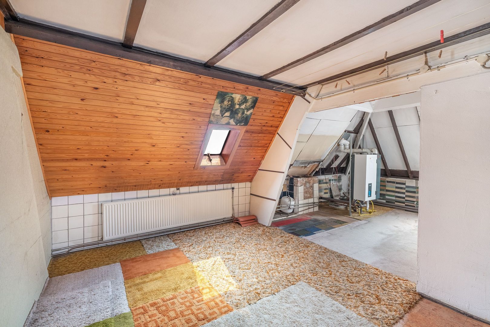 2e etage: Royale overloop; grote ruimte met een voorgedeelte (slaapkamer) en een achtergedeelte met badkamer; deze zolder is prima in te delen als ruimte met 2 slaapkamers en een goede badkamer.. Opstelplaats cv-ketel. Dakramen.