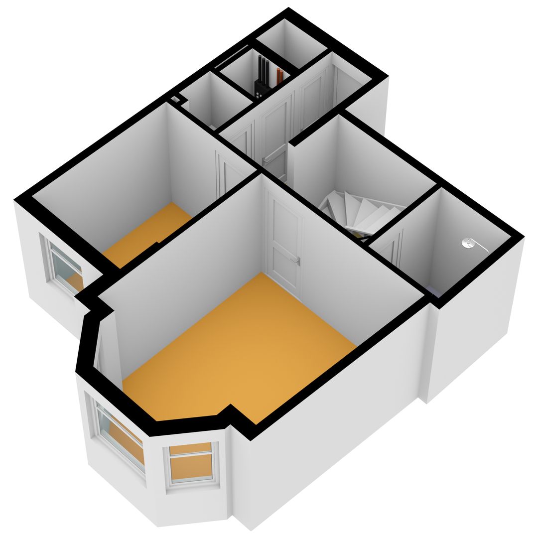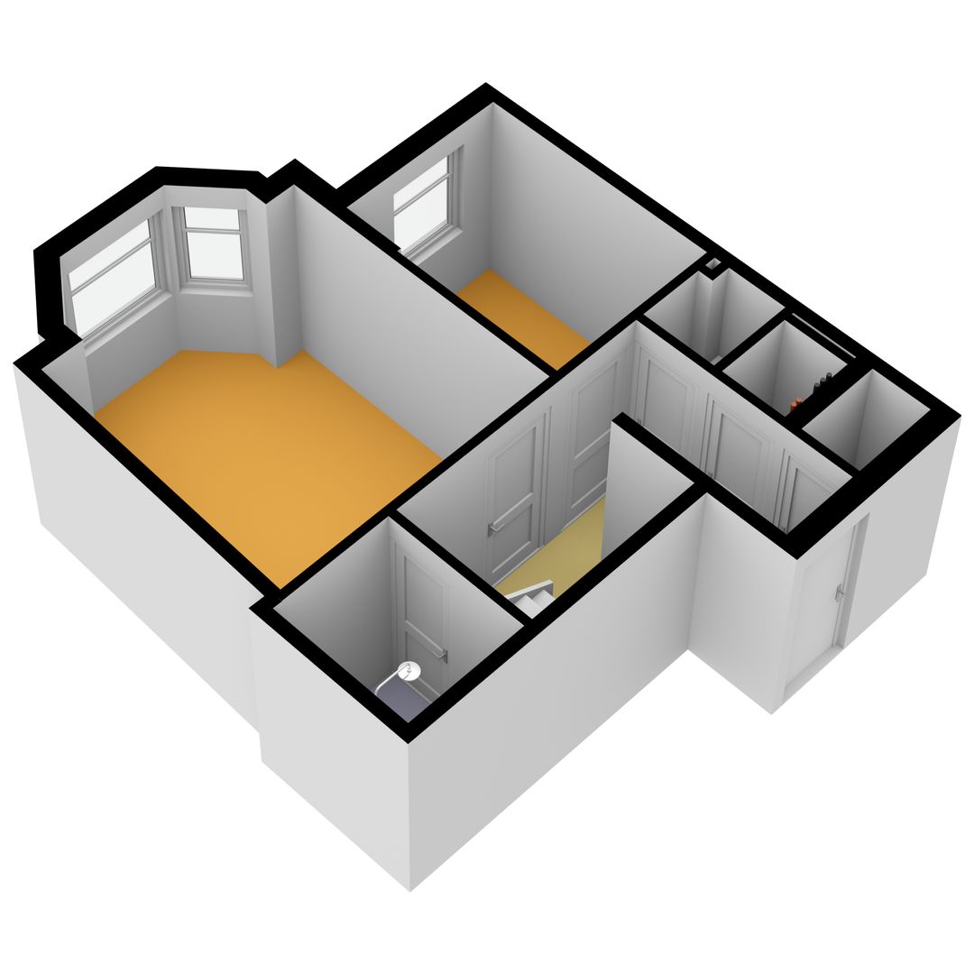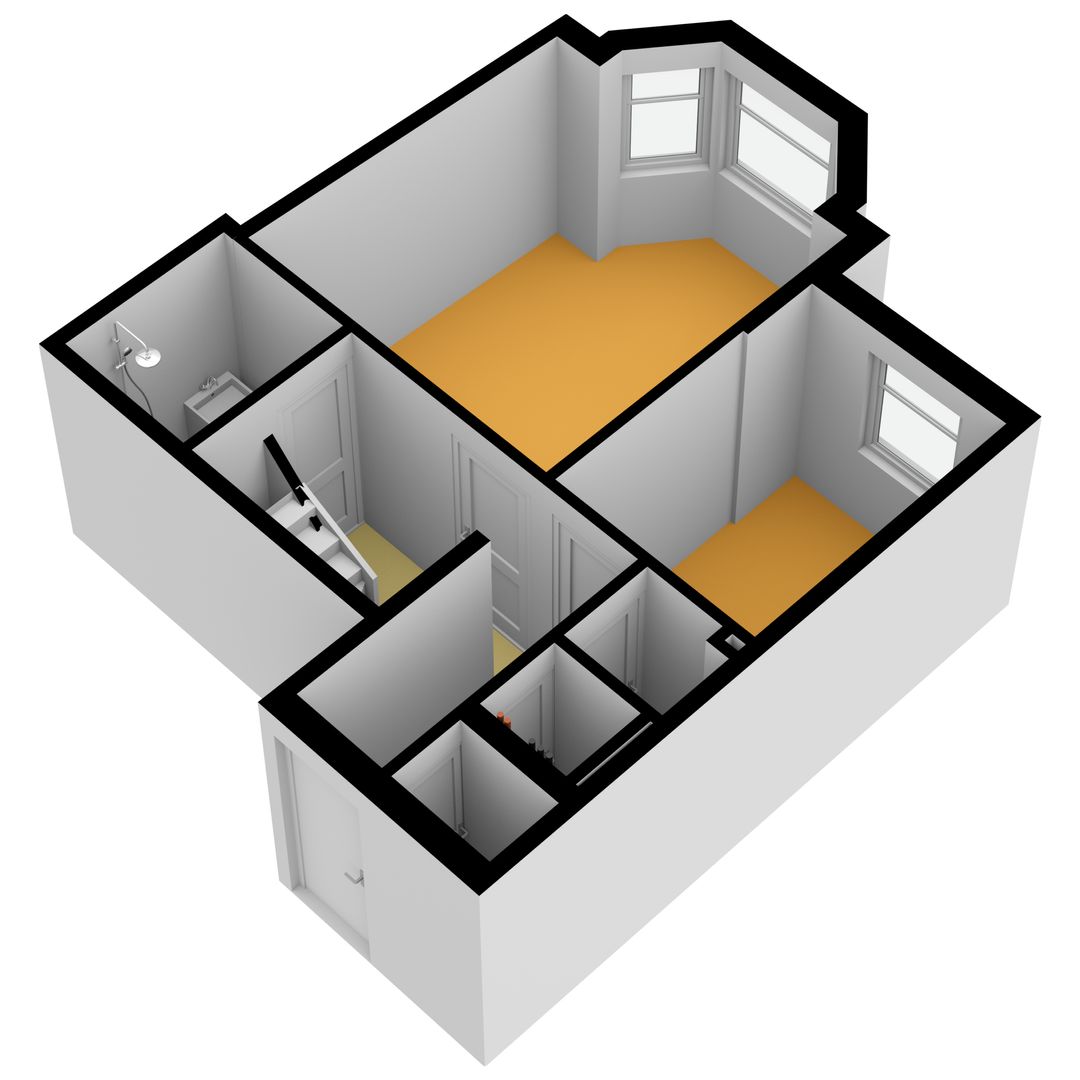 2e Etage: Woningentree via open portiek; hal; modern toilet (wandcloset) met fontein; ruime 1e slaapkamer aan de voorzijde ca. 3.45x3.33 met royale erker ; 2e slaapkamer ca. 2.90x2.38; luxe badkamer ca. 1.70x1.43 met inloopdouche en wastafelmeubel ; vanaf de Hal op de 2e etage trap naar de overloop op de 3e etage;