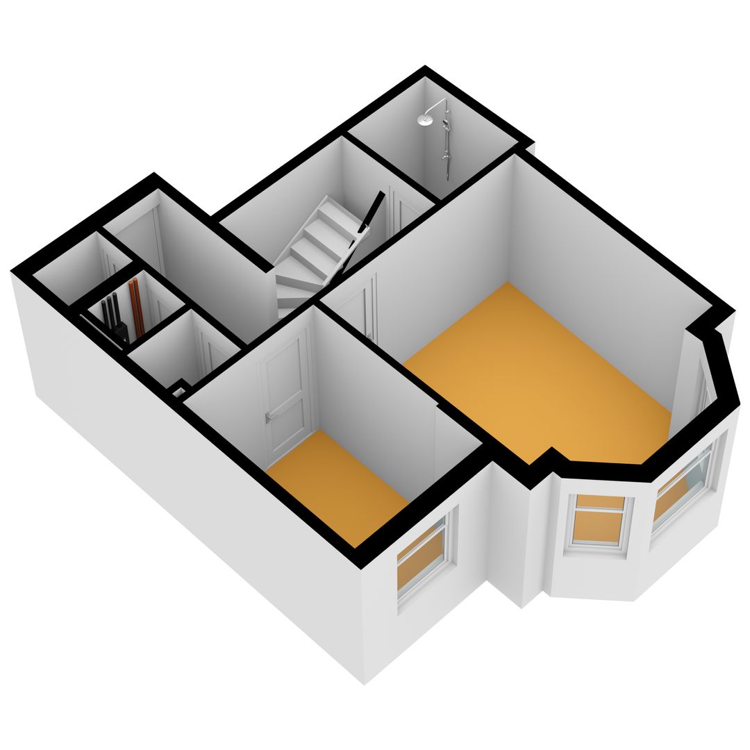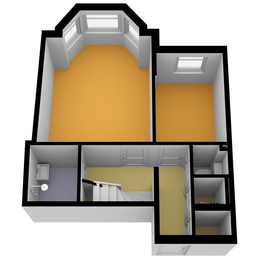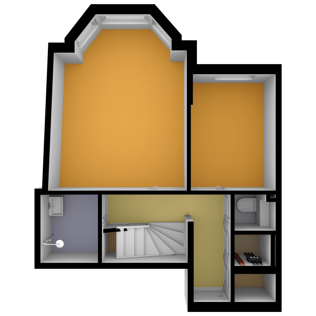 2e Etage: Woningentree via open portiek; hal; modern toilet (wandcloset) met fontein; ruime 1e slaapkamer aan de voorzijde ca. 3.45x3.33 met royale erker ; 2e slaapkamer ca. 2.90x2.38; luxe badkamer ca. 1.70x1.43 met inloopdouche en wastafelmeubel ; vanaf de Hal op de 2e etage trap naar de overloop op de 3e etage;