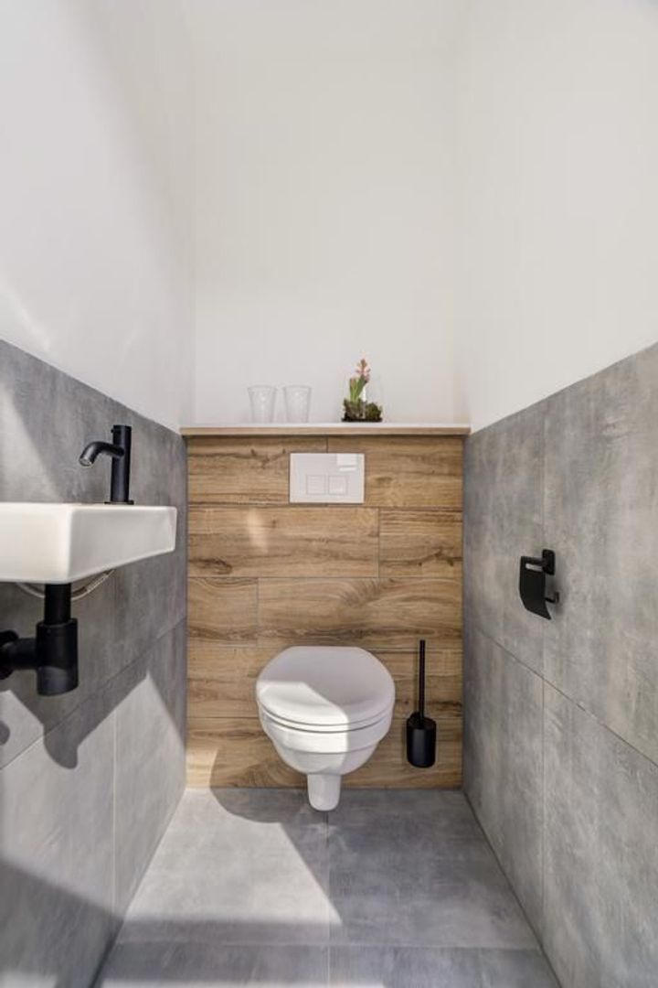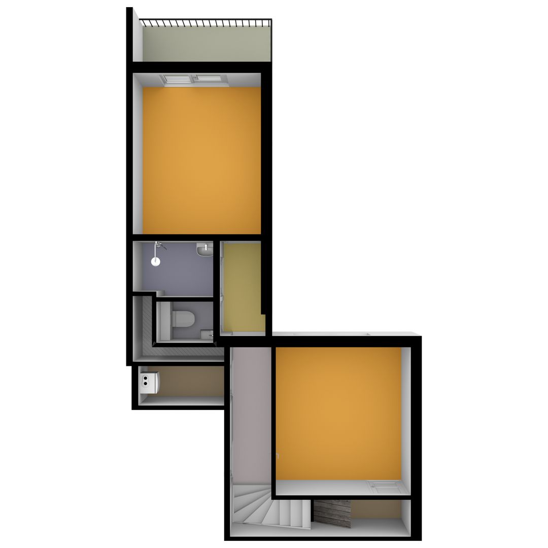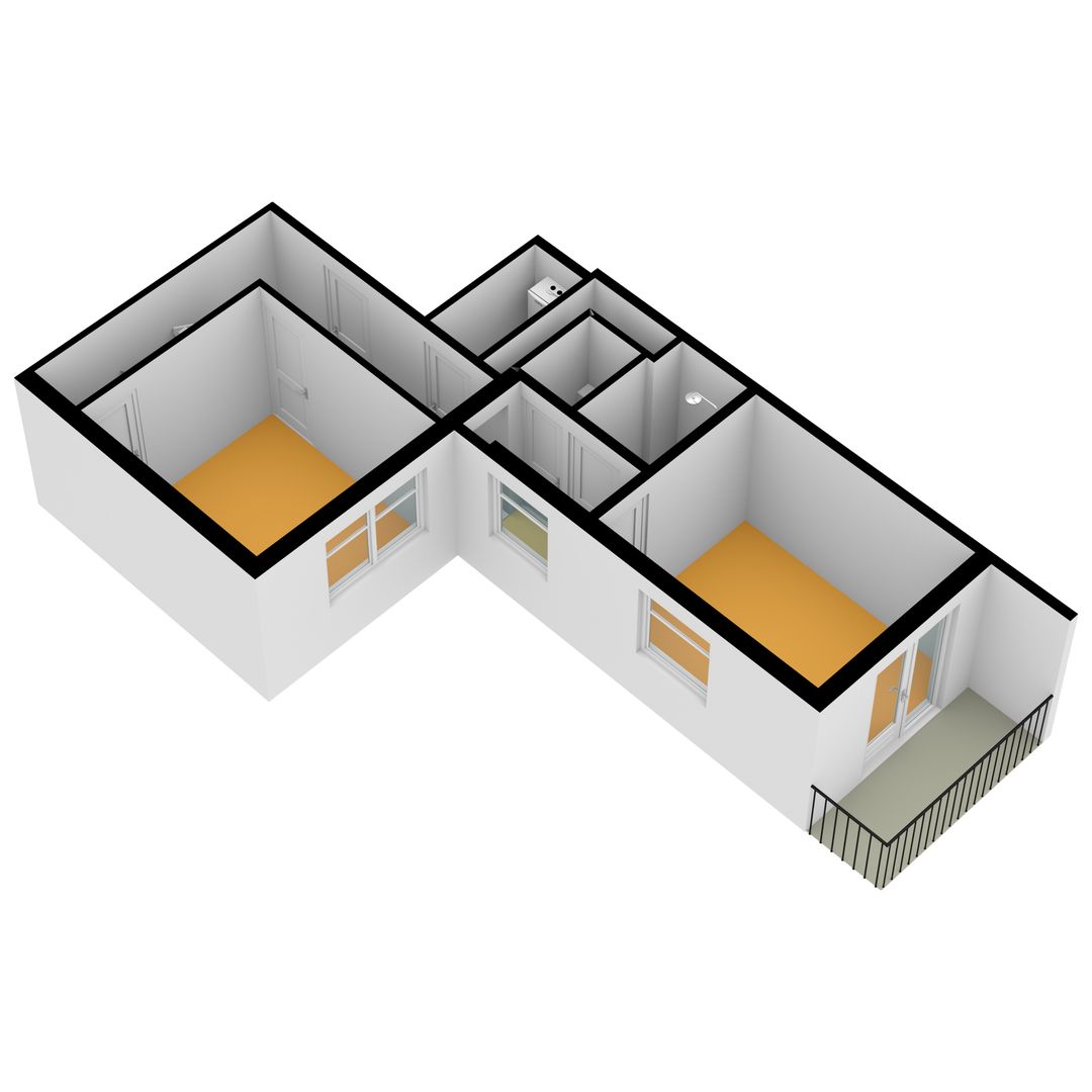 1e Etage: Woningentree via open portiek; hal; modern toilet (wandcloset) met fontein; ruime 1e slaapkamer aan de voorzijde ca. 3.35x2.98 ; 2e slaapkamer aan de achterzijde ca. 3.60x3.00 met ruim balkon; luxe badkamer ca. 1.27x1.82 met inloopdouche en wastafelmeubel ;
