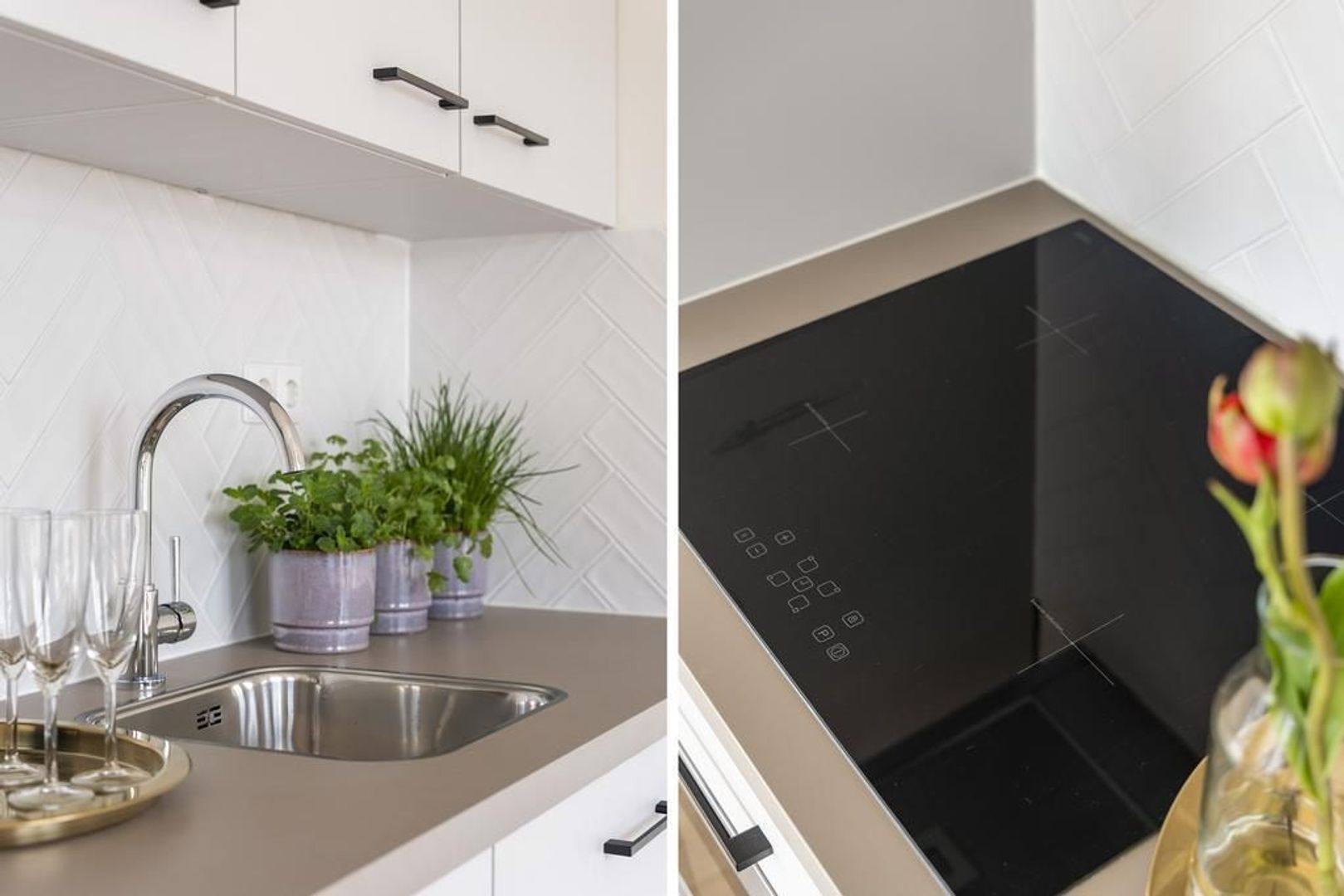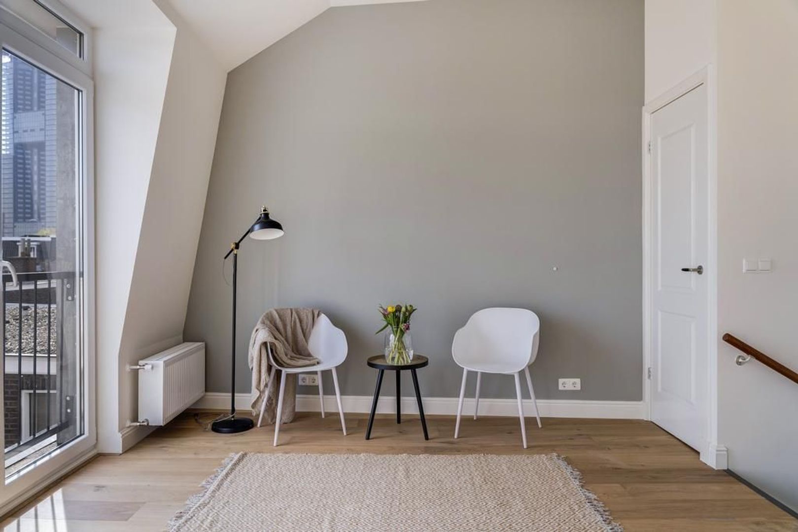 - Luxe woonkeuken in de dakopbouw met veel lichtinval door de raampartij aan de achterzijde;