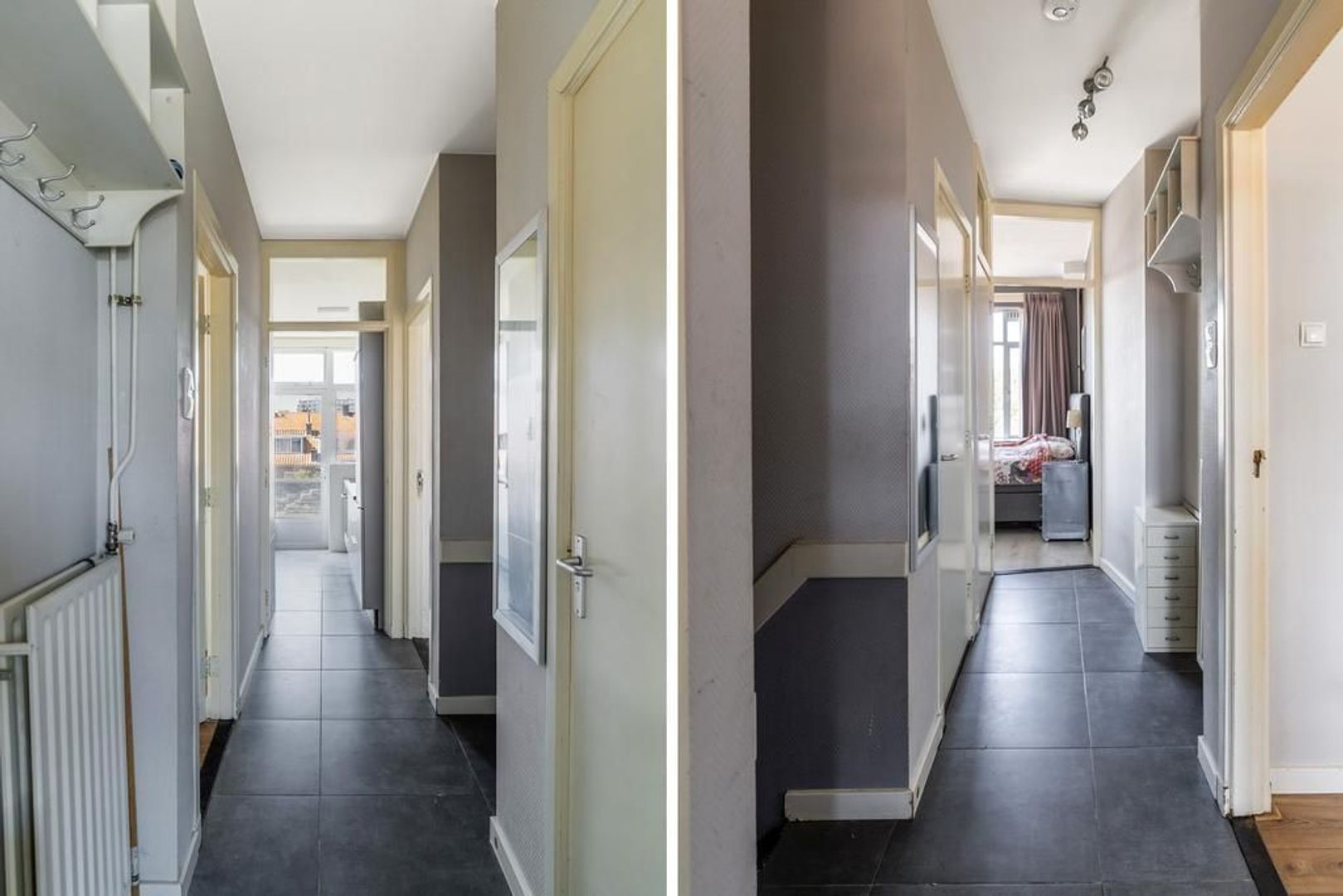 Entree op 1e etage: hal met groepenkast (ca. 2020); binnentrap; overloop; toilet (vrijhangend) met fonteintje; riante doorgebroken woonkamer met aan de achterzijde een schuifpui naar het balkon over de gehele breedte met balkonkast; open keuken met diverse inbouwapparatuur waaronder een elektrische kookplaat, afzuigkap, combi-oven magnetron, koelkast, vriezer en vaatwasser; grote slaapkamer aan de voorzijde; moderne badkamer met inloopdouche en wastafelmeubel; slaapkamer aan de achterzijde met vaste kast;