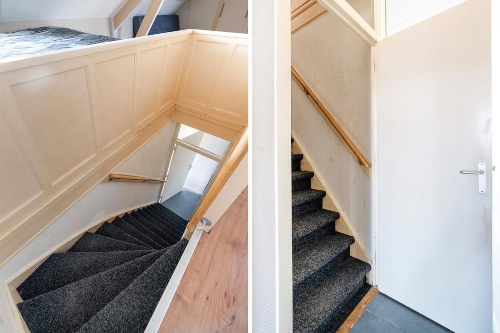 via de overloop, trap naar de zolderverdieping met dakkappelen; riante overloop met wasmachine/droger aansluiting en kastruimte alwaar zich de cv-ketel bevindt; 2 grote slaapkamers aan de achterzijde.