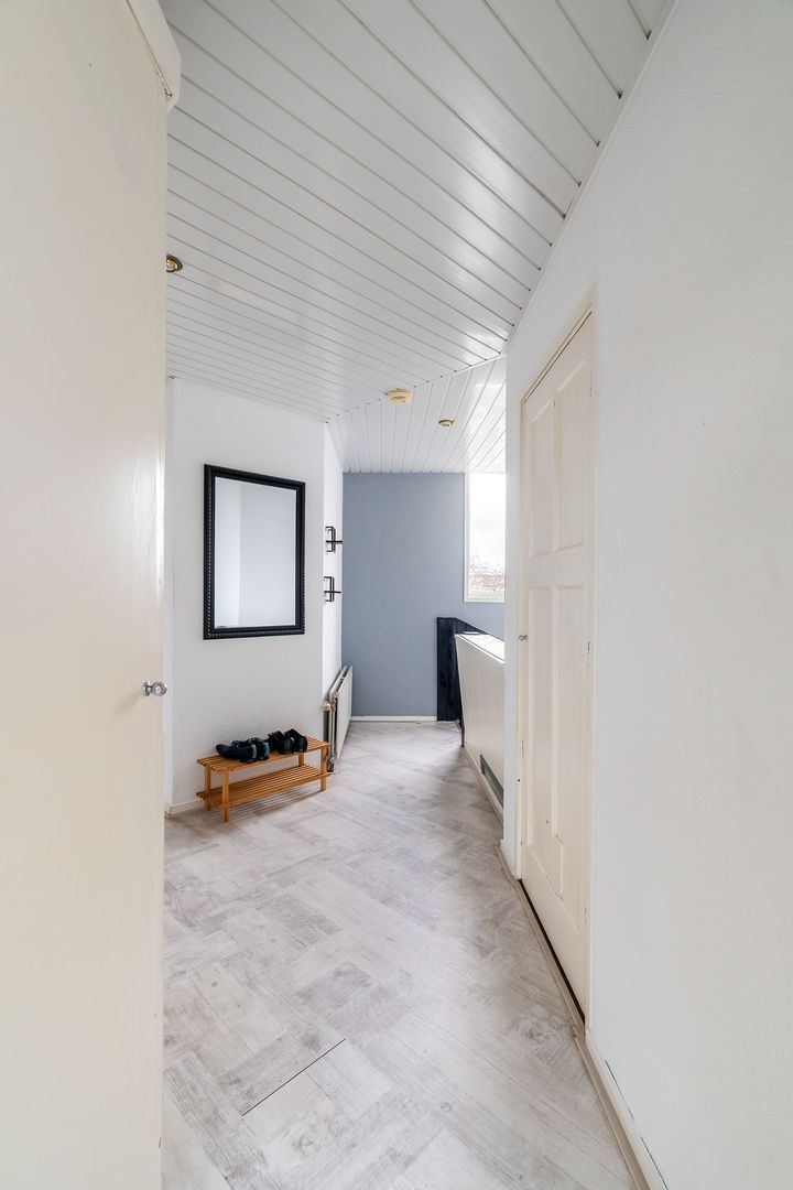 Woningentree via open portiek; overloop met vaste kast voorzien van wasmachine; sfeervolle woonkamer met airconditioning en een vaste kast; moderne keuken met aanrechtblad aan 2 zijden, stenen werkblad, 5-pits gasfornuis met oven, afzuigkap, koel/vriescombinatie, vaatwasser en toegang tot het balkon; royale 1e slaapkamer aan de achterzijde met airconditioning en toegang tot de moderne badkamer met een inloopdouche en een wastafelmeubel; 2e slaapkamer aan de voorzijde met een vaste kast voorzien van de cv-opstelling; trap vanuit de 2e slaapkamer naar de werkkamer in de opbouw; separaat toilet;
