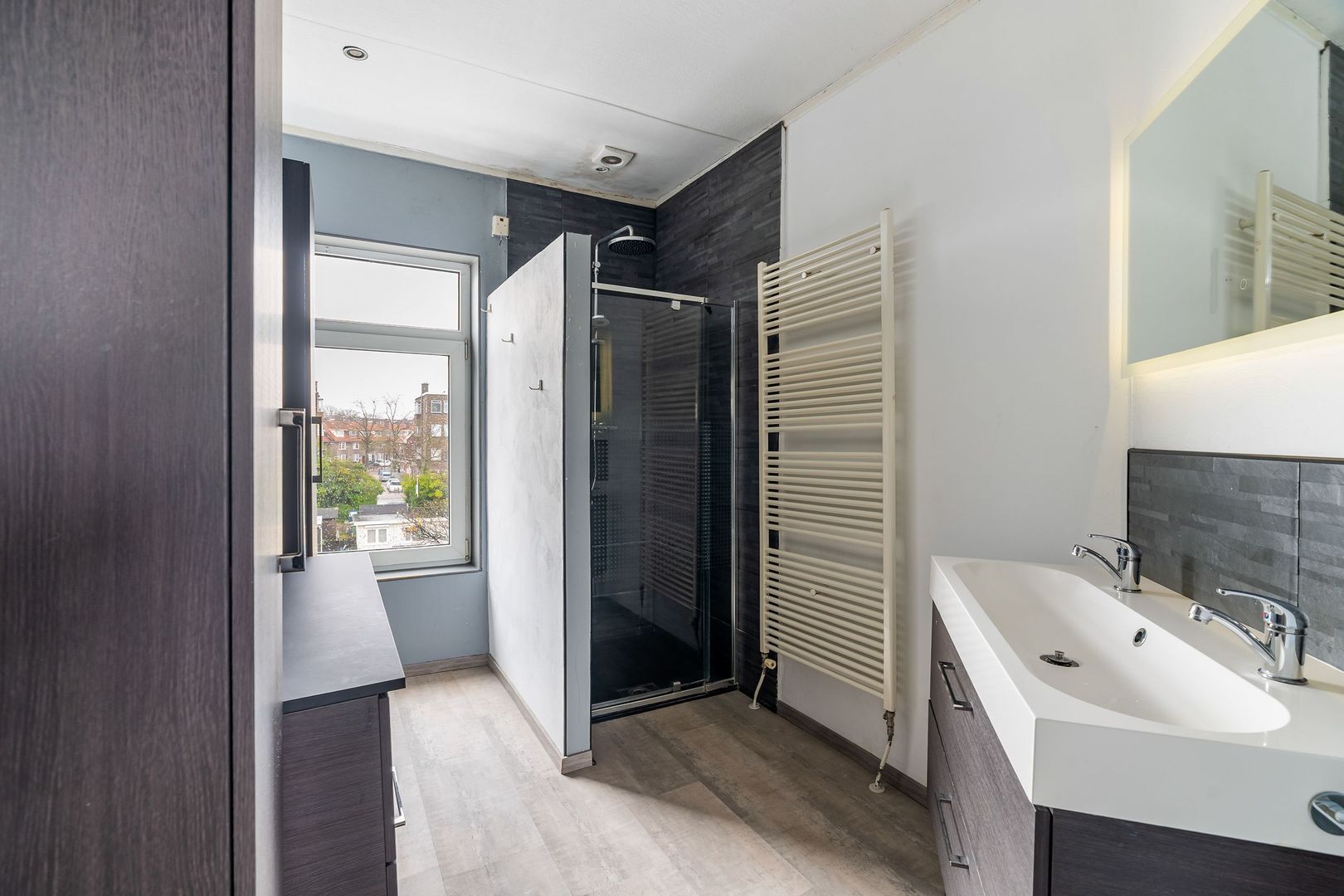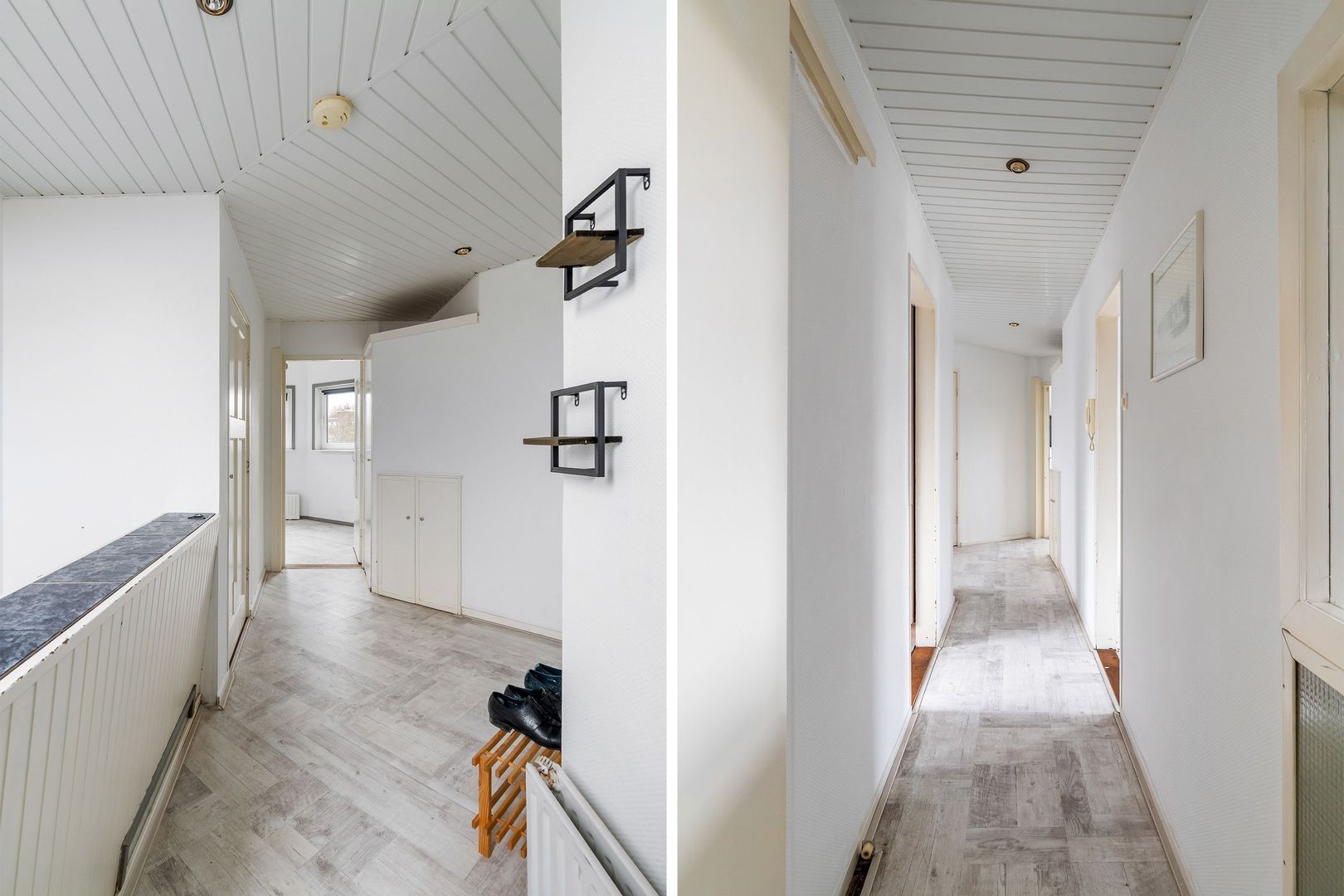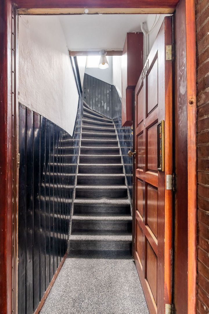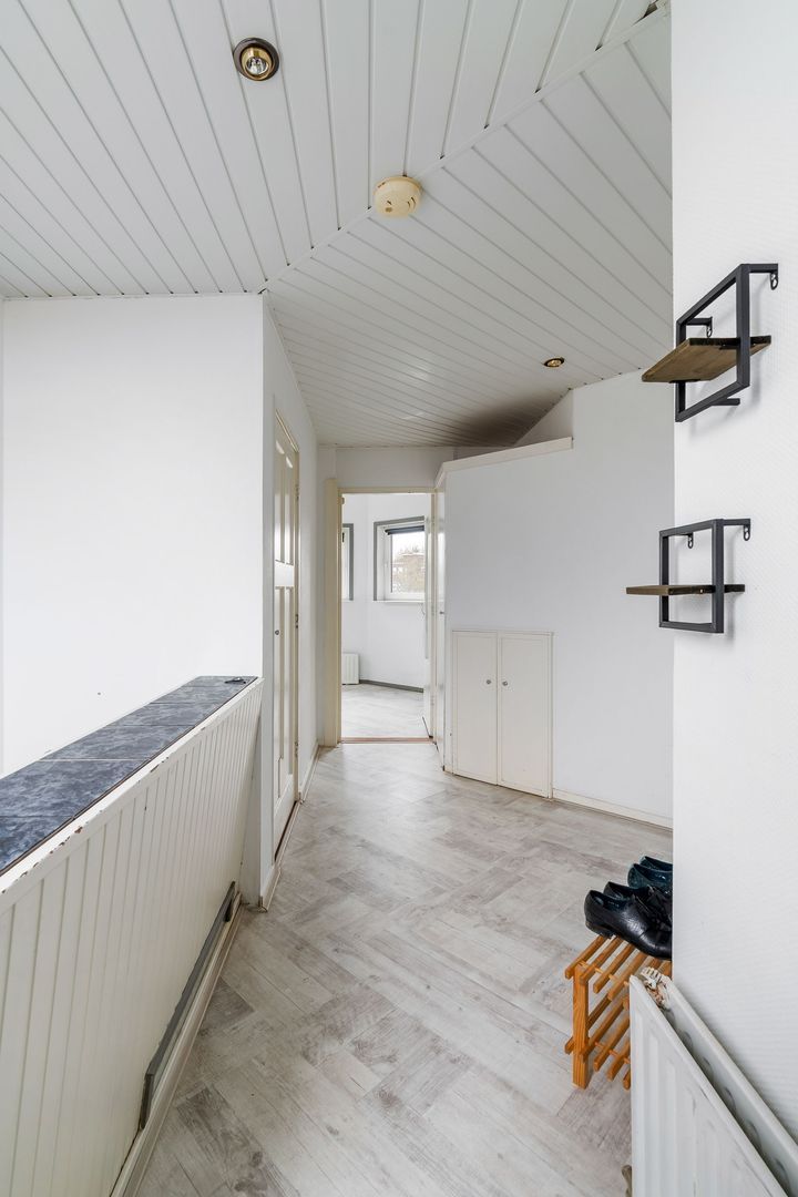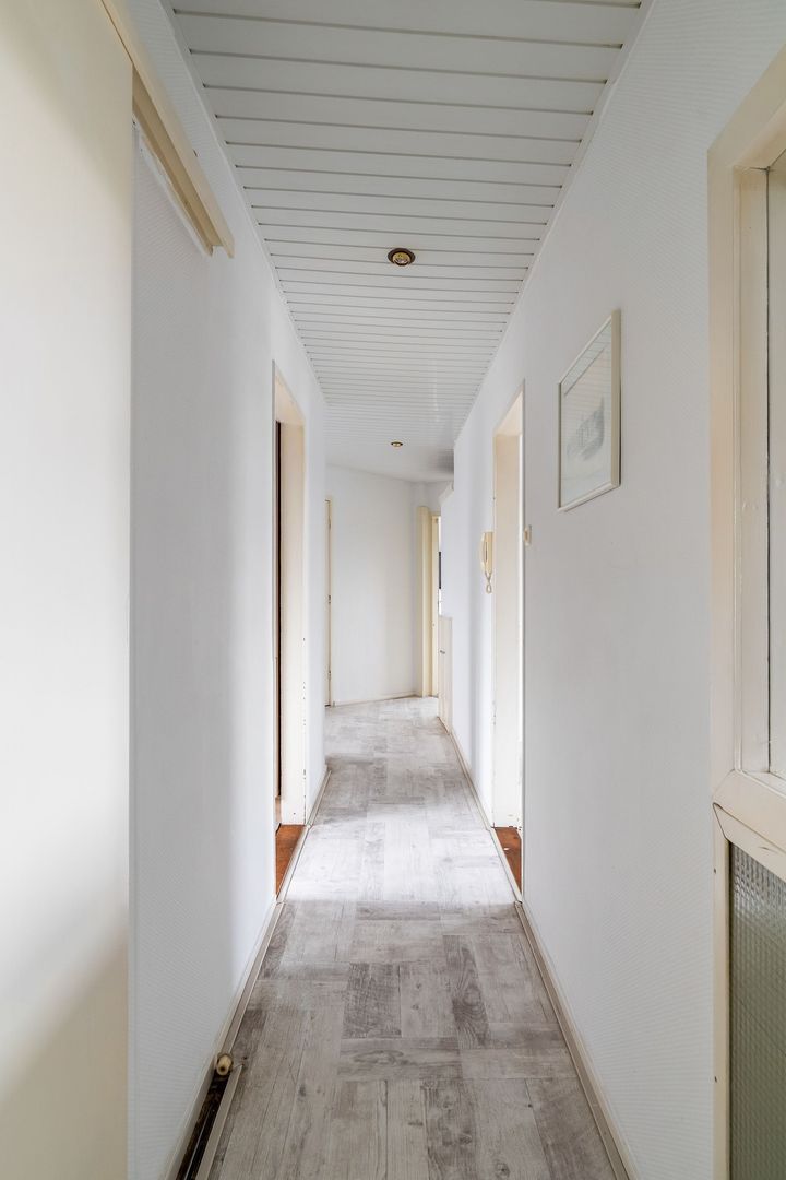 Woningentree via open portiek; overloop met vaste kast voorzien van wasmachine; sfeervolle woonkamer met airconditioning en een vaste kast; moderne keuken met aanrechtblad aan 2 zijden, stenen werkblad, 5-pits gasfornuis met oven, afzuigkap, koel/vriescombinatie, vaatwasser en toegang tot het balkon; royale 1e slaapkamer aan de achterzijde met airconditioning en toegang tot de moderne badkamer met een inloopdouche en een wastafelmeubel; 2e slaapkamer aan de voorzijde met een vaste kast voorzien van de cv-opstelling; trap vanuit de 2e slaapkamer naar de werkkamer in de opbouw; separaat toilet;
