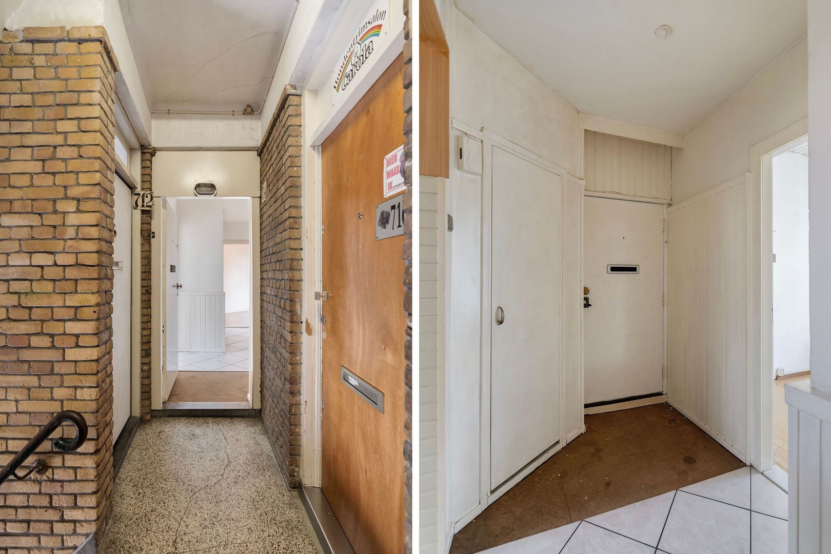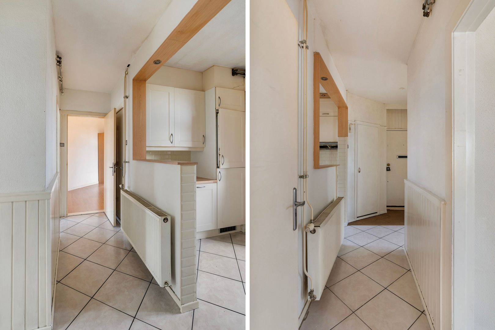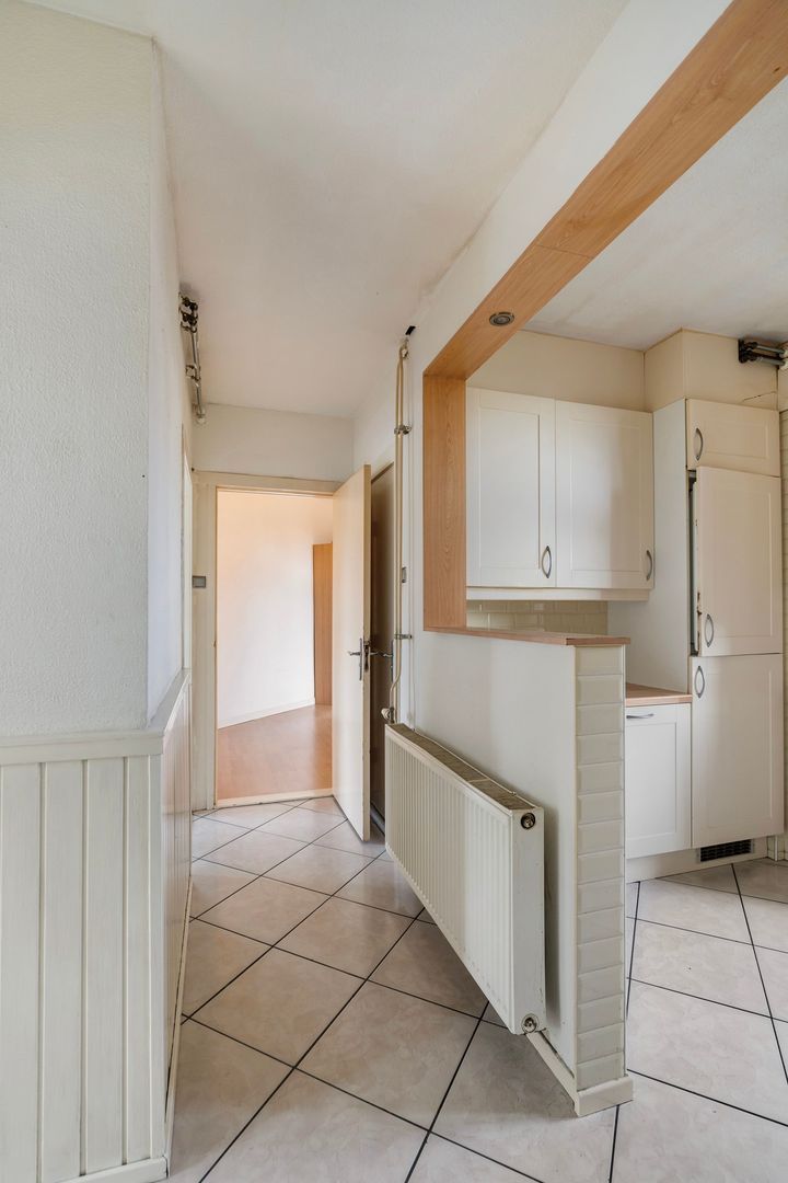 Woningentree op de 1e etage via open portiek; hal met meterkast; ruime centrale hal; woonkamer ca. 10.15x3.51/4.92 met veel lichtinval; half open keuken ca. 3.01x2.01 voorzien van 4-pits gaskookplaat, afzuigkap, koelkast, vriezer, vaatwasser en toegang tot het balkon aan de achterzijde; 1e slaapkamer aan de voorzijde ca. 4.05x3.5; 2 slaapkamers aan de voorzijde ca. 2.20s2.73 en 2.03x2.73; wit betegelde badkamer ca. 0.95x2.7 met douche en toilet;