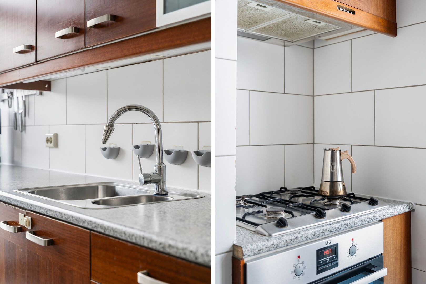 Woningentree via open portiek; hal met meterkast en binnentrap naar de overloop op de 2e etage; royale woonkamer met vaste kast en openslaande deuren naar het balkon; keurige open keuken voorzien van een gaskookplaat, afzuigkap, oven, koel-vriescombinatie, vaatwasser en toegang tot het balkon; 1e slaapkamer aan de voorzijde; 2e slaapkamer aan de achterzijde met vaste kast en openslaande deuren naar het balkon; moderne badkamer met inloopdouche, ligbad en wastafelmeubel; net separaat toilet (wandcloset);