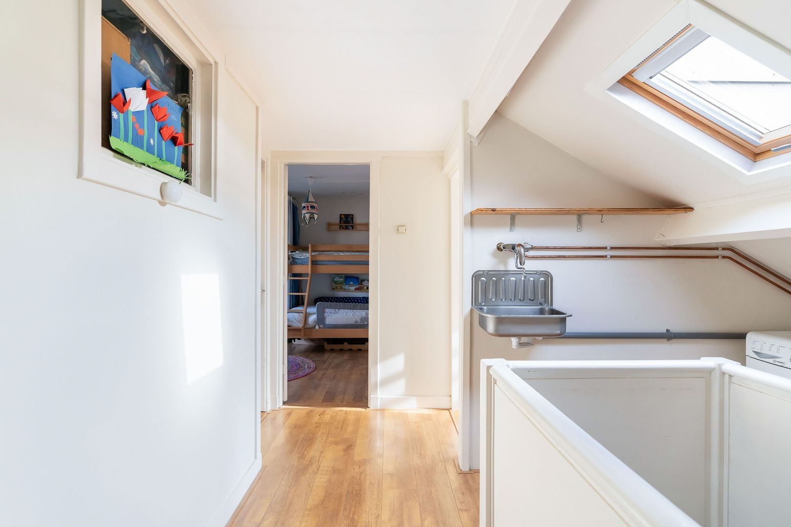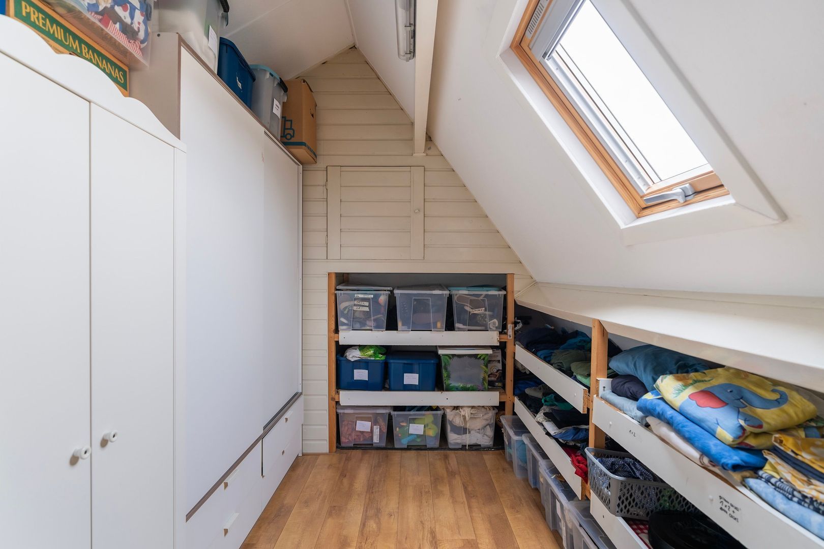 Trap vanaf de overloop naar de overloop op de 3e etage; overloop met de aansluiting voor de wasmachine en droger; 3e slaapkamer aan de voorzijde met dakkapel; 4e slaapkamer aan de achterzijde met dakkapel en toegang tot het riante sfeervol aangelegde dakterras; grote inloopkast aan de voorzijde welke tevens gebruikt kan worden als 5e slaapkamer; grote bergkast onder de kapverdieping;