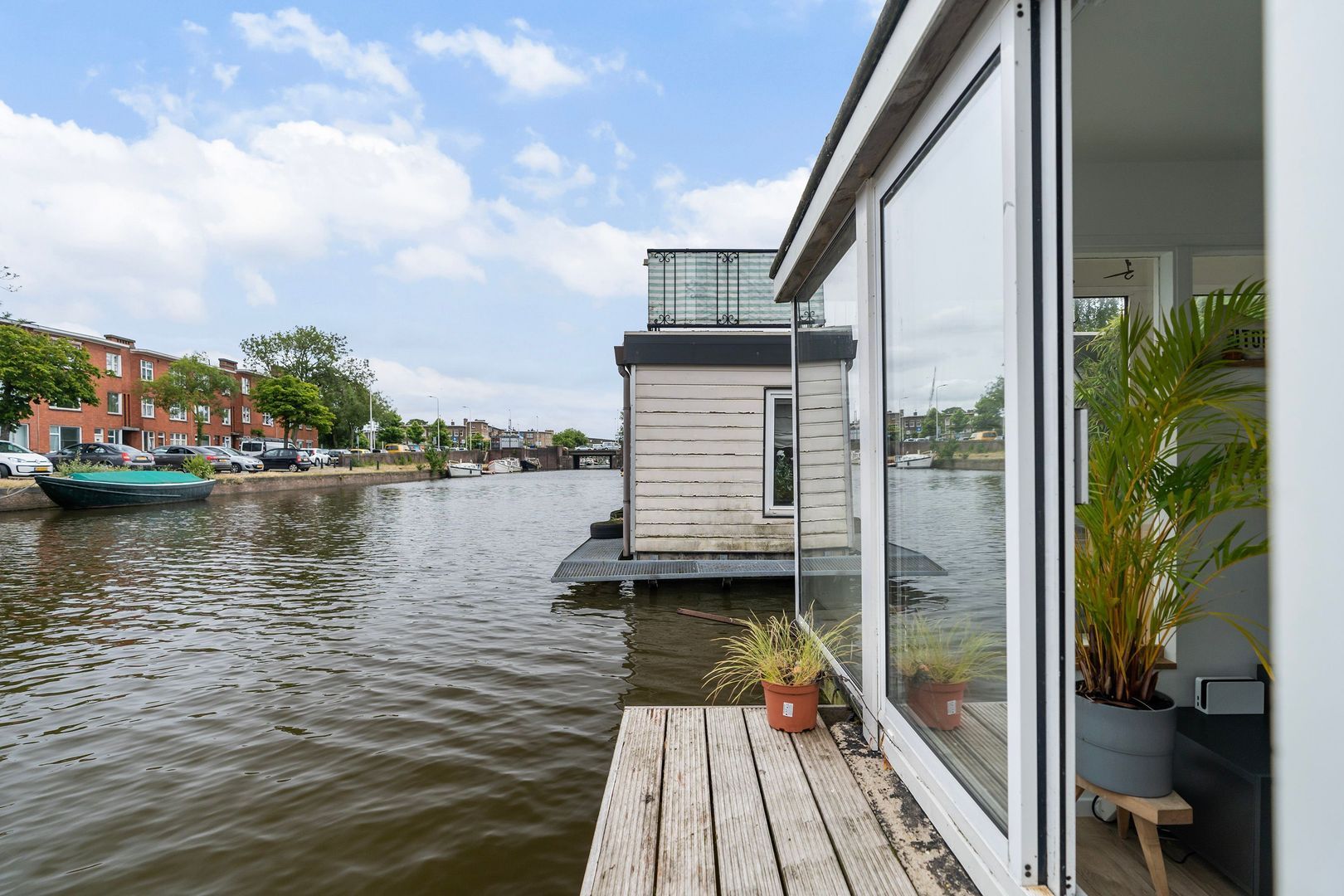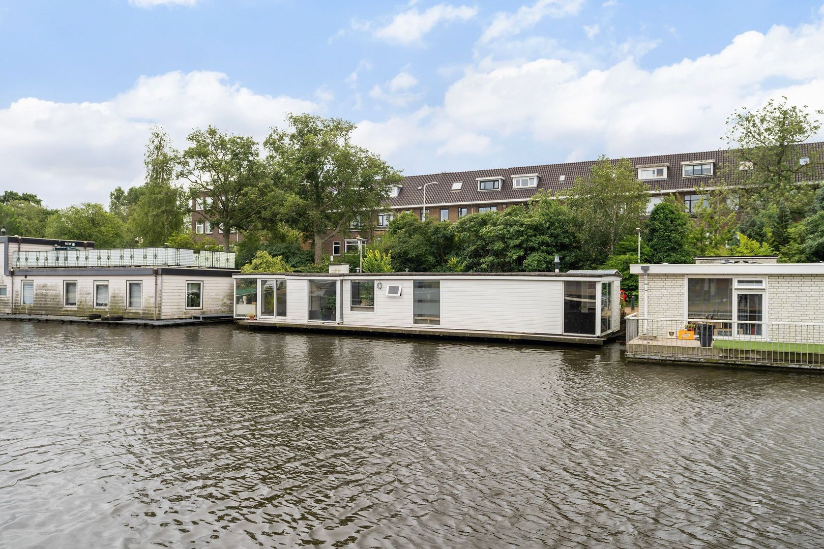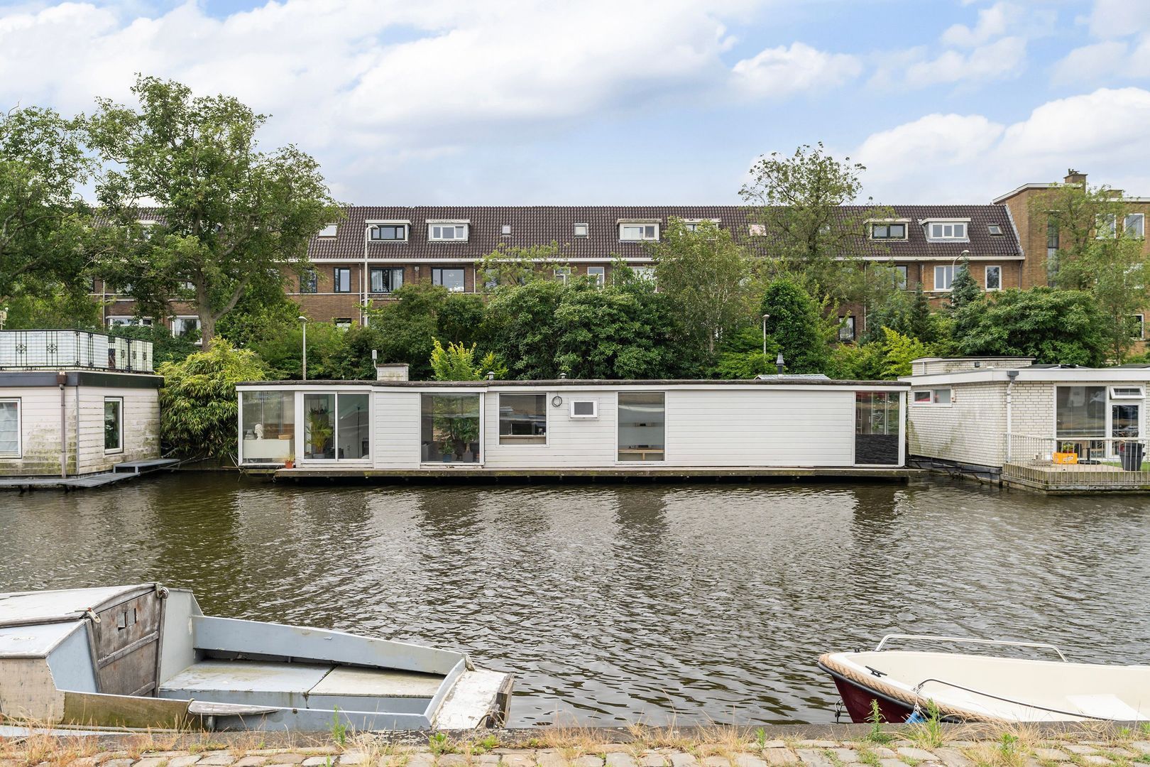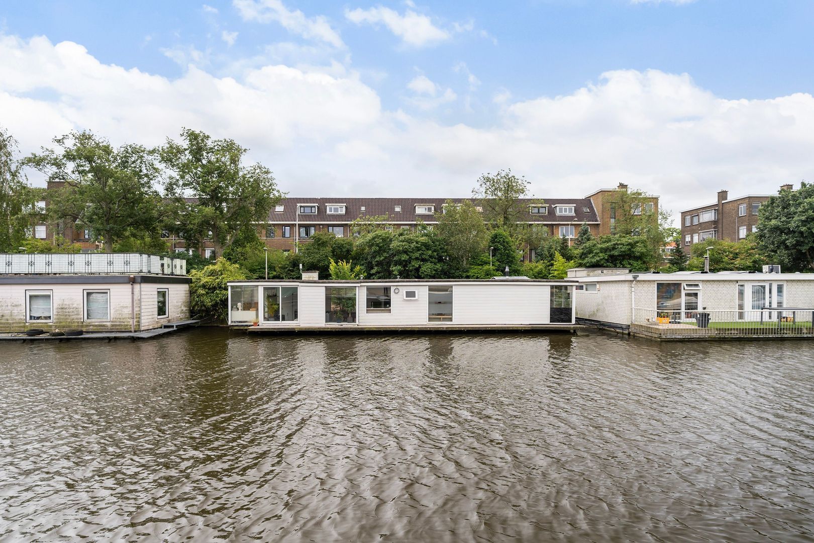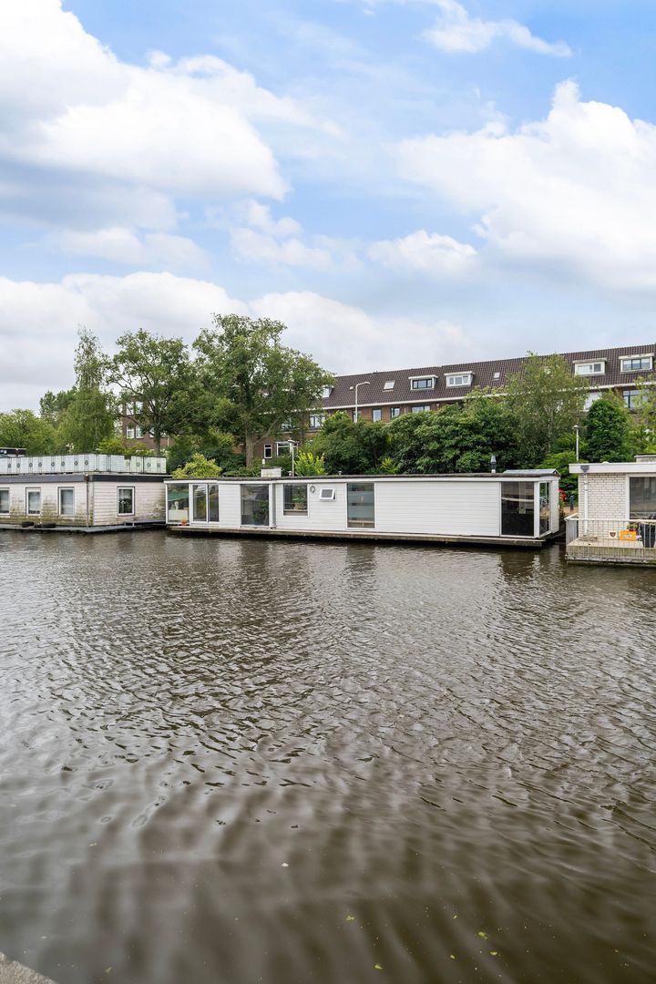 De woonark "Utopia" is gelegen aan de ventweg van de Soestdijksekade met vrij wijds uitzicht over het water.