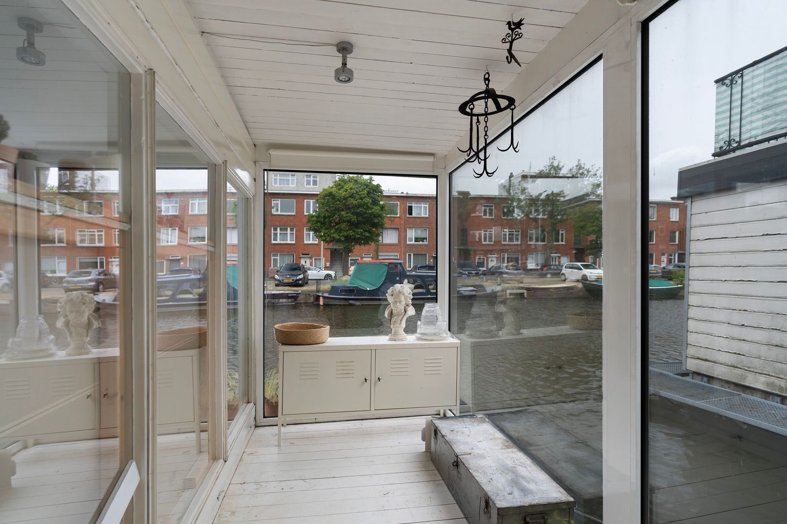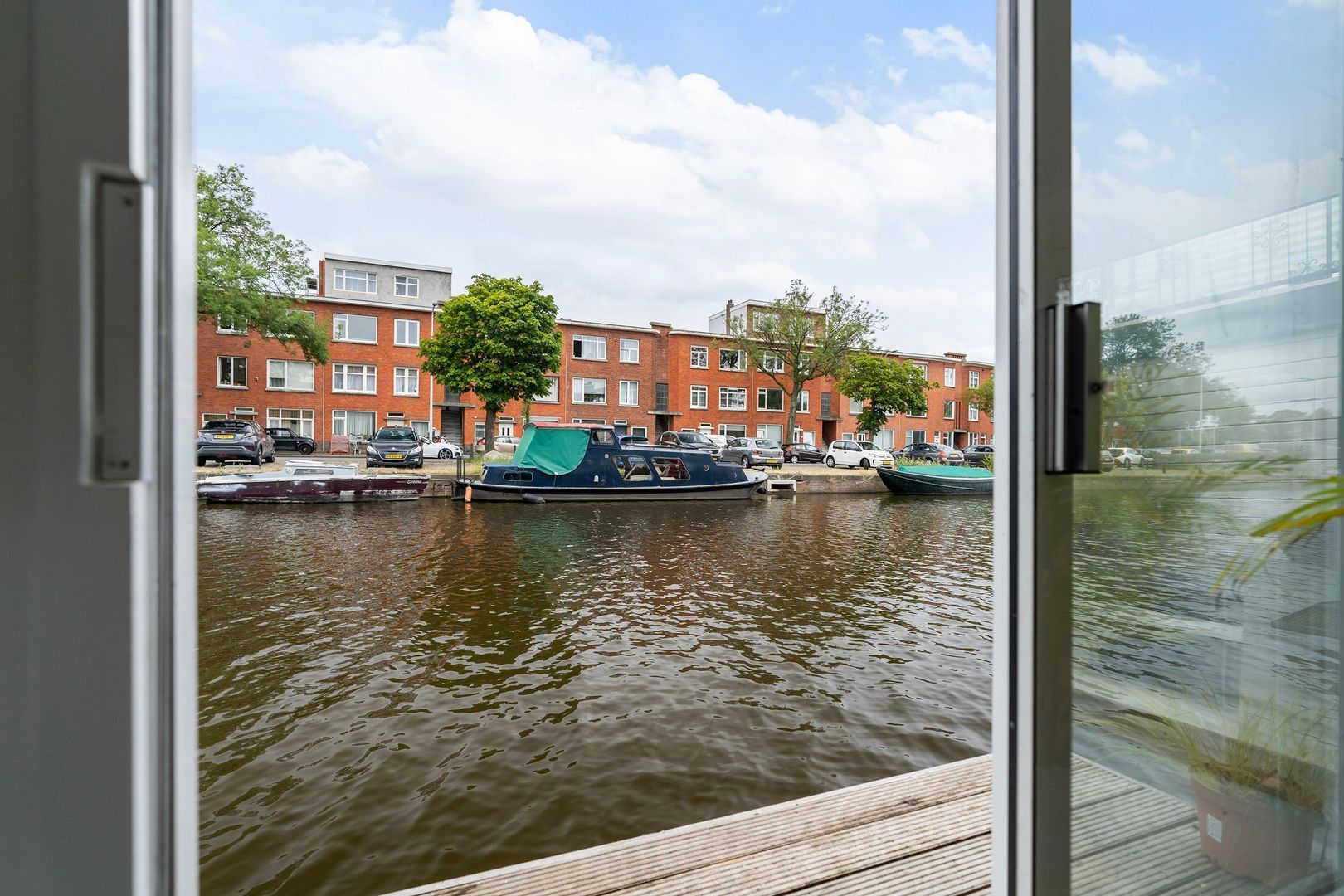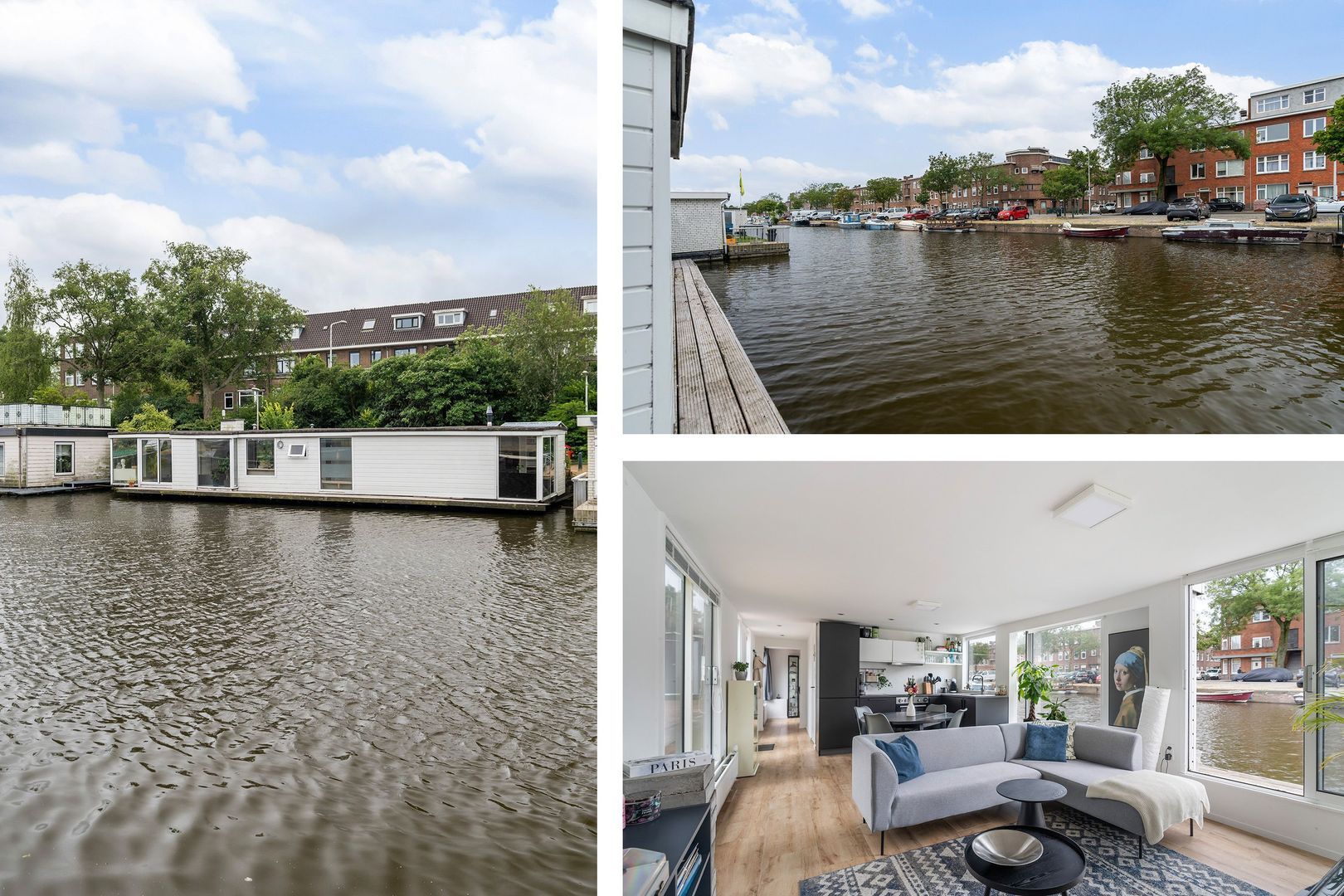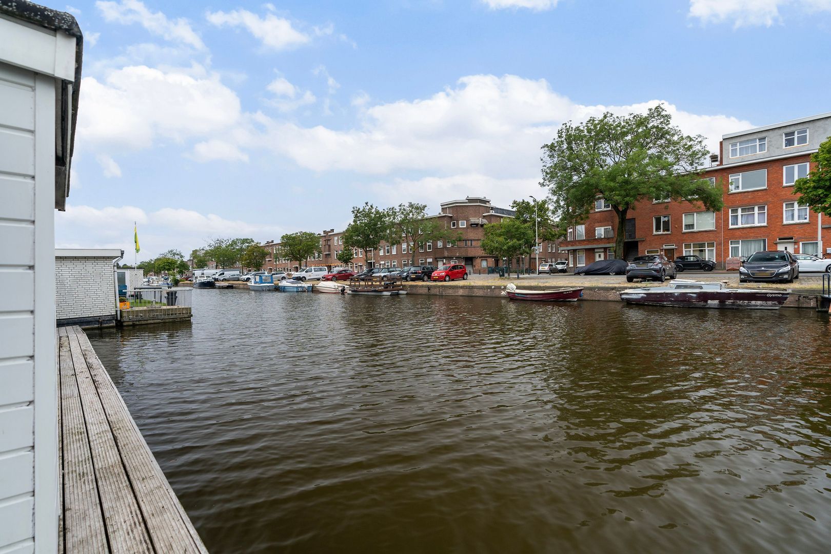 De woonark "Utopia" is gelegen aan de ventweg van de Soestdijksekade met vrij wijds uitzicht over het water.
