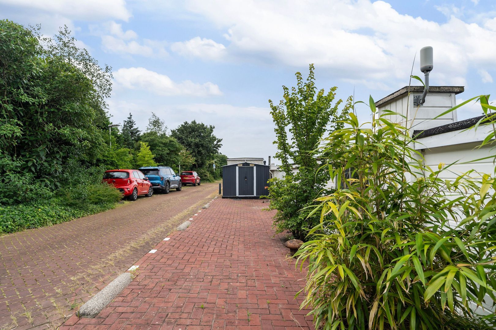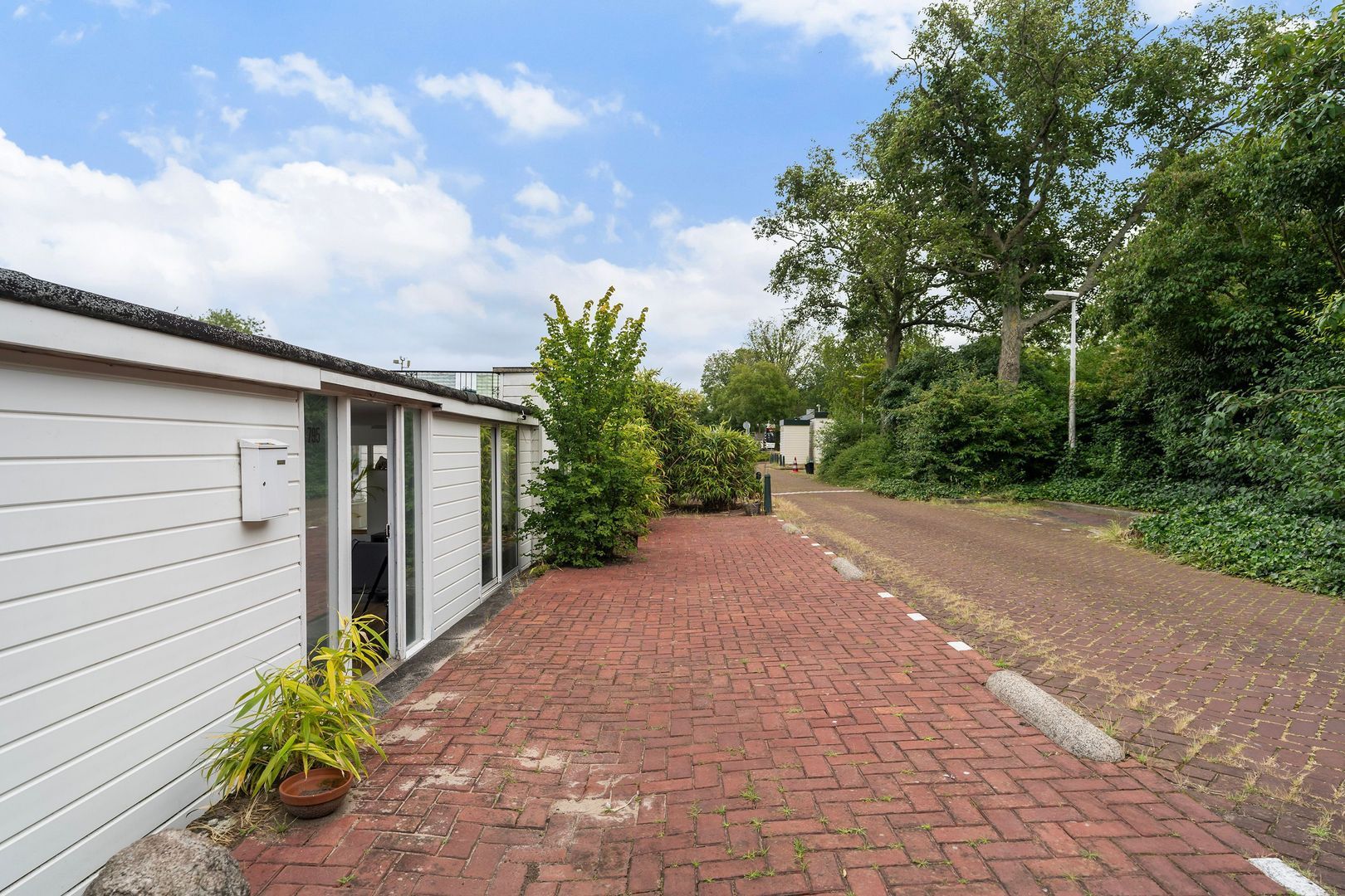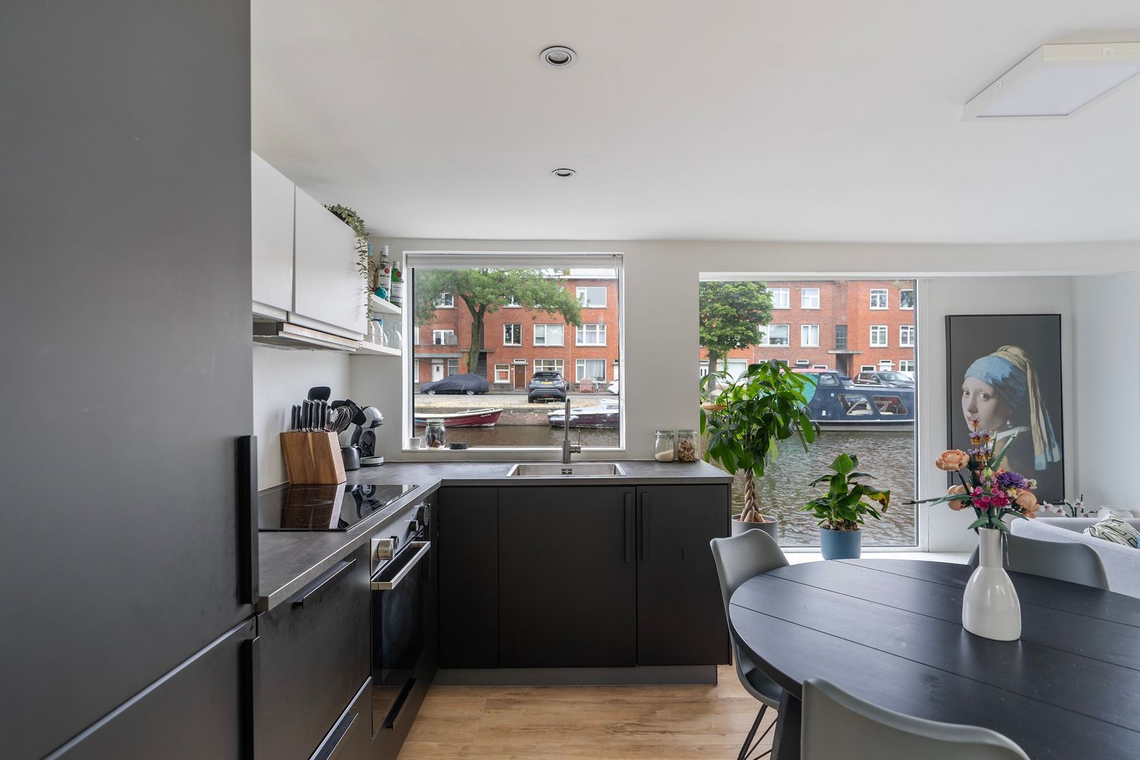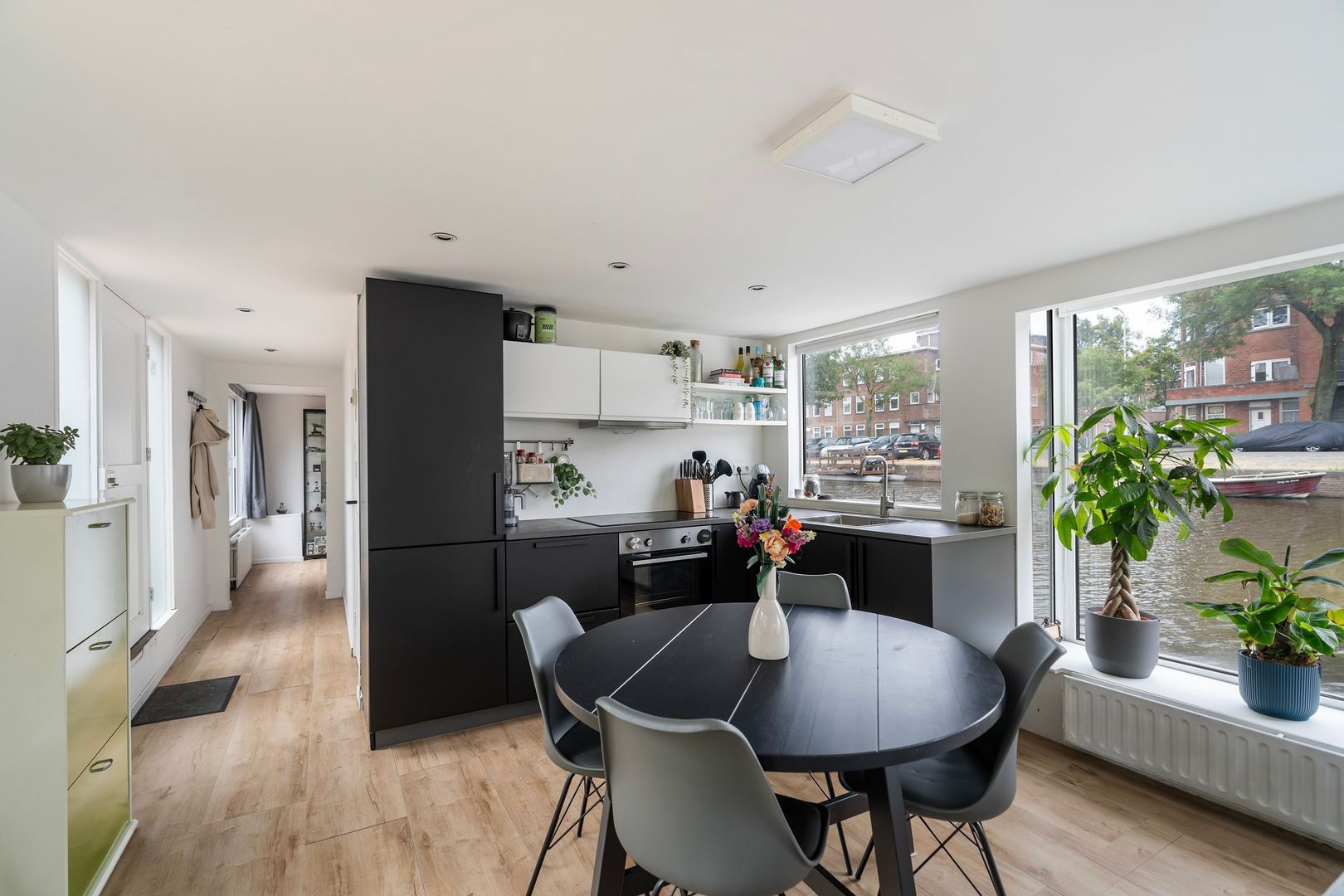 De woonark "Utopia" is gelegen aan de ventweg van de Soestdijksekade met vrij wijds uitzicht over het water.