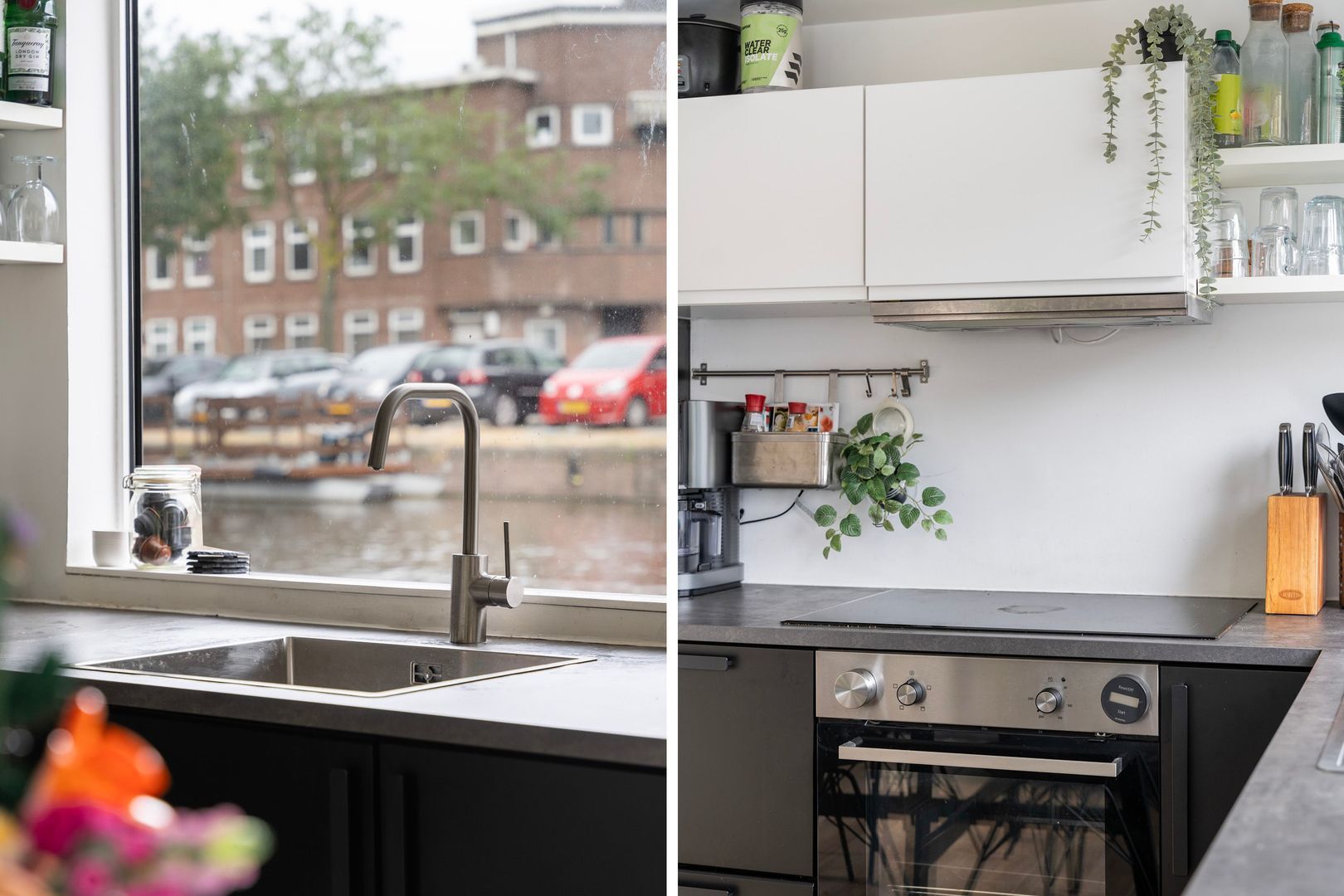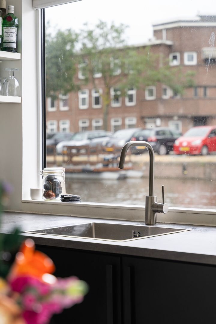 Woningentree vanaf de kade; woonkamer ca. 6.37x3.80/4.20 met een sfeervolle erker, grote raampartijen, schuifpui naar het terras, een moderne open keuken voorzien van een inductiekookplaat, afzuigkap, oven en een koelkast; vanuit de woonkamer bereikt u de studeerkamer ca. 3.80x1.38; net separaat toilet met fonteintje; 1e slaapkamer ca. 3.80x2.98 met een diepe inloopkast ca. 1.88x0.96, toegang tot de badkamer ca. 2.84/1.88x1.65 met ligbad, inloopdouche en wastafel; 2e slaapkamer ca. 3.01x2.35 met kast ca. 2.35x0.75 voorzien van de cv-opstelling en wasmachine aansluiting;
