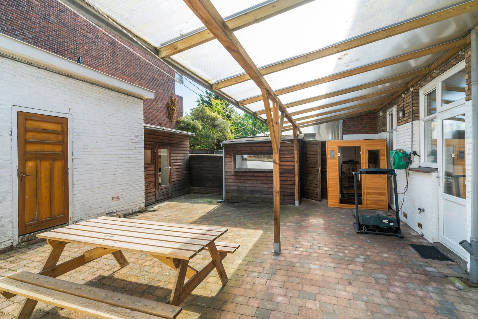 Achtertuin ca. 6.50x8.83 met 2 houten berging ca. 3.00x2.85 en 2.22x1.11 en een sauna;