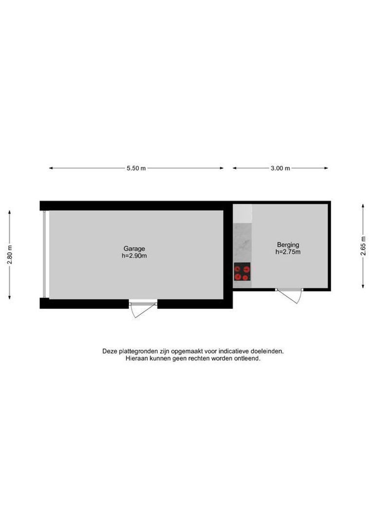 Garage ca. 5.50x2.80 met elektrische toegangsdeur en oprit voor een auto;