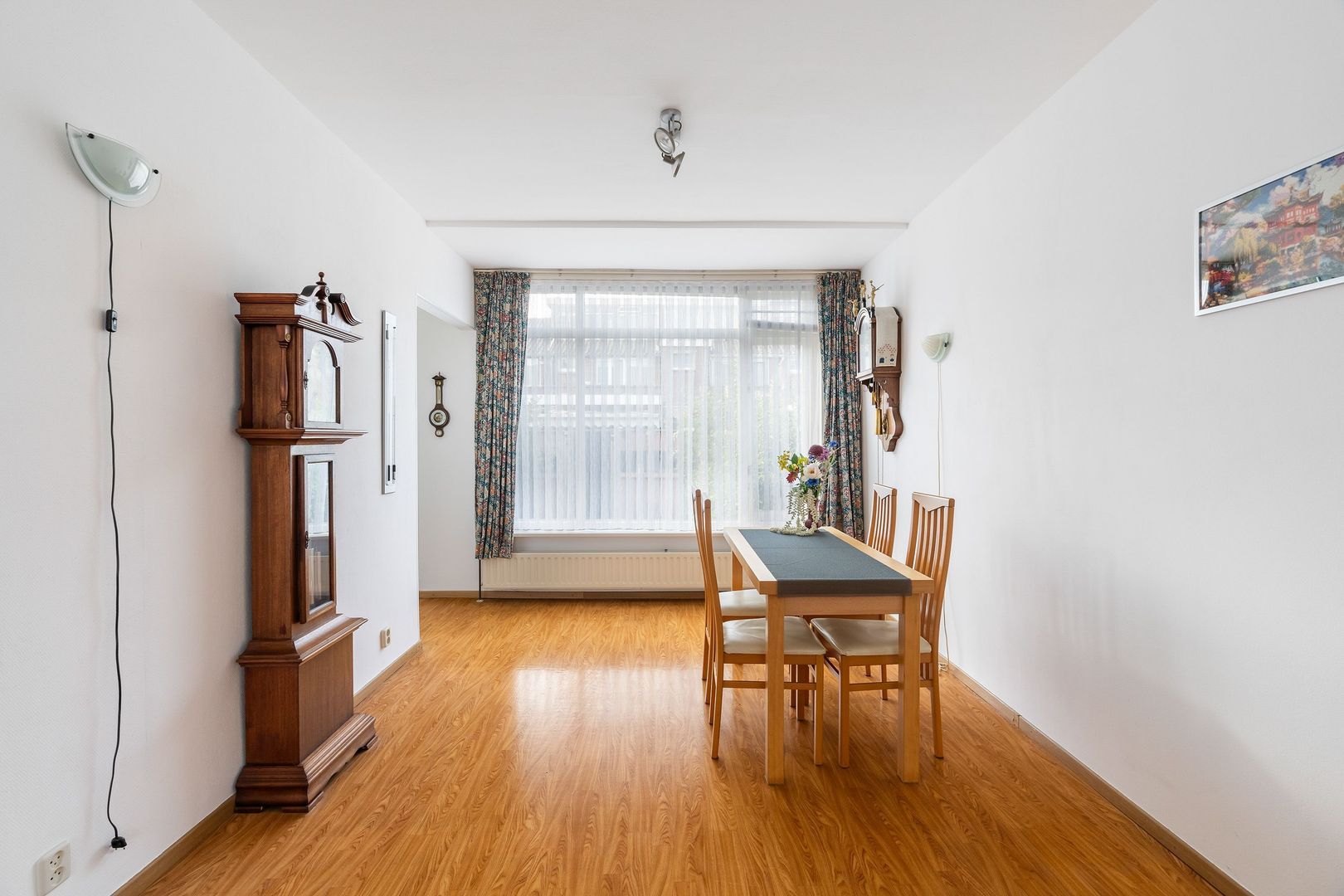 een kozijn in de woonkamer (achterzijde) hardhout met enkel glas