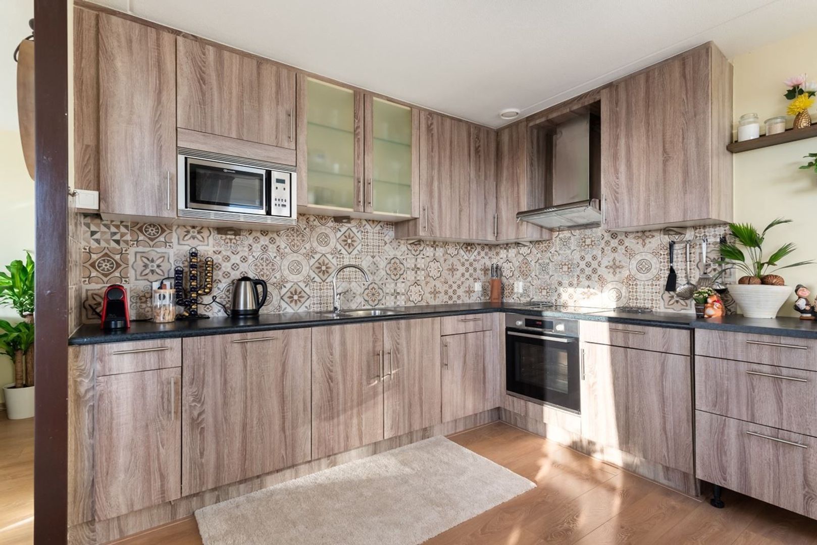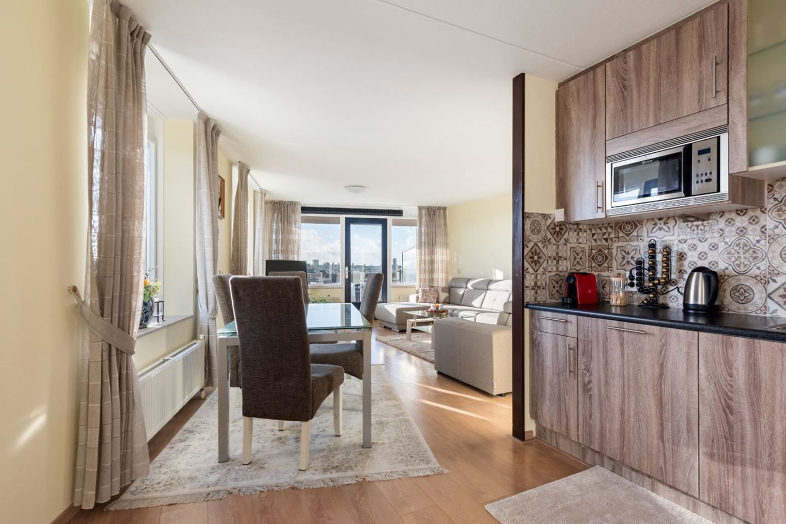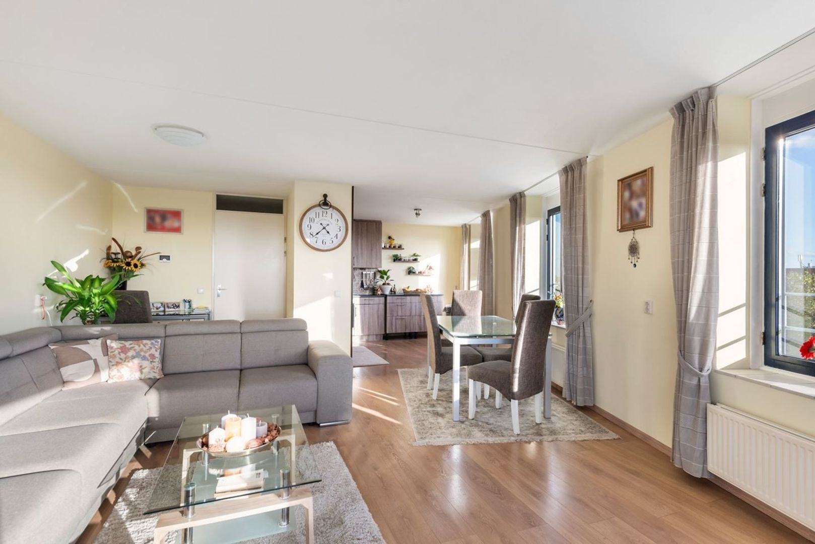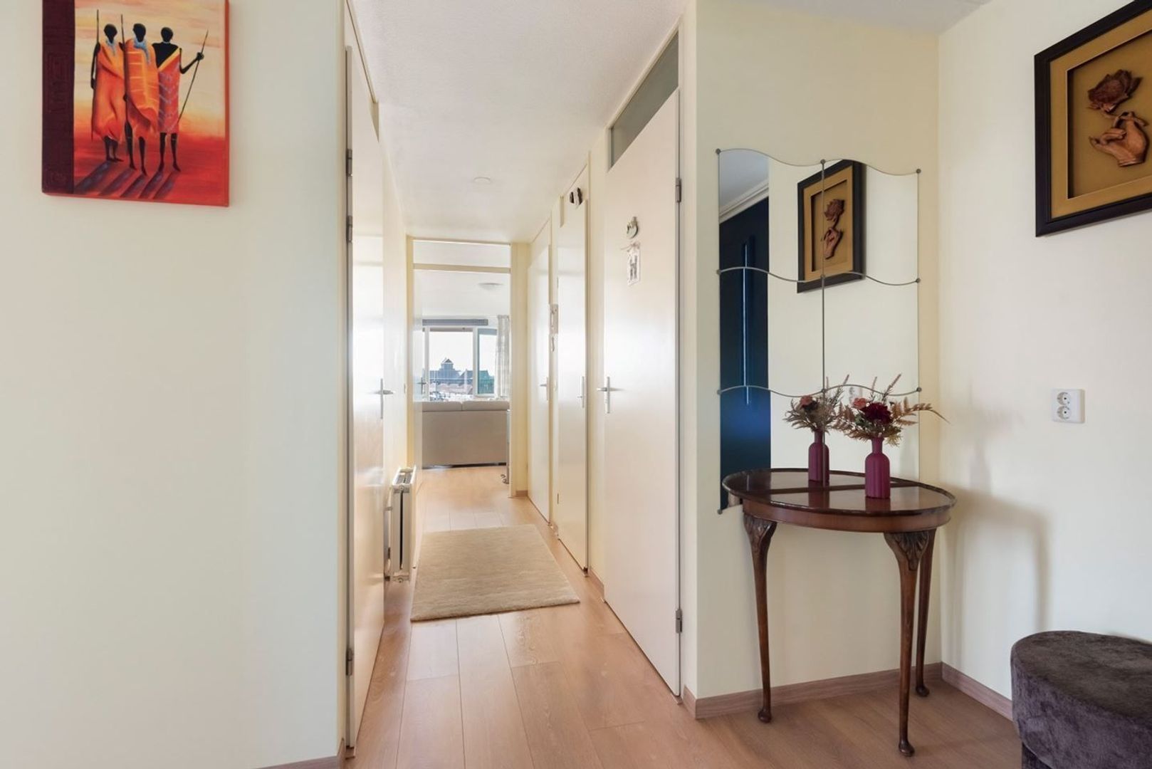 Afgesloten centrale entree met toegang tot de bergingen, trappenhuis en lift naar de woningentree op de 4e etage; woningentree; hal met meterkast en kast met wasmachine aansluiting en cv-opstelling, toilet; royale woonkamer met open keuken in hoekopstelling voorzien van een inductie kookplaat, afzuigkap, magnetron, oven, en vaatwasser; hoofdslaapkamer aan de achterzijde; 2e slaapkamer; moderne badkamer met inloopdouche en wastafelmeubel.