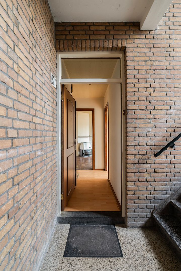 Entree via open portiek naar de woning op de 2e verdieping; hal, kast met meterkast; ruime woonkamer met vaste kast en achtergelegen slaapkamer met openslaande deuren naar het balkon over de gehele breedte; 2e slaapkamer aan de voorzijde; 3e slaapkamer aan de achterzijde met openslaande deuren naar het balkon; nette keuken aan de achterzijde met apparatuur, gaskookplaat, koelkast, oven, afzuigkap en wasmachine aansluiting met toegang tot het balkon, eenvoudige wit betegelde badkamer met douchecabine en wastafel; separaat toilet. Fietsenbox achter het pand.