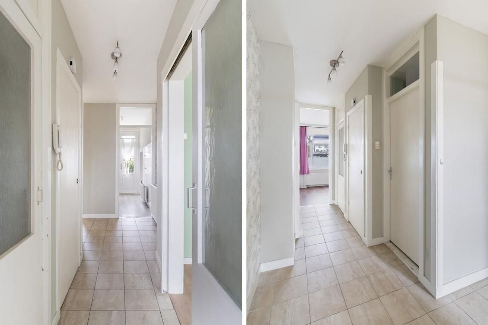 Afgesloten entree met bellen- en brievenbussentableau; entree woning; tochtportaal; gang; toilet met fonteintje; ruime doorgebroken woonkamer ensuite met openslaande deuren naar de achtertuin; voorzijkamer; achterzijkamer met deur naar tuin; nieuwe keuken voorzien van nieuwe inbouwapparatuur (oven, kookplaat, vaatwasser, afzuigschouw, koel/vriescombi); nette badkamer voorzien van douchecabine, wastafelmeubel en wasmachine aansluiting; riante zonnige achtertuin met stenen berging en achterom.