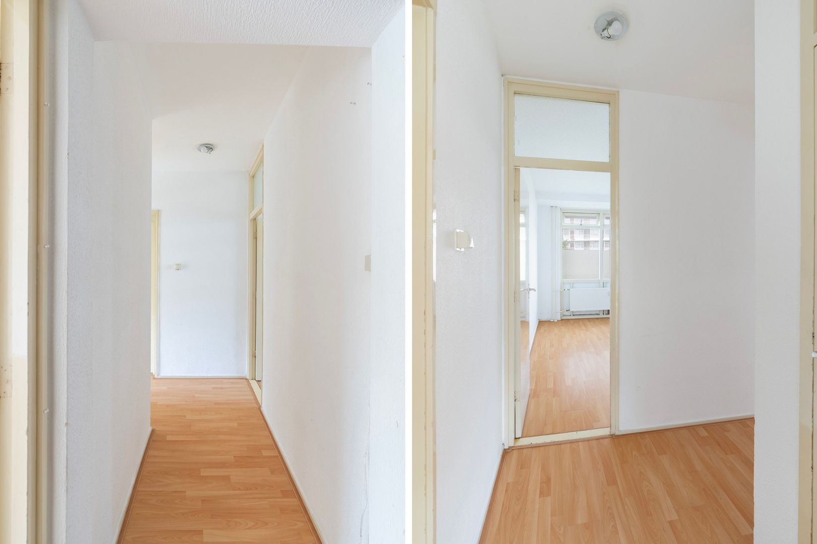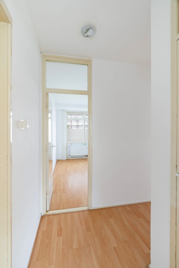 Afgesloten entree met toegang tot de bergingen, trappenhuis en lift naar de woningentree op de 3e woonlaag; tochtportaal met meterkast; hal met een grote vaste kast; woonkamer met toegang tot het balkon; eenvoudige keuken; 1e slaapkamer aan de achterzijde; 2e slaapkamer aan de voorzijde met toegang tot het balkon; 3e slaapkamer aan de voorzijde met toegang tot het balkon; eenvoudige badkamer met douche en wastafel; separaat toilet;