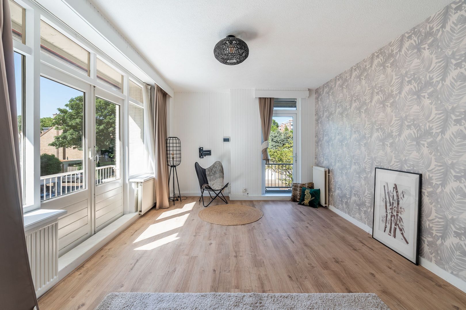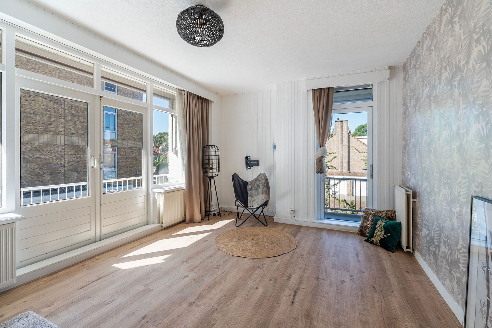 De royale woonkamer is licht en ruim opgezet en geeft toegang tot twee balkons, zodat je de hele dag door van de zon kunt genieten. Dankzij de grote raampartijen is de woonkamer een prettige plek om te ontspannen of gasten te ontvangen