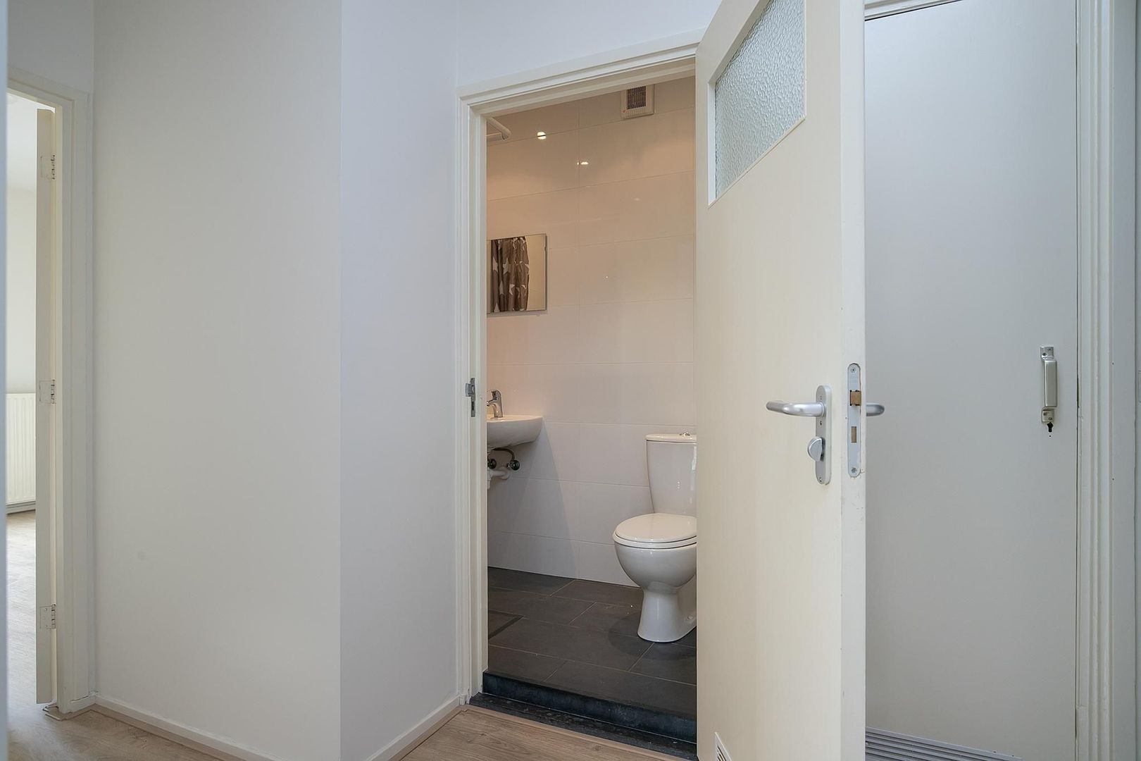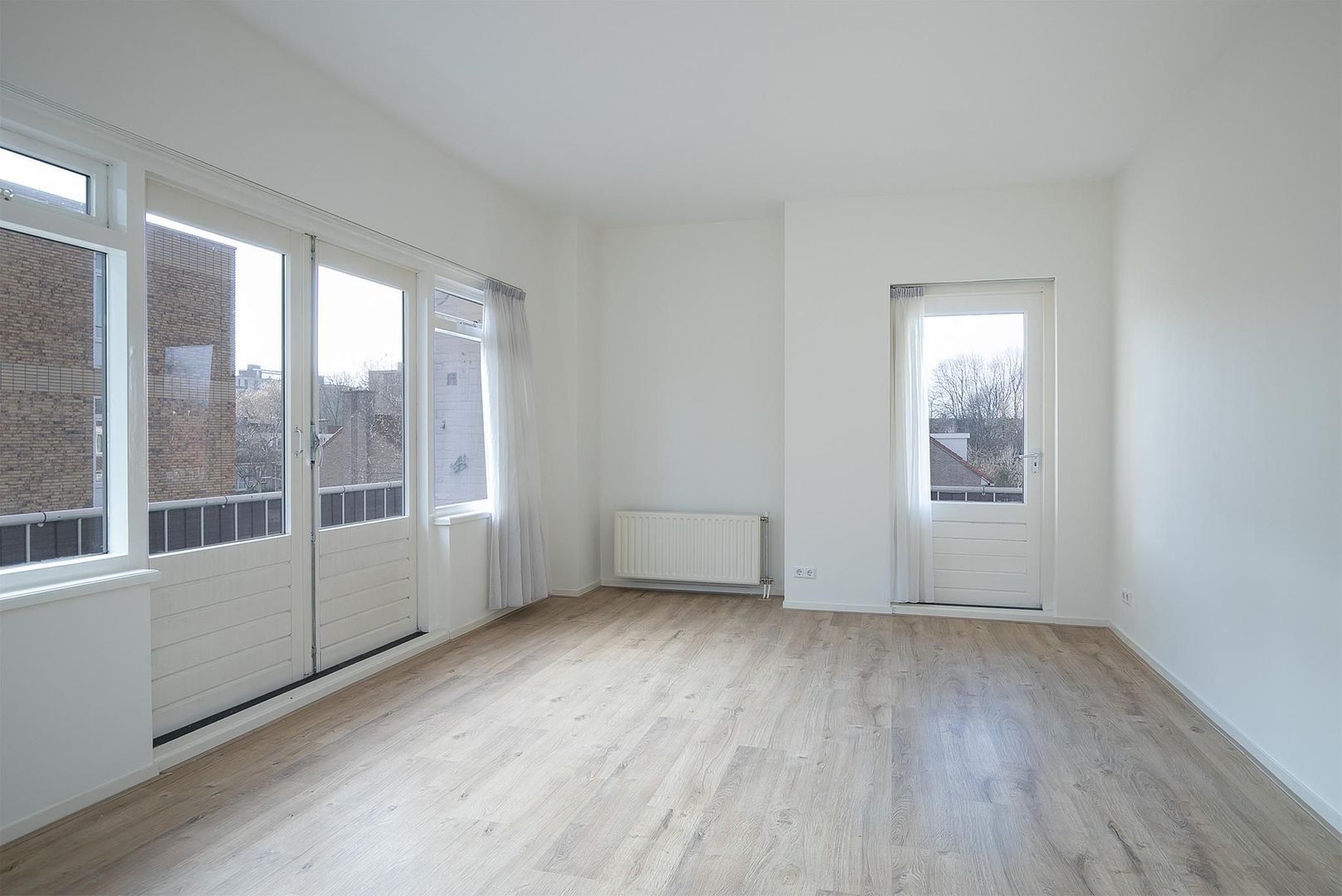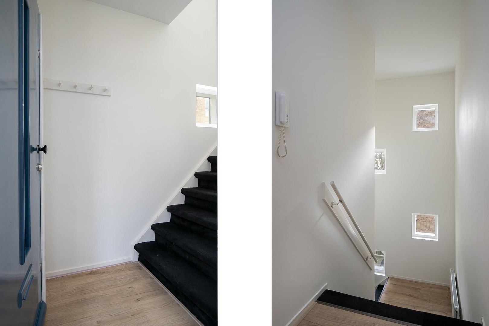 Gezamenlijke entree op straatniveau, trap naar de 1e verdieping. Entree appartement, binnentrap naar 2e verdieping. Gang met vaste kast met CV-opstelling en aansluiting wasmachine. Badkamer met toilet en douche. Nette gesloten keuken aan de achterzijde met gaskookplaat, afzuigkap en gootsteen. Naastgelegen slaapkamer met vaste kastruimte. Tweede slaapkamer aan de voorzijde met openslaande deuren naar het balkon. Ruime woonkamer met toegang tot beide balkons.