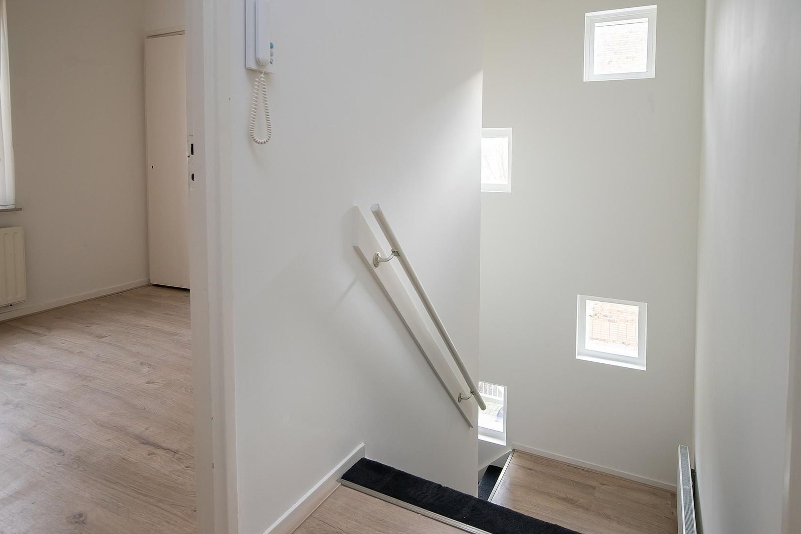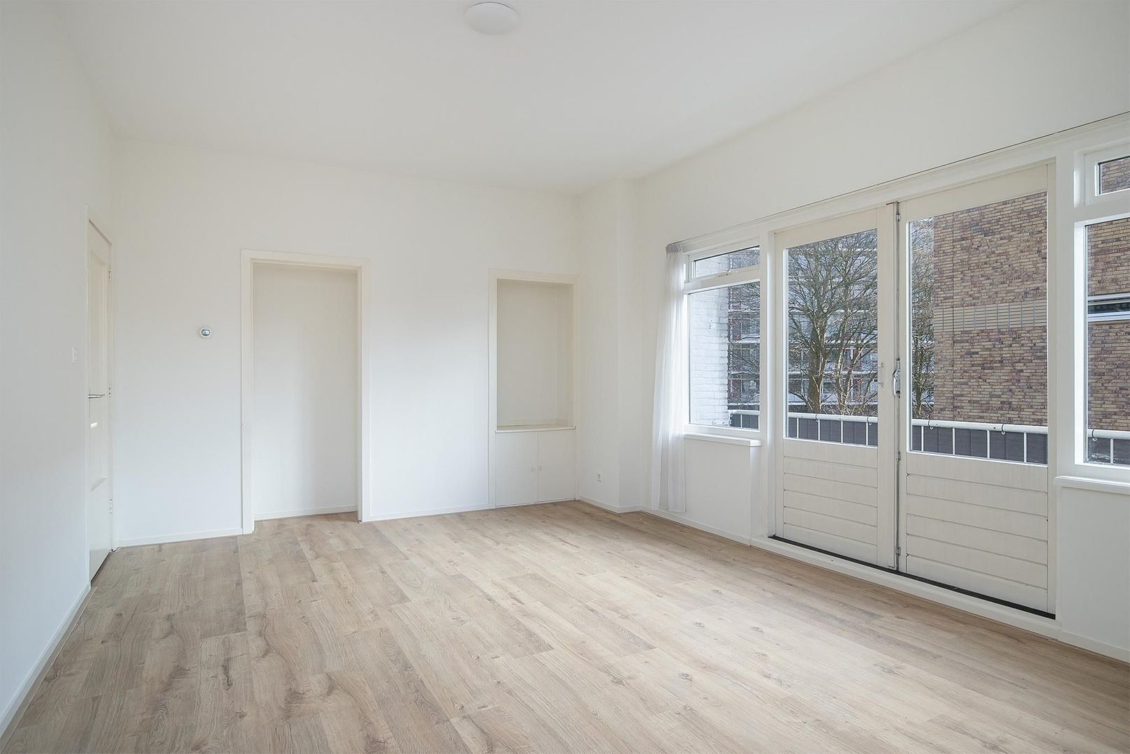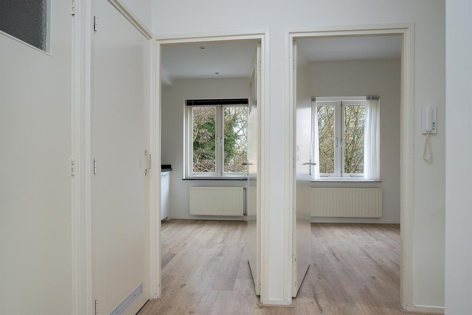 Gezamenlijke entree op straatniveau, trap naar de 1e verdieping. Entree appartement, binnentrap naar 2e verdieping. Gang met vaste kast met CV-opstelling en aansluiting wasmachine. Badkamer met toilet en douche. Nette gesloten keuken aan de achterzijde met gaskookplaat, afzuigkap en gootsteen. Naastgelegen slaapkamer met vaste kastruimte. Tweede slaapkamer aan de voorzijde met openslaande deuren naar het balkon. Ruime woonkamer met toegang tot beide balkons.