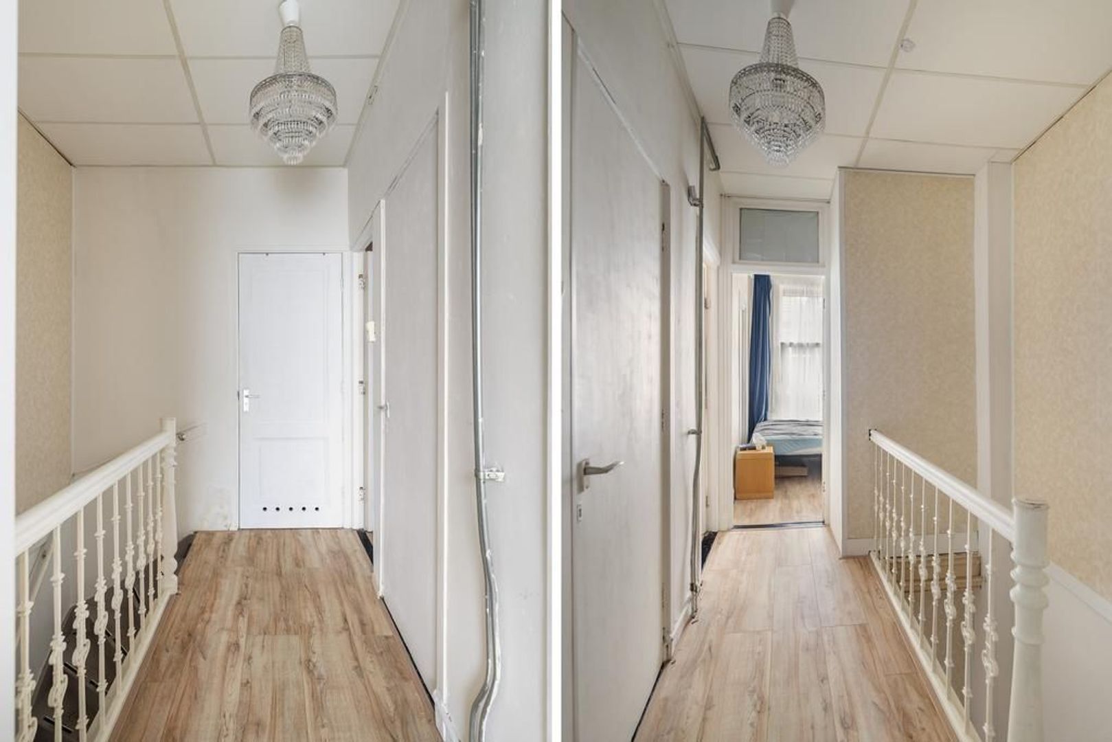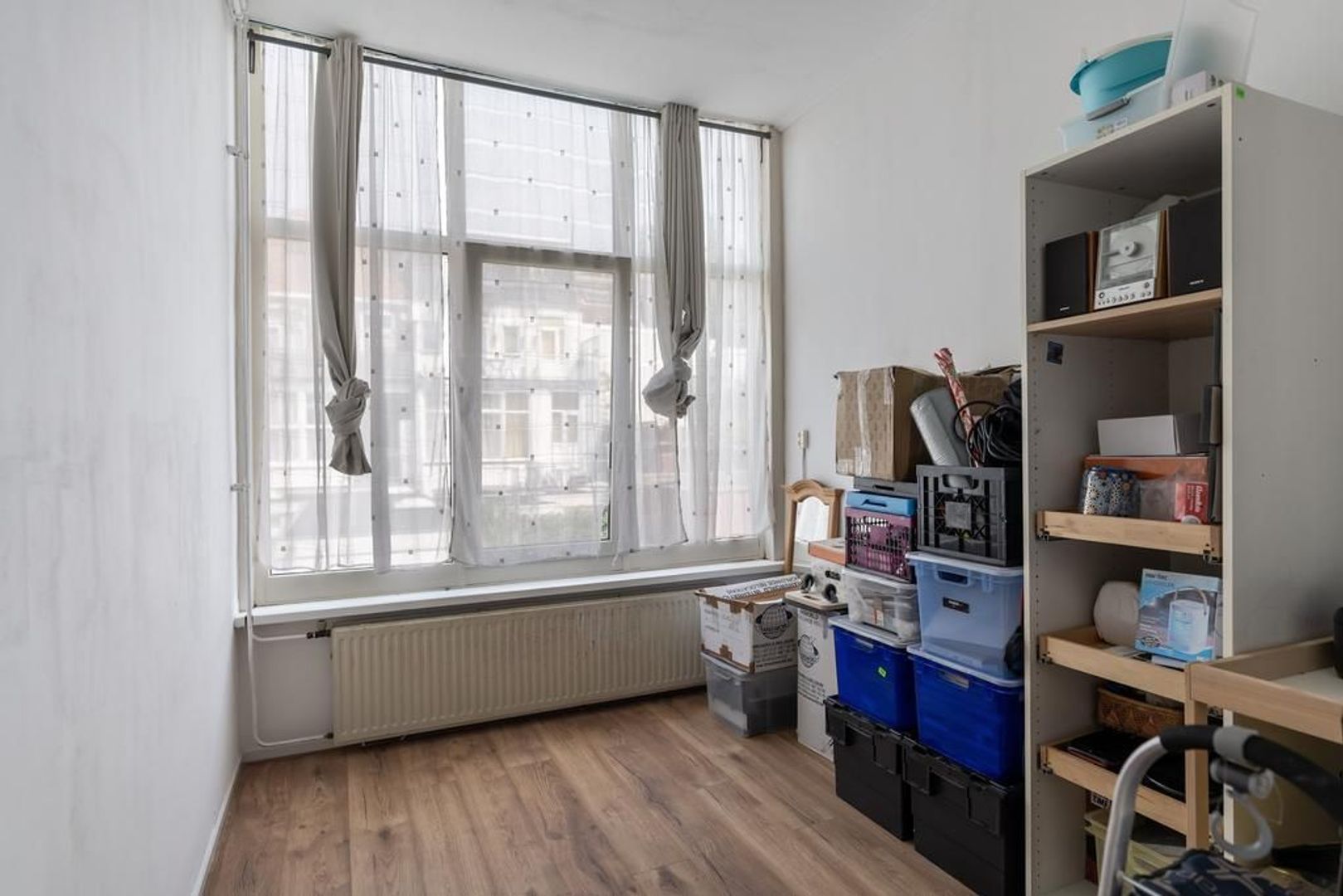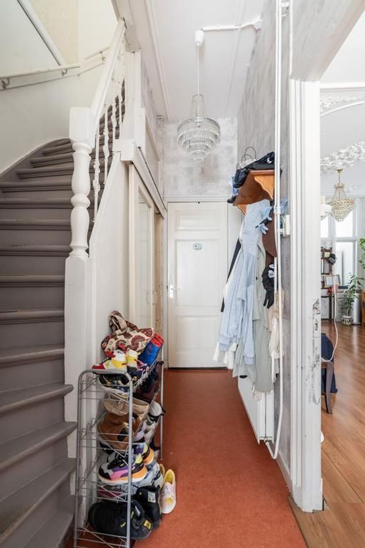 Regentessekwartier. Tegen de Weimarstraat aan ligt dit royale 3-laags bovenhuis (ca 163m2). De woning met 5 a 6 slaapkamers en een royale doorgebroken woonkamer heeft met name op de 1e etage wat originele stijldetails zoals ornamenten plafonds en paneeldeuren. Op de 2e etage is een balkon en op de 3e etage een terras. Verder verdient deze woning inpandig wat aandacht.