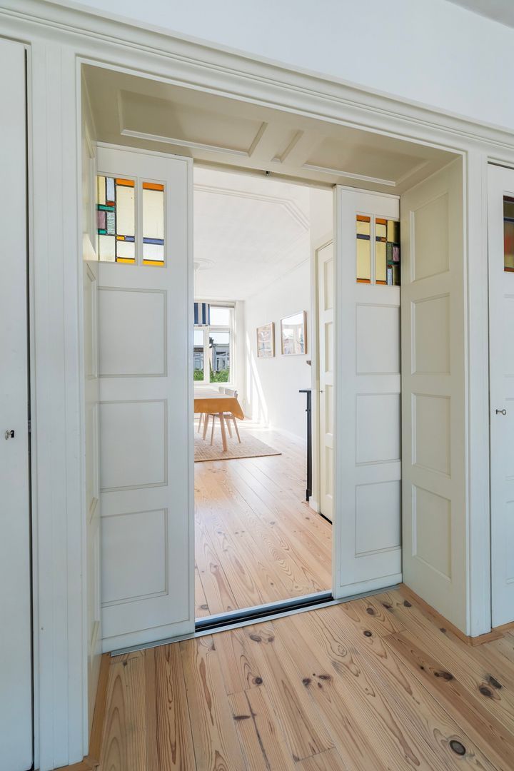- Veel originele details: Schuifseparatie, Glas in lood, schouwen, ornamenten plafonds, paneeldeuren