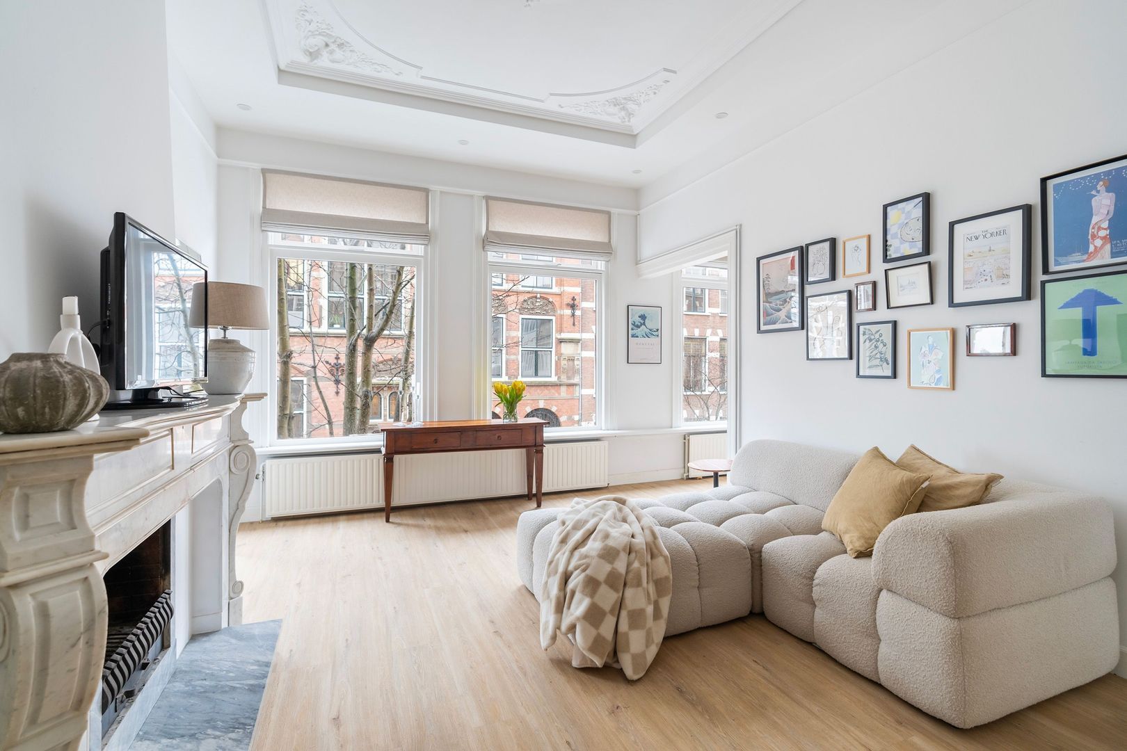 Gezamenlijke entree op straatniveau; gang met uitgebreide meterkast en trapopgang naar de 1e etage; entree woning; woon-/eetkamer ca. 6.00 x 3.76 voorzien van parketvloer, gestuukte wanden, robuuste marmeren schouw, hoge ramen, ornamentenplafond en uitzicht op monumentaal Haags stadsgezicht; Nieuwe moderne open keuken in L-vormige opstelling voorzien van diverse inbouwapparatuur, te weten; koel-vriescombinatie, vaatwasser, 5 pits gaskookplaat, afzuigkap; royale slaapkamer ca. 4.74x3.76 voorzien van nieuwe laminaatvloer, inbouwspots en ingebouwde kastenwand; modern betegelde en ruime badkamer ca. 2.08x3.50 voorzien van ligbad, aparte douche met thermostaatkraan, badkamerkast en dubbele wastafel; via slaapkamer toegang tot de lichte serre/achterkamer ca. 3.75x1.96 met vloerbedekking en spiegelwand; inloop berging met opstelplaats voor wasmachine en cv-ketel; modern betegeld toilet met fonteintje.