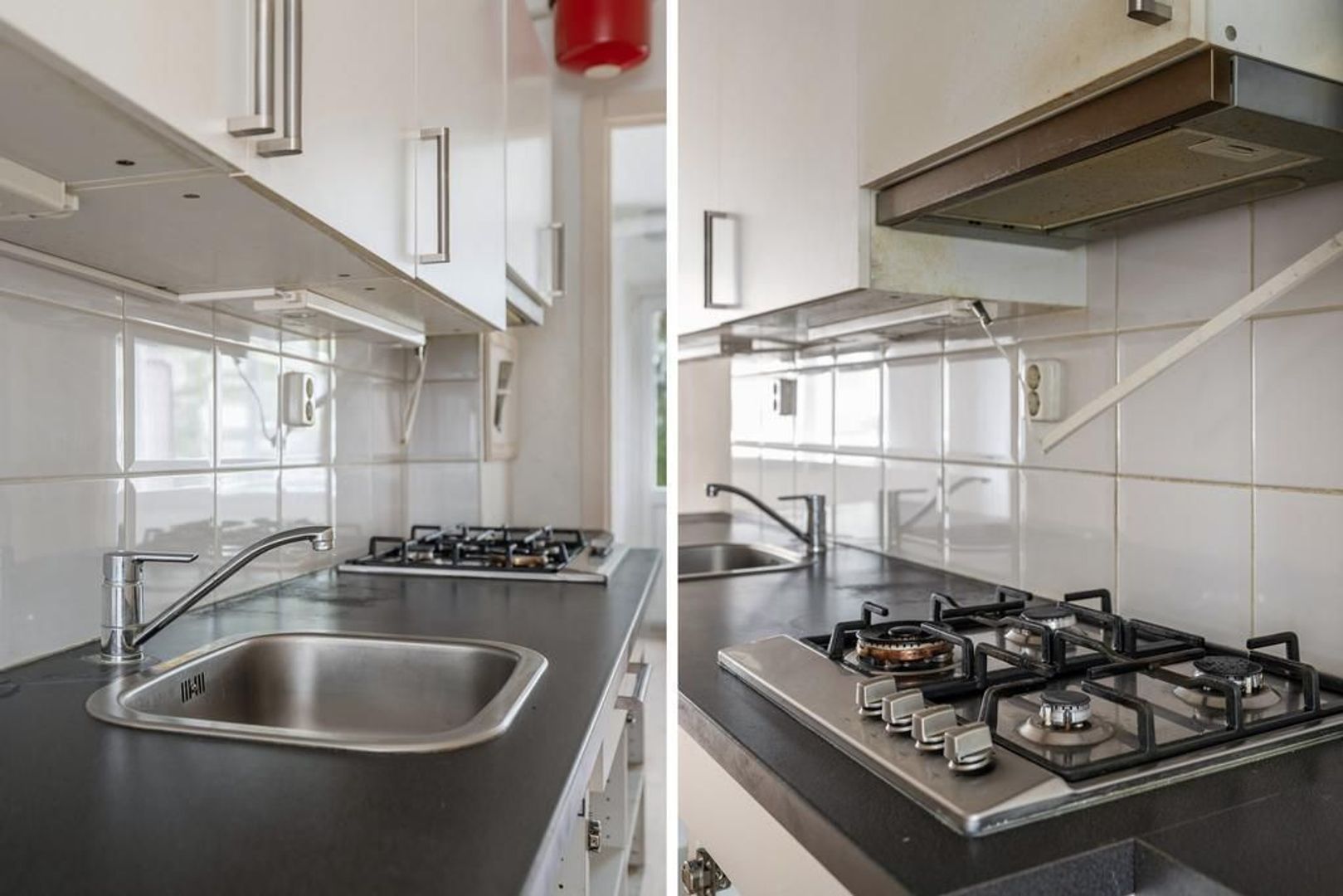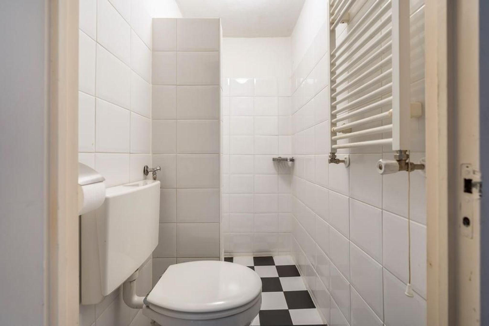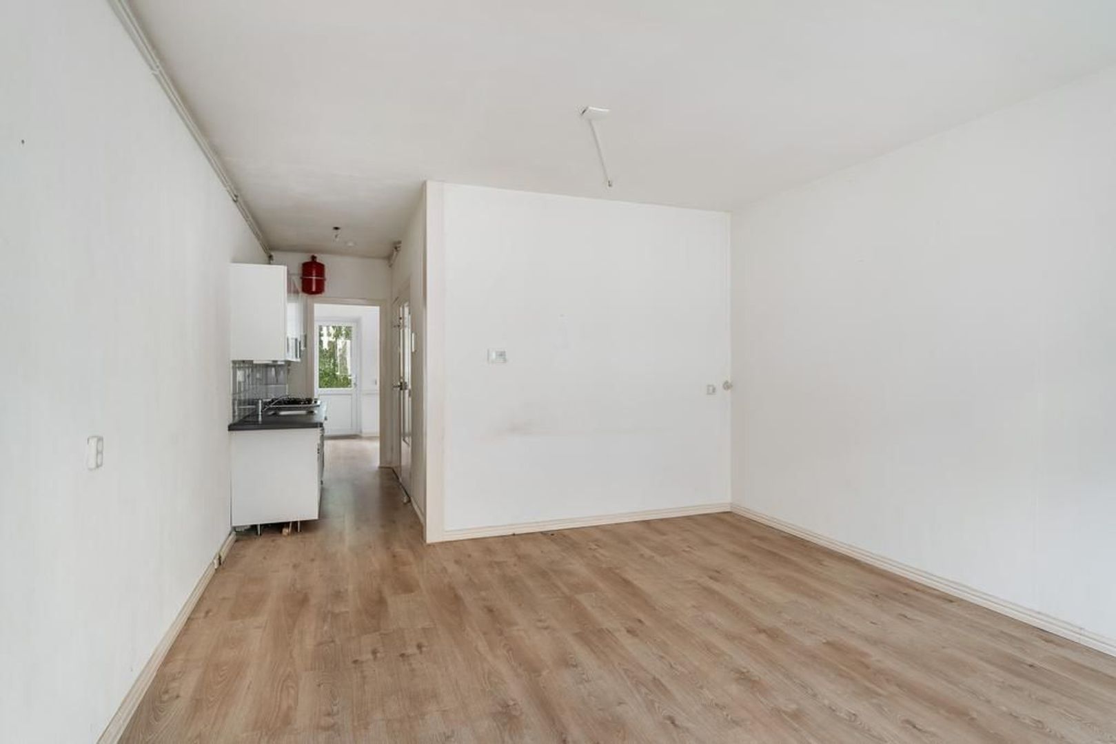 Entree woning op de 1e etage: lichte woonkamer aan de voorzijde voorzien van laminaatvloer; doorloop naar de achterzijde met een tussenliggende eenvoudige open keuken met gaskookplaat, vlakscherm afzuigkap, opstelplaats cv-ketel; badkamer met toilet met achtergelegen inloopdouche en handdoekradiator; ruime slaapkamer aan de achterzijde met wastafel en toegang tot zonnig balkon over de volle breedte, gelegen op Zuidwesten.