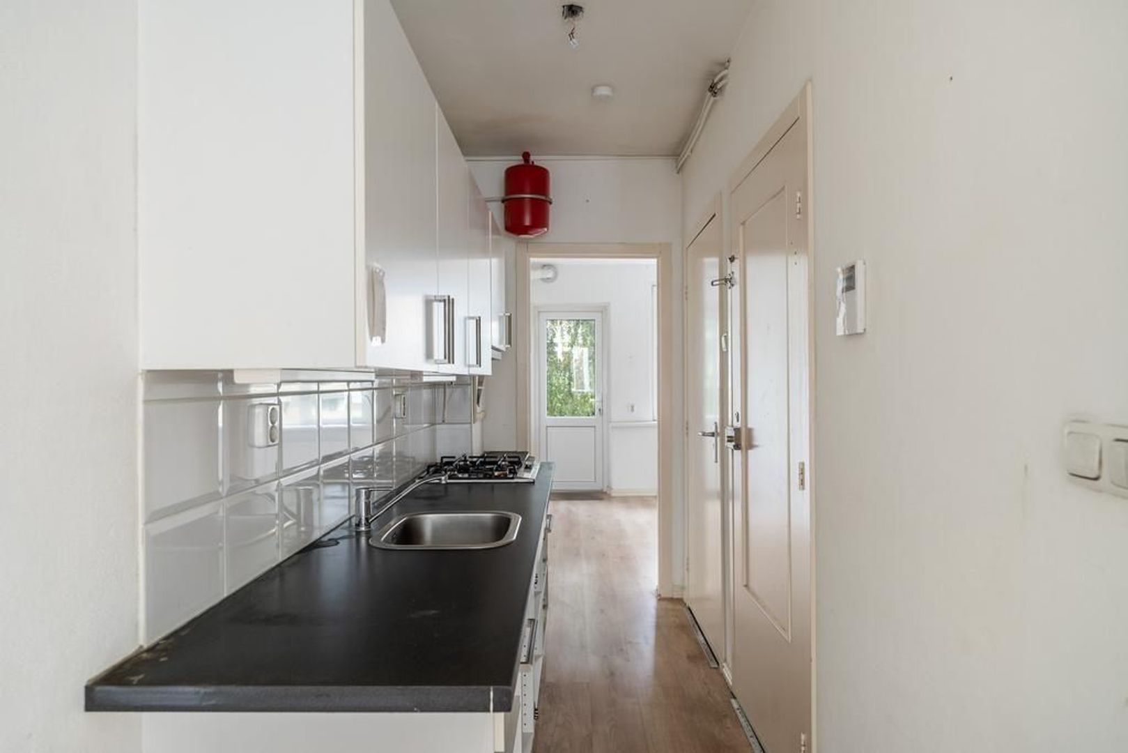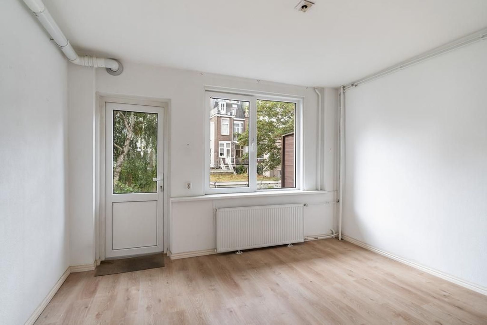 Onder de woning zit een afgesloten poort met toegang tot aan aantal parkeerboxen. Dus geen beneden buren.