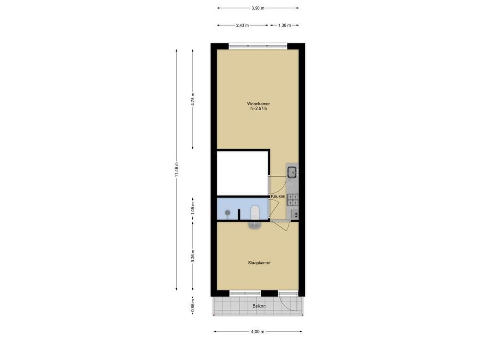 Voor de afmetingen verwijzen wij naar de plattegrond.