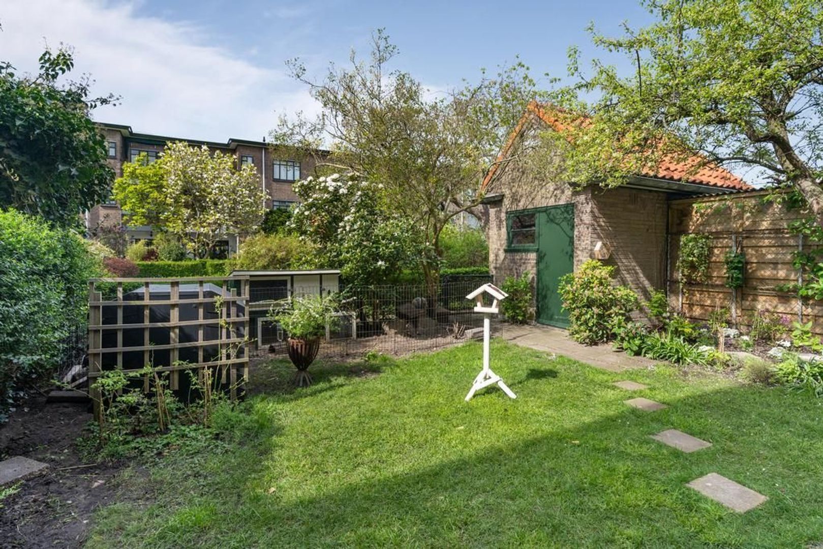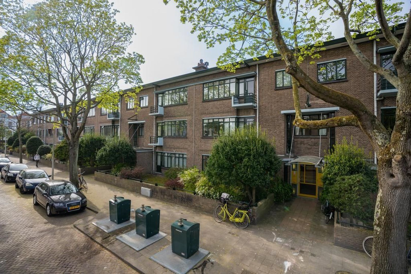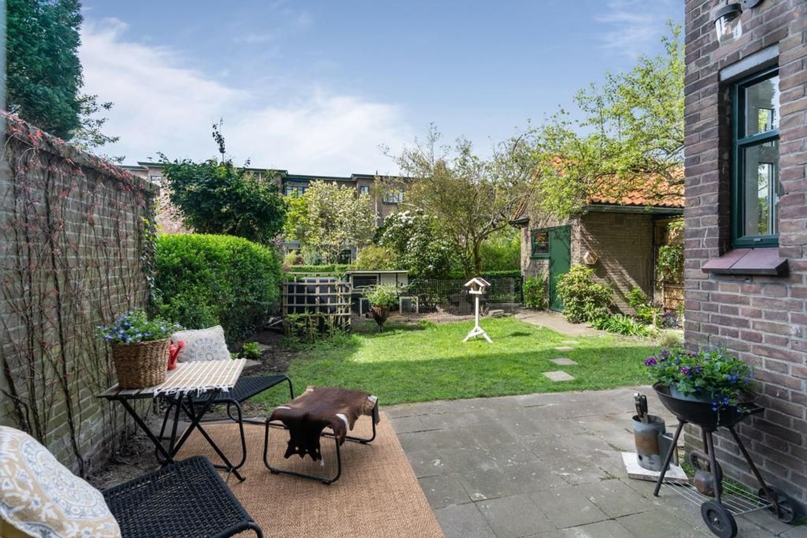 De woning is gelegen in een mooie, rustige straat met veel groen tussen twee statige en recent compleet gerenoveerde pleinen; het Oranjeplein en het Huygenspark. Vanuit de woonkamer heeft u mooi uitzicht op de historische hofjes (Rijksmonumenten) aan de overzijde van de straat. Via de achtertuin met stenen berging en achterom heeft u een fraai uitzicht op de gemeenschappelijke, goed onderhouden zichttuin (niet om in te recreëren) in een afgesloten binnen gebied.