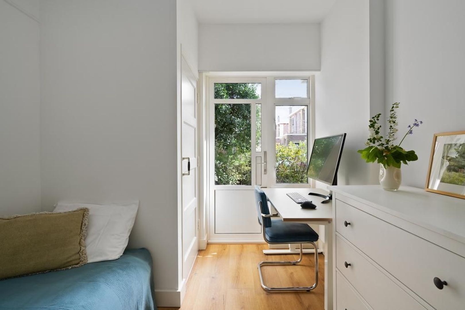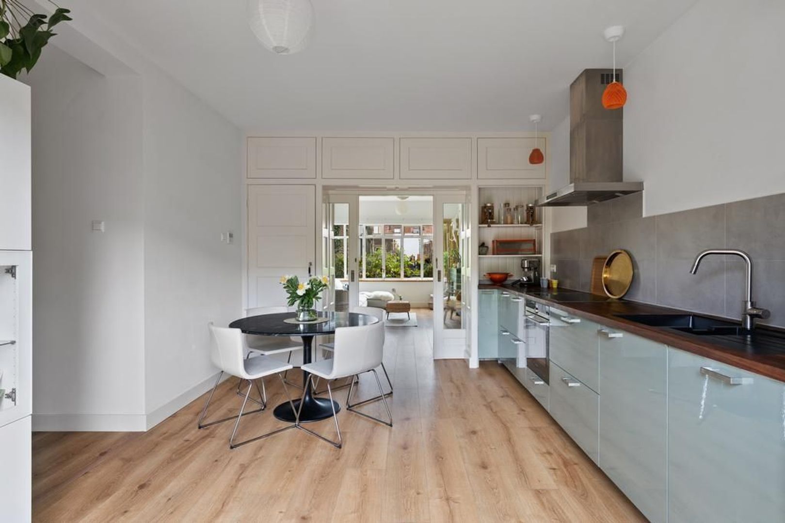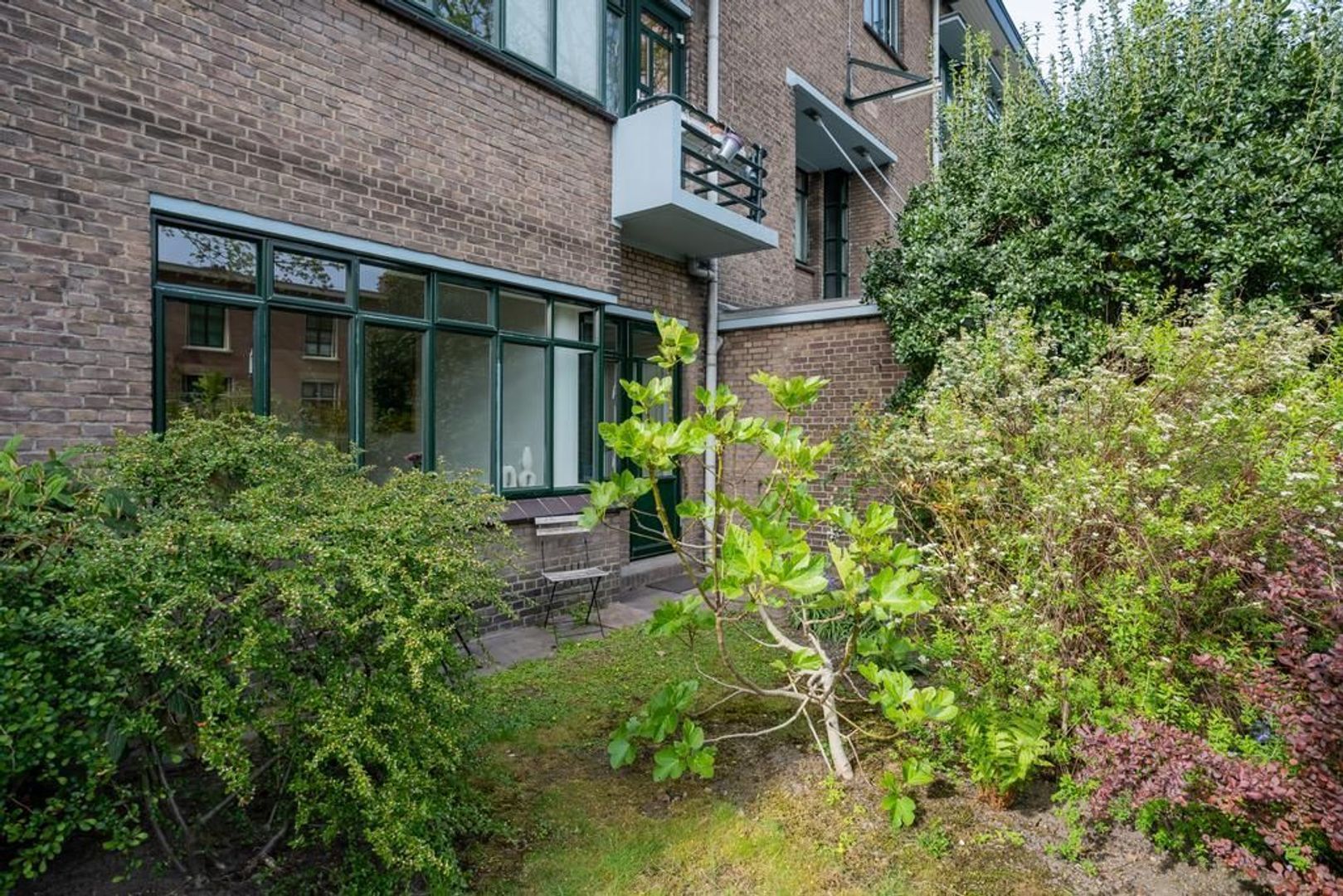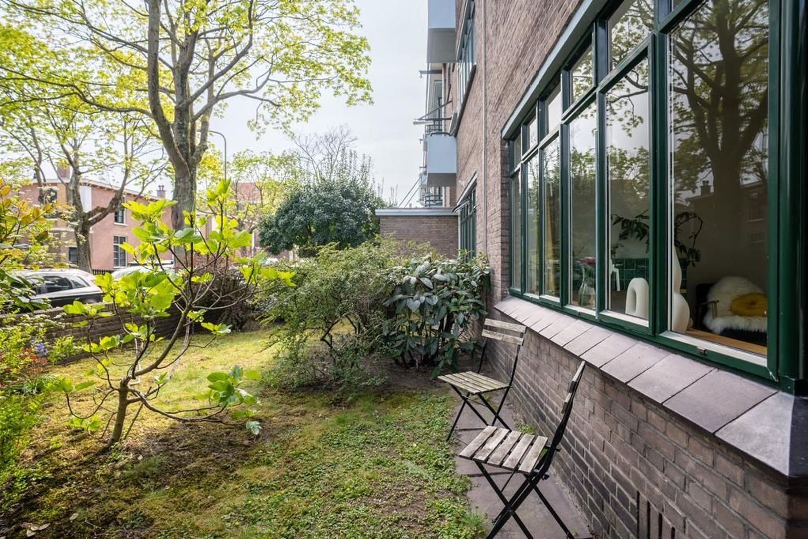 De woning is gelegen in een mooie, rustige straat met veel groen tussen twee statige en recent compleet gerenoveerde pleinen; het Oranjeplein en het Huygenspark. Vanuit de woonkamer heeft u mooi uitzicht op de historische hofjes (Rijksmonumenten) aan de overzijde van de straat. Via de achtertuin met stenen berging en achterom heeft u een fraai uitzicht op de gemeenschappelijke, goed onderhouden zichttuin (niet om in te recreëren) in een afgesloten binnen gebied.