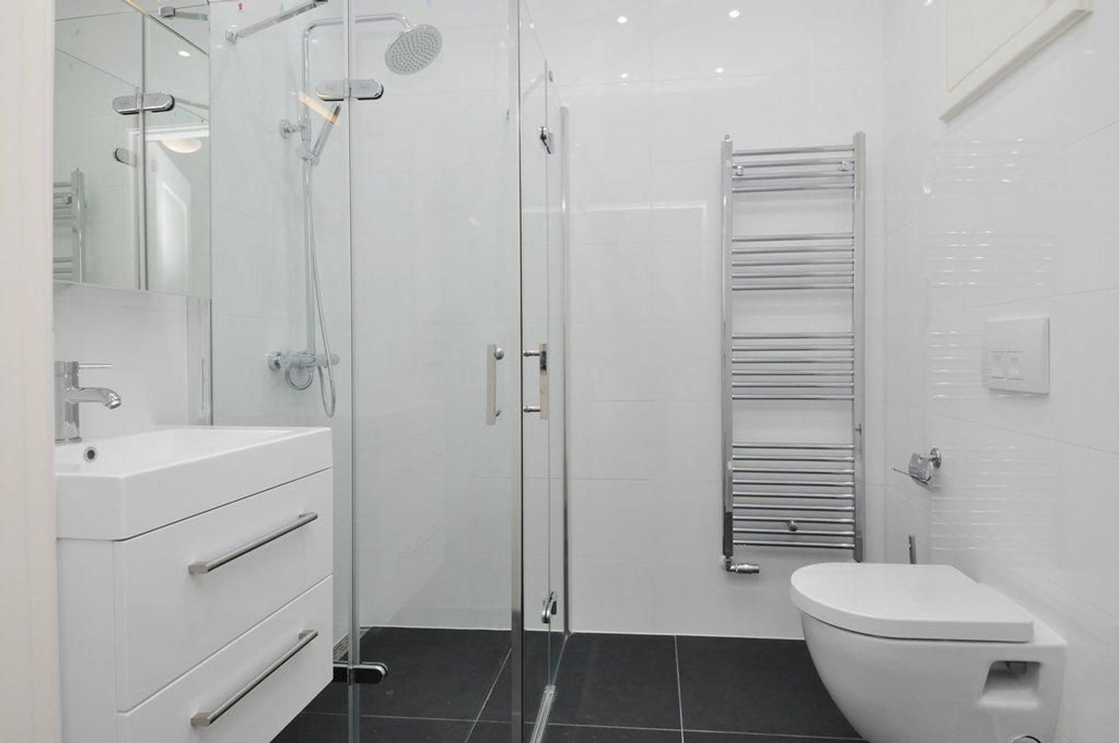 Closed central staircasehall, entrance apartment on the 1st floor, hall, spacious and bright living room with bay window and brand new luxury kitchen with all equipment, natural stone top, perfect bathroom with shower, washbasin and towel radiator,. Master bedroom (approx. 20 m2) second bedroom (approx. 3.30 x 3.05) and front side bedroom (approx. 2.02x2.22)