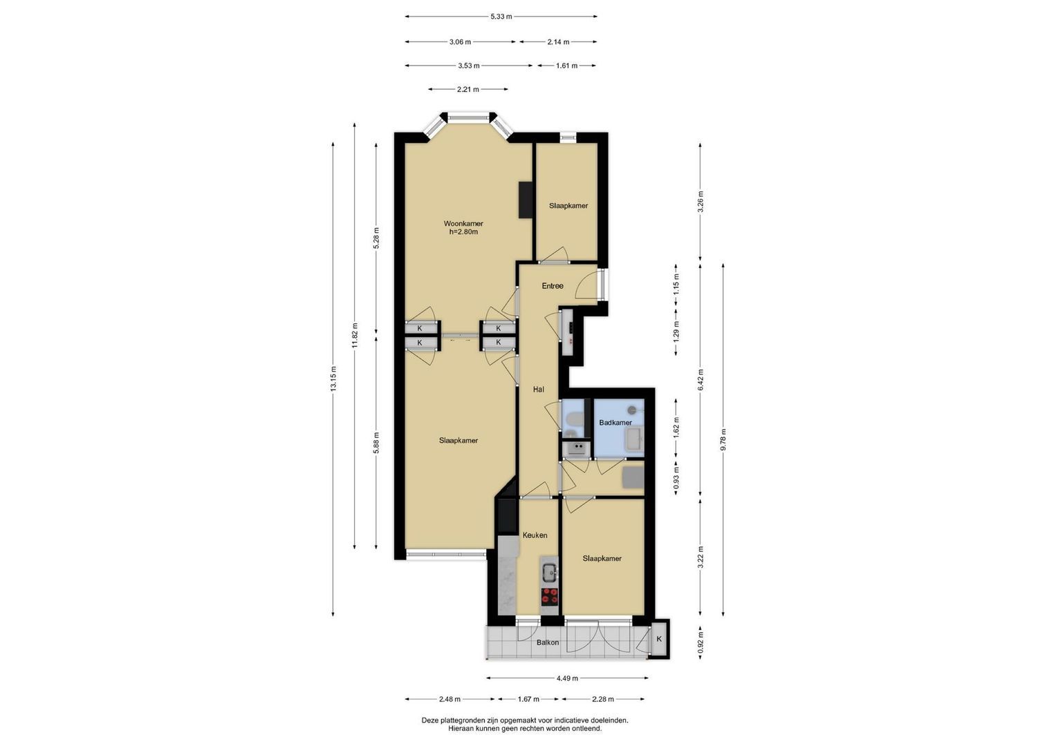 Deze informatie is door ons met de nodige zorgvuldigheid samengesteld. Onzerzijds wordt echter geen enkele aansprakelijkheid aanvaard voor enige onvolledigheid, onjuistheid of anderszins, dan wel de gevolgen daarvan. Alle opgegeven maten en oppervlakten zijn indicatief.