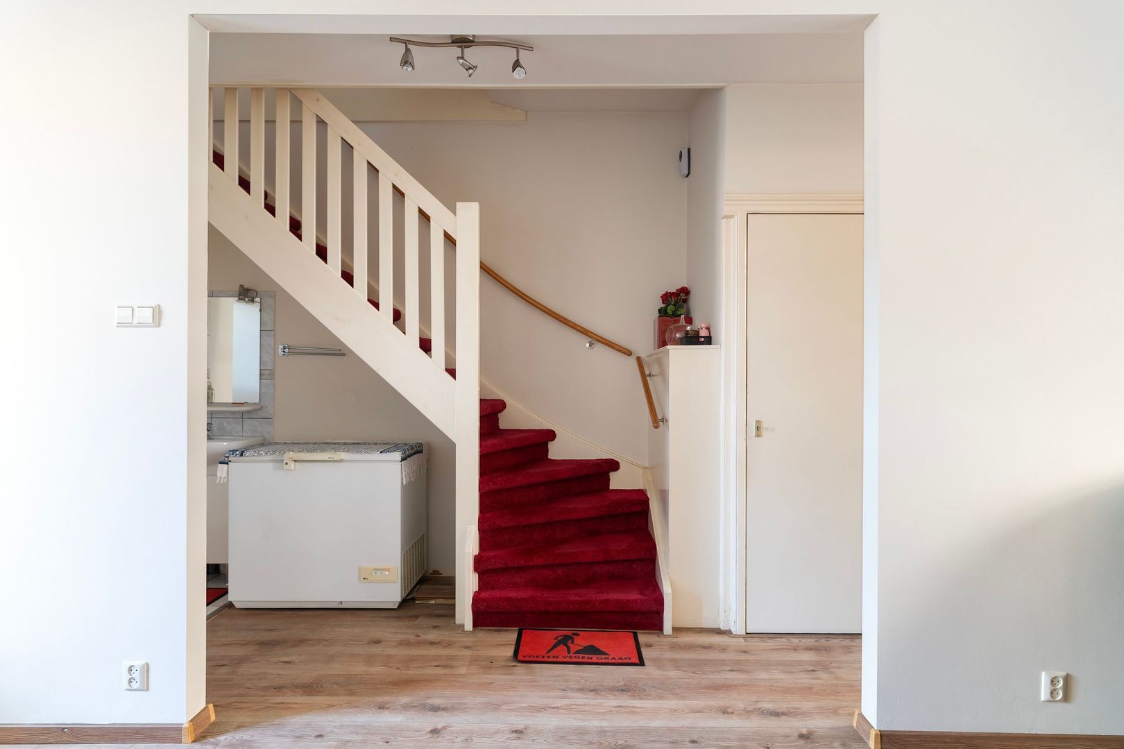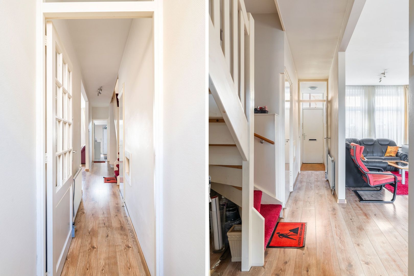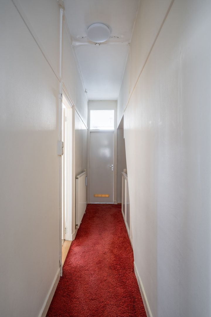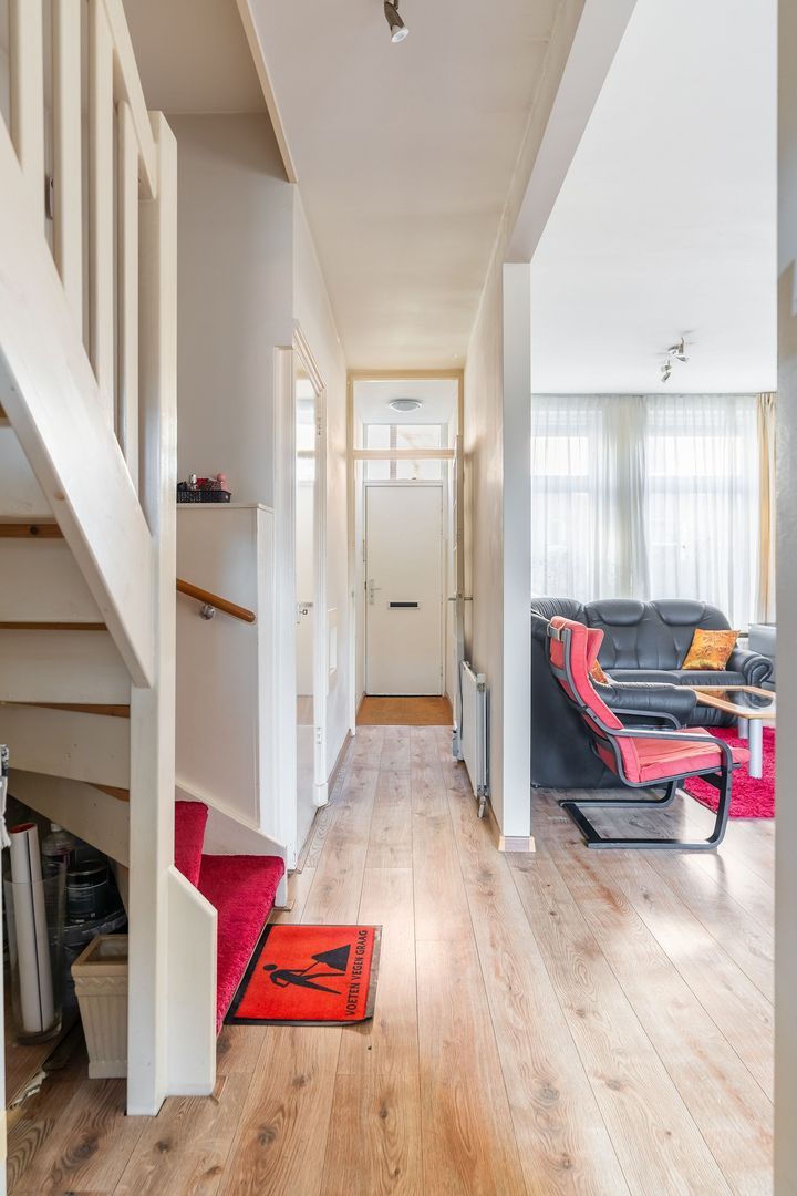 Entree aan straatzijde via tochtportaal; gang/hal met meterkast en bergruimte; toilet; toegang tot grote doorgebroken woonkamer over de volle diepte van de woning; via de gang toegang tot de keuken en de achterliggende berging/kamer; via de woonkamer toegang tot de achtertuin die zuidelijk is georiënteerd zonder directe achterburen.
