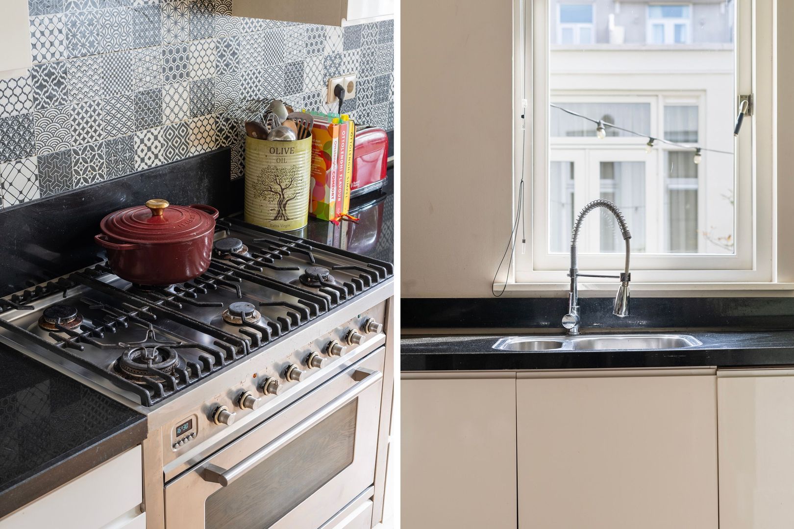 + Fijne keuken – royale semi-open keuken met hardstenen aanrecht en Boretti-gasfornuis